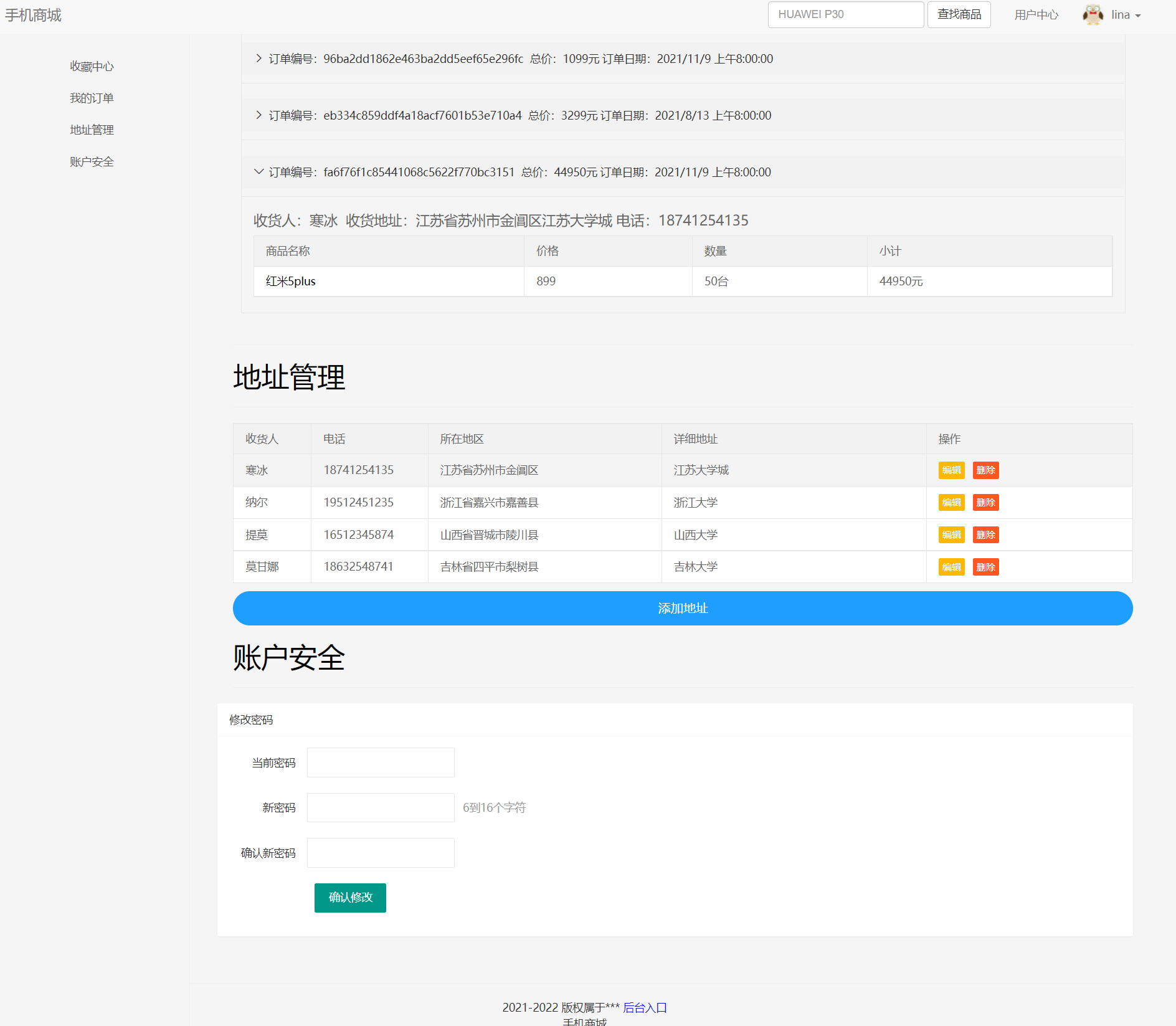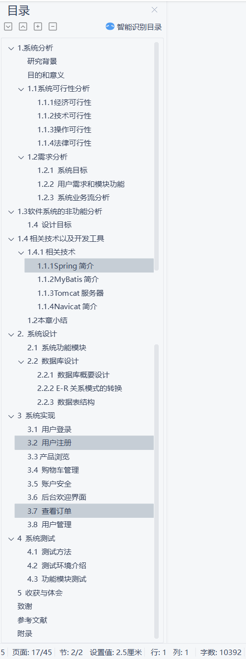 网上手机商城购物系统目录1. 系统分析 21.1 系统可行性分析 21.1.1 经济可行性 21.1.2 技术可行性 21.1.3 操作可行性 21.1.4 法律可行性 31.2 需求分析 31.2.1 系统目标 31.2.2 用户需求和模块功能 31.2.3 系统业务流分析 51.3 软件系统的非功能分析 51.4 设计目标 62. 系统设计 72.1 系统功能模块 72.2 数据库设计 82.2.1 数据库概要设计 82.2.2 E-R图关系模式的转换 92.2.3 数据表结构 103 系统实现 123.1 用户登录 133.2 用户注册 133.3产品浏览 143.4 购物车管理 153.5 账户安全 153.6 用户管理 154 系统测试 164.1 测试方法 164.2 测试环境介绍 174.3 功能模块测试 175 收获与体会 186 附录 181.系统分析本章将从整体上描述系统的需求,根据需求确定了系统的整体结构和数据库设计方案,对系统各部分的功能进行了划分并描述了系统架构的设计思路。本文将详细的分析系统的续期功能的设计及实现方法。研究背景目前市面上已经有很多面包手机店专卖店铺,而且有很多店铺已经做出了不错的业绩,是全国连锁店。然而随着时代的进步,人们渐渐倾向于在线购物的消费方式。手机店的销售也应该与时俱进,加强自身的信息化建设,才能在越来越激烈的竞争中保持竞争优势。如今市场上也已经存在了此类的烘焙食品在线销售网站,但是现有的手机店在线销售网站还存在着商品单一、操作难、页面不美观、缺少后台管理等问题,还有很大的进步空间。这些问题因素也导致了网站在市场上的推广受到一定的限制。如何开发出成本低廉、功能齐全、页面美观的烘焙商城网站正是我们目前需要解决的问题。目的和意义本网站目的是方便广大用户在线购买自己喜欢的手机,打破传统购买方式促进消费,也让用户足不出户即可完成手机的购买,享受到食品的美味、、线上销售的数据也可以作为商家分析销售情况的基本数据来源。