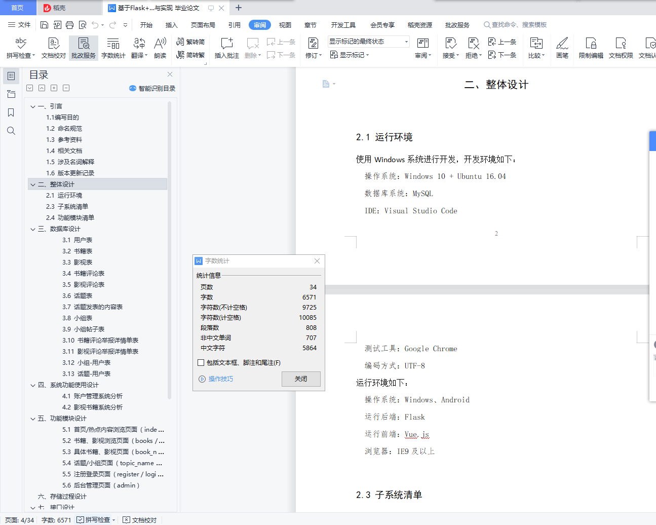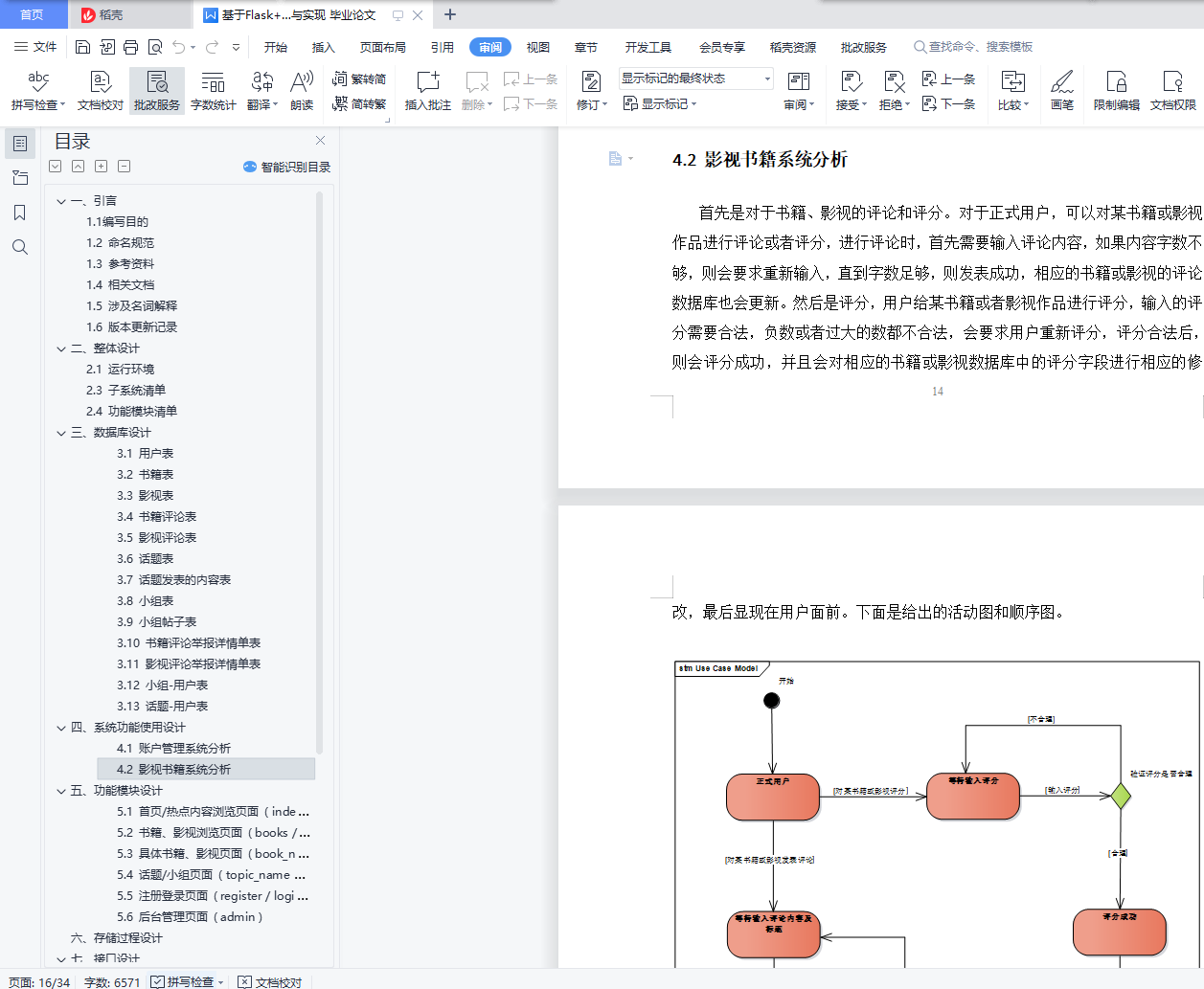 目 录一、引言 11.1 编写目的 11.2 命名规范 11.3 参考资料 11.4 相关文档 11.5 涉及名词解释 11.6 版本更新记录 2二、整体设计 22.1 运行环境 22.3 子系统清单 32.4 功能模块清单 3三、数据库设计 5四、系统功能使用设计 10五、功能模块设计 19六、存储过程设计 25七、接口设计 297.1 用户接口 297.2 外部接口 297.3 内部接口 29八、角色授权设计 30九、系统错误处理 309.1 出错信息管理 309.2 故障预防与补救 309.3 系统维护设计 319.3.1 编码规范化 319.3.2 编码模块化 319.3.3 始终收集反馈 319.3.4错误日志 31十、项目测试计划 31一、引言1.1编写目的在完成对“书籍影视交流平台”系统需求分析的基础上,我们依据《需求规格说明书》对该系统进行了设计,为了文档化对系统的设计,故编写此文档。1.2 命名规范数据库表名、字段名使用大写开头的英文进行命名。所有函数使用驼峰命名法。所有前端页面使用小写英文单词来命名。1.3 参考资料[1] 吕云翔.软件工程实用教程[M].北京:清华大学出版社,2015.1.4 相关文档[1] 《需求规格说明书》[2] 《软件开发计划书》[3] 《部署文档》[4] 《测试报告》[5] 《用户使用说明书》1.5 涉及名词解释[1] 用户:包含未注册用户以及已经完成注册的用户,在平台中主要进行交互的对象。[2] 小组管理员:指在参与小组中的一个负责的对象,能够对其小组的帖子进行管理。[3] 系统管理员:则是指整个平台的管理员,与实际平台的功能等等关联不大。1.6 版本更新记录表1-1 版本更新记录表版本 更新者 更新 更新纪要 完成度v1.0.0 2020.4.19 项目创建 暂无二、整体设计2.1 运行环境使用Windows系统进行开发,开发环境如下:操作系统:Windows 10 + Ubuntu 16.04数据库系统:MySQLIDE:Visual Studio Code测试工具:Google Chrome编码方式:UTF-8运行环境如下:操作系统:Windows、Android运行后端:Flask运行前端:Vue.js浏览器:IE9及以上
