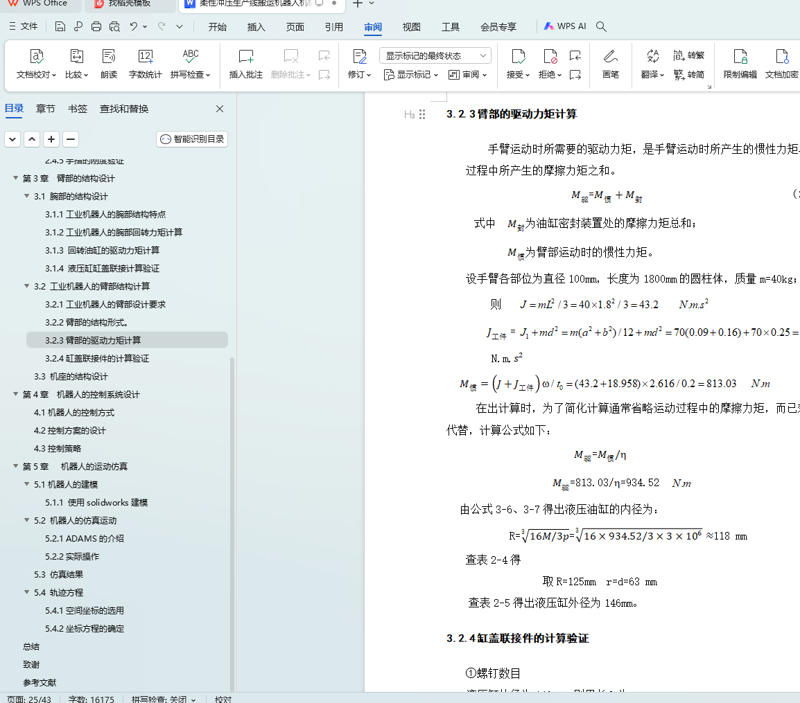 3.2 工业机器人的臂部结构计算
