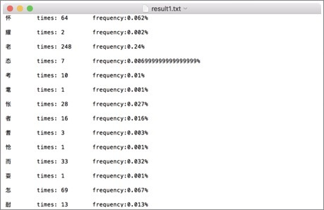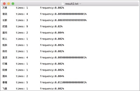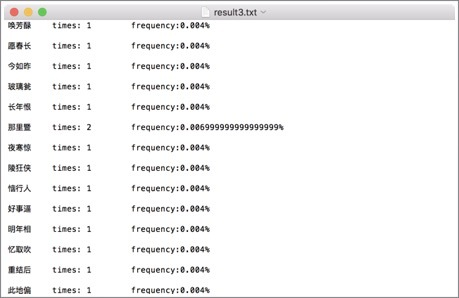目录宋词自动生成系统和中文分词系统 1实验1 宋词词频统计 1实验2 宋词自动生成 6实验3 中文词频统计 11实验4 中文词法分析系统 16实验结语 25宋词自动生成系统和中文分词系统实验1 宋词词频统计研究背景:对语料库的分析和词频统计是自然语言学科实验的基础,通过大规模语言数据进行知识获取从而完成后续实验内容。实验要求:编写程序,输入ci,自动分析统计ci.txt,统计宋词的单字词,双字词等。统计后,输出的是单字词和双字词的词典文件。文件中包括相应的词和频度(次数)。