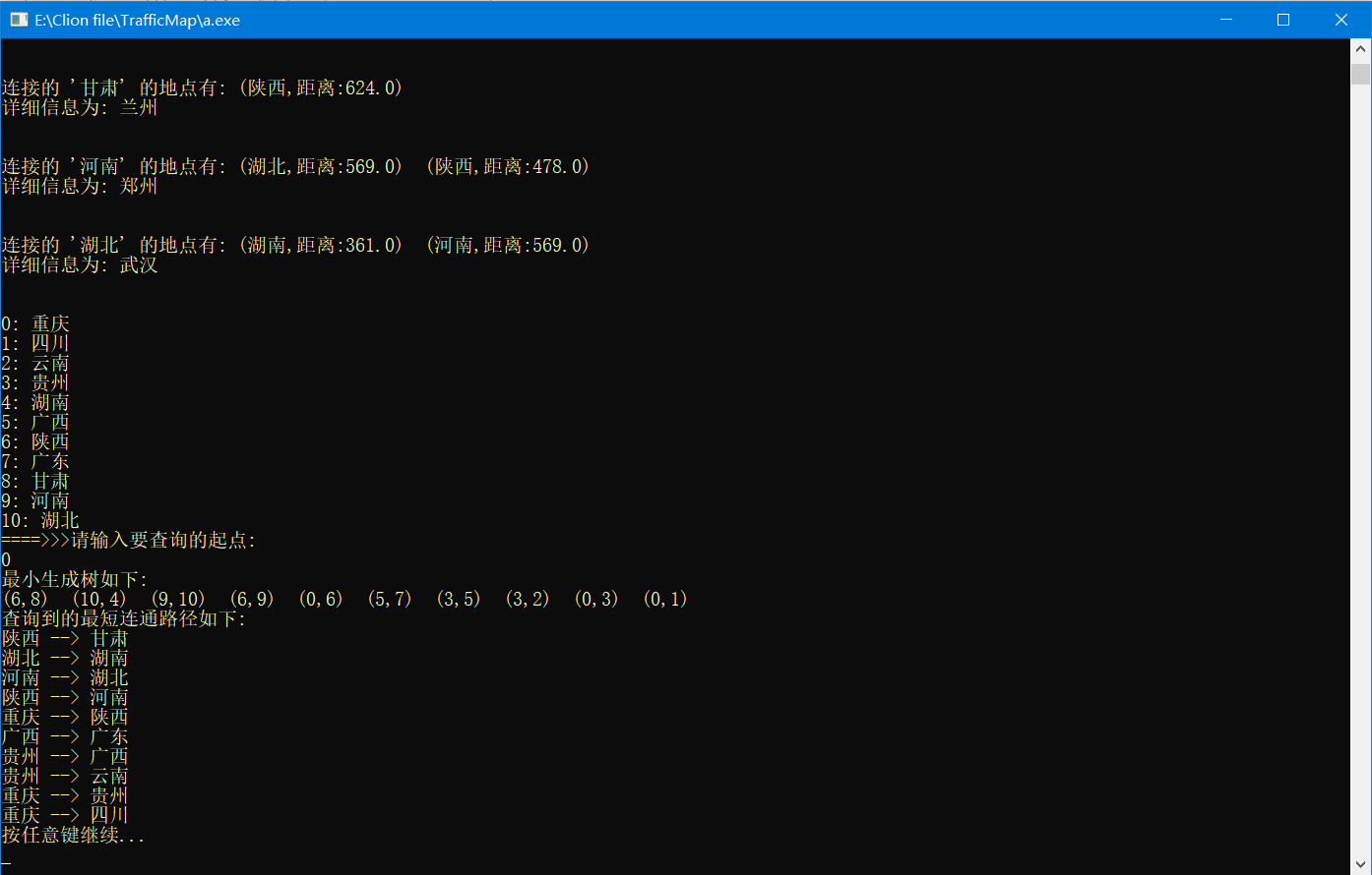 目录一、实验目的及要求二、算法原理概述1、图的基本概念2、最短路径(Prim算法和Dijkstra算法)3、拓扑排序三、软件开发环境及工具四、实验内容1、问题提出2、解决思路3、算法步骤4、结果分析5、实验核心代码五、实验总结六、参考文献附录 完整源代码一、实验目的及要求(1)图的存储表示及其基本操作实现。(2)最短路径算法。(3)系统功能:要求设计一个简易的交通咨询系统,可让用户咨询任意两个城市之间的最短距离、最低花费或最少时间等问题。(4)对于不同的咨询要求,输入咨询的内容。(5)用户界面的友好性:程序能提供菜单供用户选择以及相应的交互信息。二、算法原理概述1.图的基本结构(1)有向图。若E是有向边(弧)的有限集合时,则图G为有向图。弧是顶点的有序对,记为