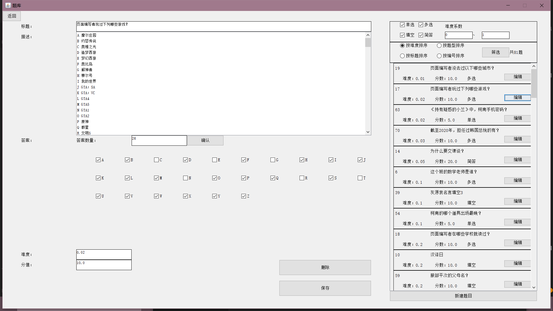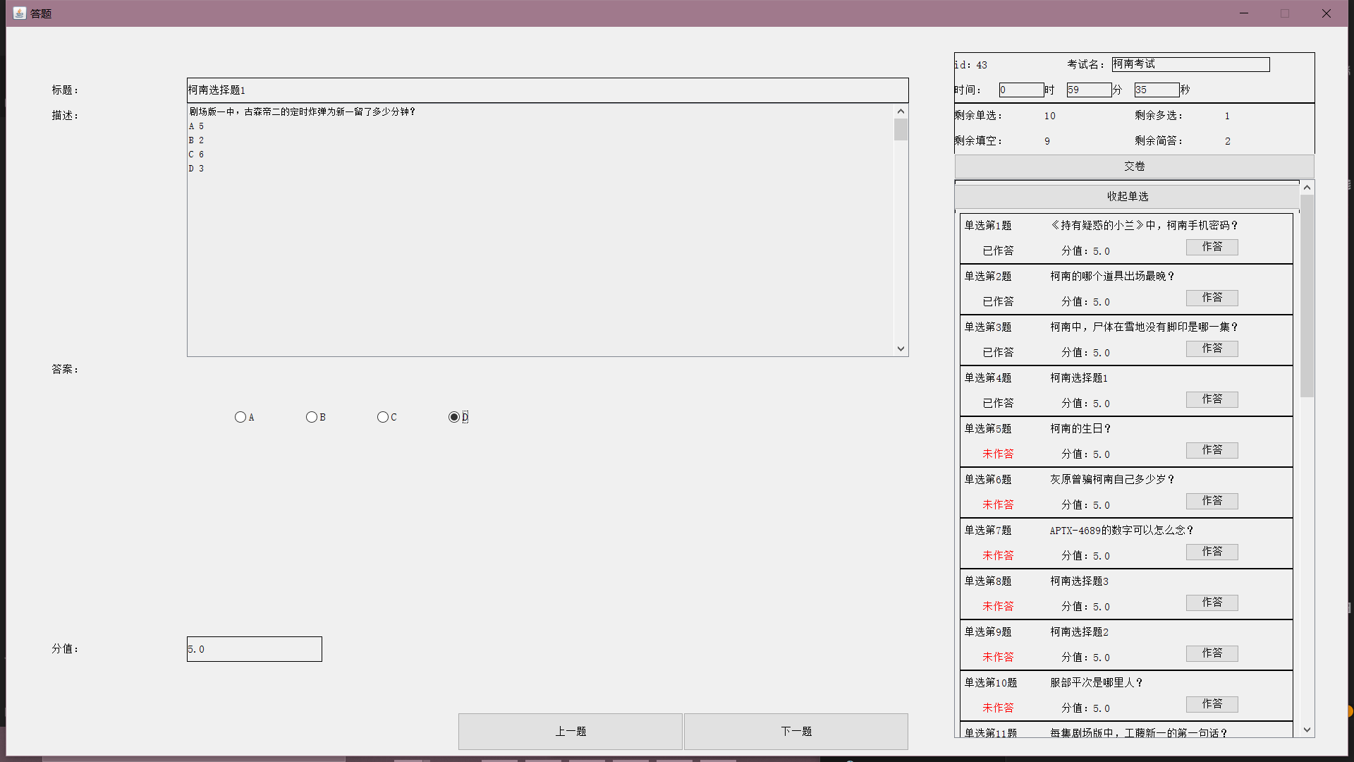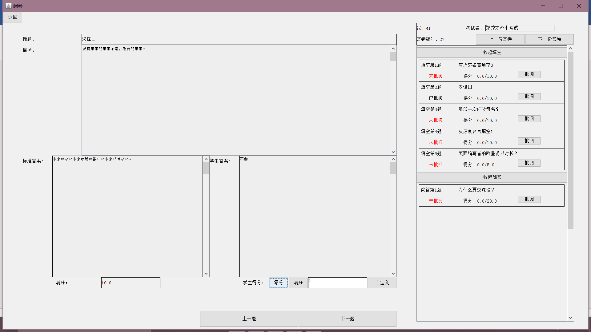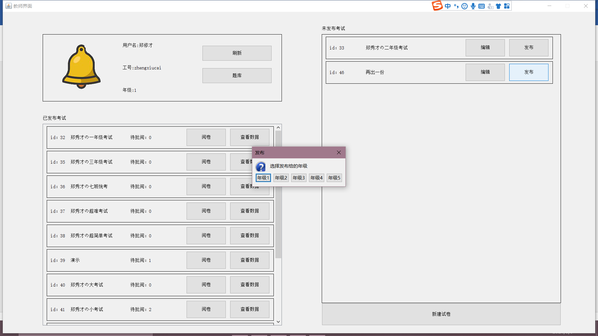 目录一、系统模块架构 11.1 系统平台配置 11.2 总体结构设计 21.3 系统框架设计 21.4 主要功能模块设计 41.5 服务器端设计 191.6 系统功能实现 26二、主要技术难点 712.1 外键集合 712.2 RPC 模式 722.3 自定义异常 772.4 伸缩面板 782.5 计时器 832.6 自动阅卷 832.7 自动生成试卷与难度系统 832.8 统计图绘制 84三、关键代码 853.1 外键集合 853.2 RPC 模式 863.3 自定义异常 923.4 伸缩面板 943.5 计时器 1013.6 自动阅卷 1023.7 自动生成试卷与难度系统 1043.8 统计图绘制 106一、系统模块架构1.1 系统平台配置如表 1-1:表 1-1 系统平台配置表服务器/客户端操作系统 Windows10数据库 MySQL开发环境 IntelliJ IDEA开发语言 Java1.2 总体结构设计基于 C/S 架构实现的在线考试系统的整体结构可以划分为数据库、服务器和客户端三大结构。总体架构如图 1-1 所示(图源百度):