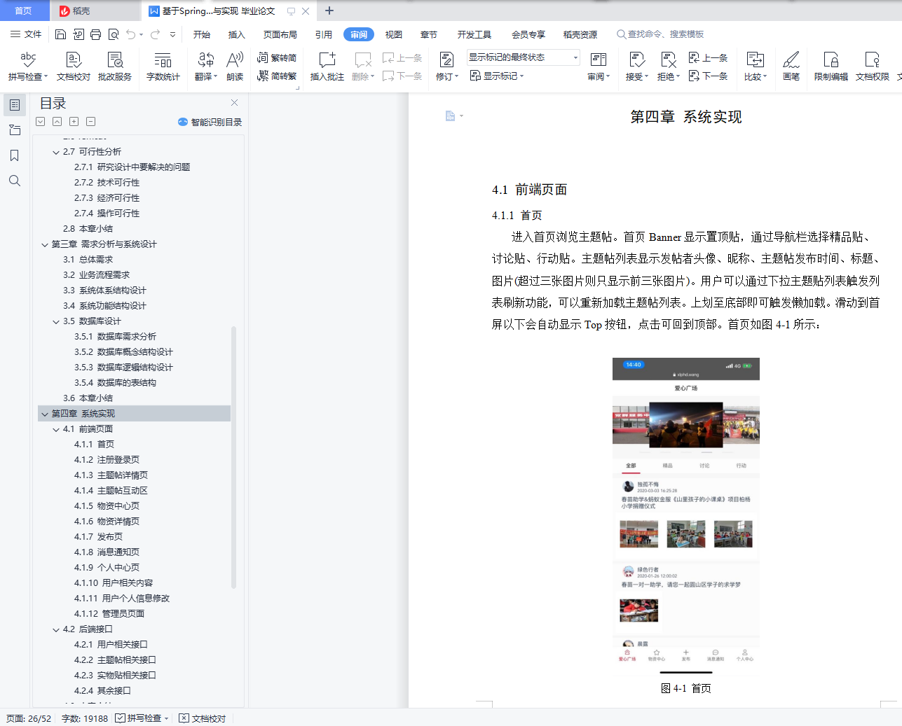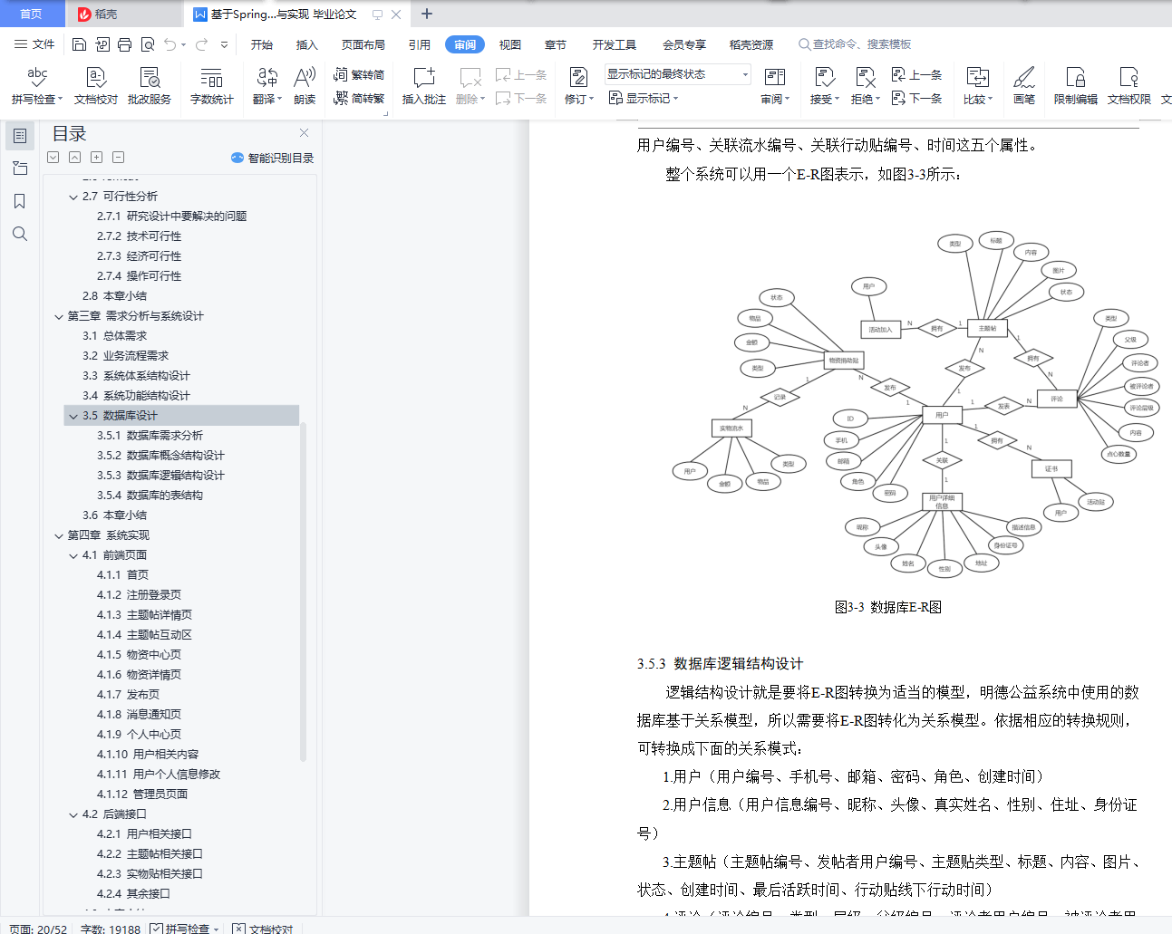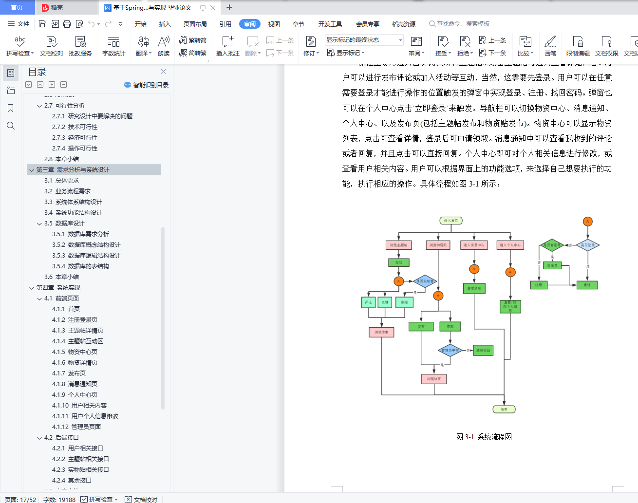 摘 要中国的公益行业资源整合能力较差,需要逐步增强。公益项目的资源整合能力可以让很多社会问题得到关注,同时获得更多的长期资源,并可持续的帮助社会问题的解决和改善。参与公益的方式不可再拘泥于传统,创新的公益传播方法,可以给公益带来的更多的可能性。本文通过对公益的重要性,以及对线上公益模式优势的分析,设计出了一套基于浏览器的线上公益系统。利用当前较流行的技术和MVC开发模式进行开发,将数据存储在MySql数据库中。该系统实现了用户注册、登录、主题帖发布、评论互动、物资贴发布、物资申领、流水记录、证书颁发等功能。用户可以通过域名进入系统首页,浏览其他用户发布的主题帖、评论、物资贴等。通过手机号进行注册登录,登录后可参与主题帖的互动,包括点心、评论、加入线下公益行动等。可以在物资贴中浏览其他用户捐助的物资及物资分配的流水记录情况,并对需要的物资进行申请。用户也可以自己发布主题帖或者物资贴,发起主题讨论、线下行动或者捐助物资。参与线下公益行动或者发布物资捐助贴后,系统会生成证书,用户可以在个人中心查看自己获得的全部证书。系统还具有管理员管控功能,管理员可以对主题帖或评论及进行质量控制,能够修改主题帖的状态,也可以直接删除恶意贴子或者评论。另外,管理员还需要进行申领物资审核,决定申领物资的用户是否能得到帮助。该系统有效解决了传统公益的覆盖范围小、活动形式单一、资源整合能力差等问题。实现公益模式从线下向线上转型,为全国各地的公益人或公益组织提供了一个集实时交流、活动策划、物资捐助等功能于一身的线上社区。系统暂命名‘明德公益’。关键词:资源整合,MVC,社区,明德公益ABSTRACTChina's public welfare industry has poor resource integration capabilities and needs to be gradually strengthened. The resource integration ability of public welfare projects can make many social problems get attention, at the same time get more long-term resources, and can help solve and improve social problems in a sustainable manner. The way of participating in public welfare can no longer be confined to tradition. Innovative public welfare communication methods can bring more possibilities to public welfare.Based on the analysis of the importance of public welfare and the advantages of online public welfare model, this paper designs a browser-based online public welfare system. Using the current popular technology and MVC development mode to develop, the data is stored in MySql database. The system implements functions such as user registration, login, topic post release, comment interaction, material post release, material application, flow record, and certificate issuance. Users can enter the homepage of the system by domain name, and browse the topic posts, comments, material stickers, etc. posted by other users. Register and log in through your mobile phone number. After logging in, you can participate in the interaction of topic posts, including snacks, comments, and joining offline public welfare actions. You can browse materials donated by other users and the distribution records of materials distribution in the material stickers, and apply for the required materials. Users can also post topic posts or material stickers, initiate topic discussions, offline actions or donate materials. After participating in offline public welfare actions or posting material donation stickers, the system generates a certificate, and users can view all the certificates they have obtained in the personal center. The system also has an administrator control function. The administrator can perform quality control on topic posts or comments, modify the status of topic posts, or directly delete malicious posts or comments. In addition, the administrator also needs to review the application materials to decide whether the user who applies for materials can get help.The system effectively solves the problems of small coverage of traditional public welfare, single form of activities, and poor resource integration capabilities. To realize the transformation of the public welfare model from offline to online, it provides an online community that integrates real-time communication, event planning, material donation and other functions for public welfare people or organizations across the country. The system is temporarily named ‘Middlebury Charity’.KEY WORDS: Integration of resources, MVC, Community, Middlebury Charity’目 录第一章 前言 11.1 系统概述 11.1.1 课题开发背景及意义 11.1.2 软件概述 21.1.3 运行环境 31.1.4 用户类及其需求 31.2 具体需求 31.2.1 功能需求 31.2.2 性能需求 31.2.3 质量属性需求 41.2.4 设计和实现上的限制 41.3 本章小结 4第二章 相关技术、工具及可行性分析 52.1 SpringBoot + Shiro + JWT 52.1.1 SpringBoot 52.1.2 Shiro 52.1.3 JWT 52.2 MySql + MyBatis 62.2.1 MySql 62.2.2 MyBatis 62.3 Redis 62.4 Vue.js + WebPack 62.4.1 Vue.js 62.4.2 WebPack 62.5 SublimText 72.6 Tomcat 72.7 可行性分析 72.7.1 研究设计中要解决的问题 72.7.2 技术可行性 82.7.3 经济可行性 82.7.4 操作可行性 82.8 本章小结 8第三章 需求分析与系统设计 93.1 总体需求 93.2 业务流程需求 113.3 系统体系结构设计 123.4 系统功能结构设计 123.5 数据库设计 133.5.1 数据库需求分析 133.5.2 数据库概念结构设计 133.5.3 数据库逻辑结构设计 143.5.4 数据库的表结构 153.6 本章小结 19第四章 系统实现 204.1 前端页面 204.1.1 首页 204.1.2 注册登录页 214.1.3 主题帖详情页 214.1.4 主题帖互动区 224.1.5 物资中心页 244.1.6 物资详情页 254.1.7 发布页 254.1.8 消息通知页 264.1.9 个