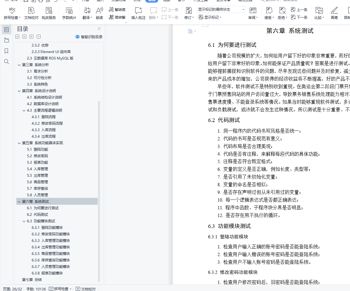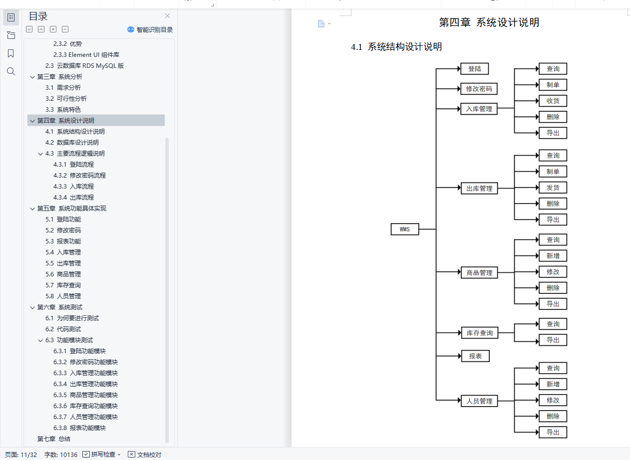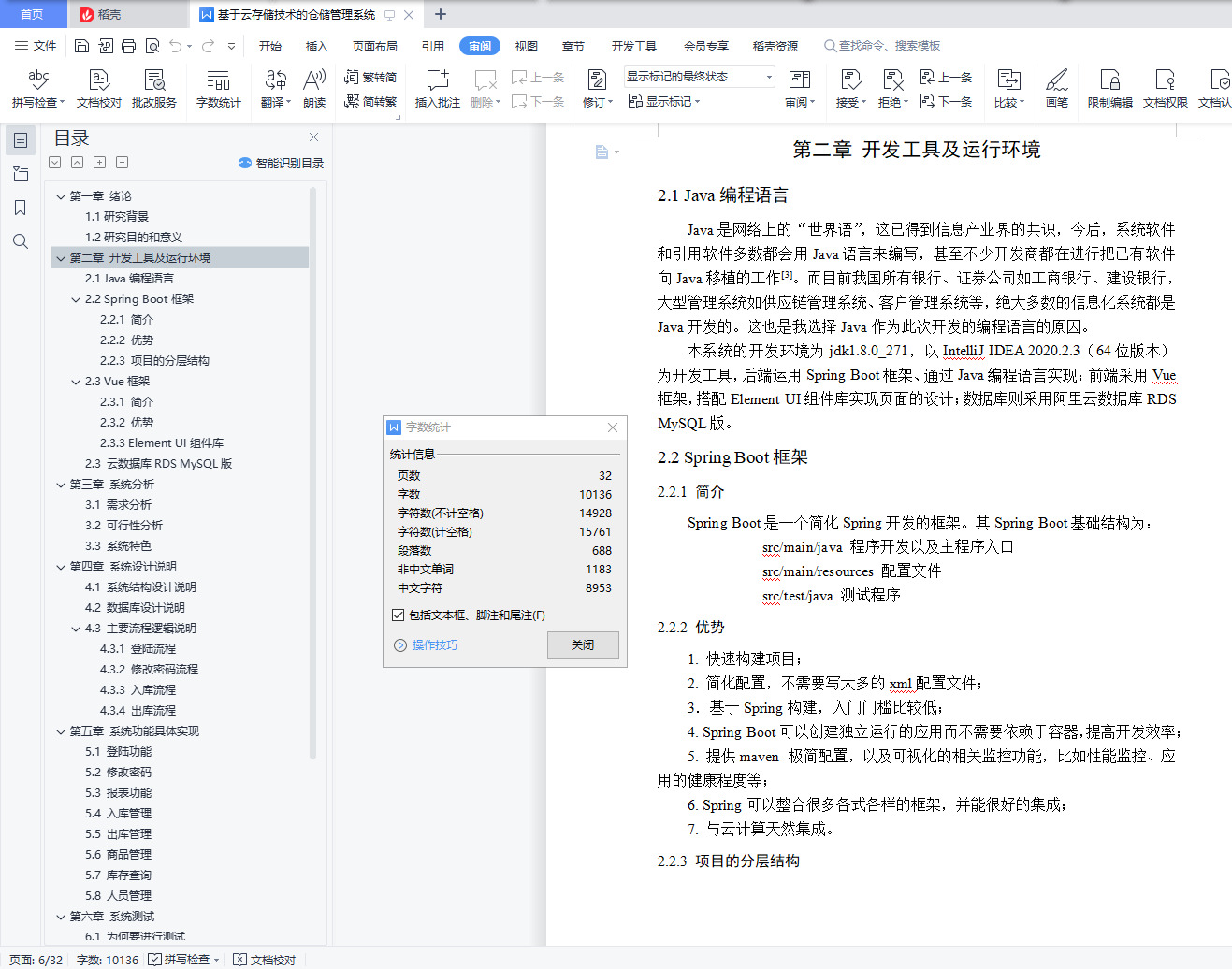 基于云存储技术的仓储管理系统摘 要随着社会的发展,计算机技术日臻成熟,生产管理的方式也从传统的人工管理模式发展成智能管理模式,而仓储管理系统就是为实现企业产品管理的智能化,提高企业管理效率而设计的。它取代了传统的人工仓库作业模式,取缔了人工数据采集的方式,避免了由于管理人员的工作疏忽以及管理质量问题所造成的各种错误,为及时、准确、高效地完成仓库管理提供强有力的工具和管理手段,同时降低了企业在管理过程中的成本。而将数据存储在云服务器中,既加强了数据存储的安全性,又提高了存储效率,解决了存储空间浪费的问题,进一步降低了管理过程中企业投入的成本。本系统由首页报表、基础管理、库存管理和系统管理四大模块组成,以阿里云RDS版云数据库配置MySQL 5.7作为云存储数据库,运用了Spring Boot和Vue框架,以Java编程语言来开发的,仓储管理系统在运行阶段,操作简单、准确性高,实现了仓储管理的智能化,提高了仓储管理的工作效率。关键词:仓储管理;管理系统;云存储;MySQL数据库;Warehouse Management System Based on Cloud Storage TechnologyABSTRACTWith the development of society, the computer technology is becoming more and more mature, the way of production management has developed from the traditional artificial management mode into the intelligent management mode, and the warehouse management system is designed to realize the intelligent management of enterprise products and improve the efficiency of enterprise management. It replaced the traditional artificial warehouse operation pattern, banned artificial data acquisition mode, avoids because managers job oversight and management quality problem caused by all kinds of error, for timely, accurate and efficient complete warehouse management provides powerful tools and management, and reduce the cost in the enterprise in the management process. The storage of data in the cloud server not only strengthens the security of data storage, but also improves storage efficiency, solves the problem of storage space waste, and further reduces the cost of enterprise investment in the management process.This system is composed of four modules, namely, front page report, basic management, inventory management and system management. MySQL 5.7 is configured as cloud storage database by Ali Cloud RDS version. Spring Boot and Vue framework are used to develop the storage management system in the running stage, which is simple and accurate. It realizes the intelligence of warehouse management and improves the efficiency of warehouse management.KEY WORDS: Warehouse management; Management system; Cloud storage; MySQL database;目 录目录第一章 绪论 11.1研究背景 11.2研究目的和意义 1第二章 开发工具及运行环境 22.1 Java编程语言 22.2 Spring Boot框架 22.2.1 简介 22.2.2 优势 22.2.3 项目的分层结构 22.3 Vue框架 32.3.1 简介 32.3.2 优势 32.3.3 Element UI组件库 42.3 云数据库RDS MySQL版 4第三章 系统分析 53.1 需求分析 53.2 可行性分析 53.3 系统特色 6第四章 系统设计说明 74.1 系统结构设计说明 74.2 数据库设计说明 84.3 主要流程逻辑说明 104.3.1 登陆流程 104.3.2 修改密码流程 104.3.3 入库流程 114.3.4 出库流程 12第五章 系统功能具体实现 145.1 登陆功能 145.2 修改密码 145.3 报表功能 155.4 入库管理 165.5 出库管理 175.6 商品管理 185.7 库存查询 195.8 人员管理 20第六章 系统测试 226.1 为何要进行测试 226.2 代码测试 226.3 功能模块测试 226.3.1 登陆功能模块 226.3.2 修改密码功能模块 226.3.3 入库管理功能模块 236.3.4 出库管理功能模块 236.3.5 商品管理功能模块 236.3.6 库存查询功能模块 236.3.7 人员管理功能模块 236.3.8 报表功能模块 24第七章 总结 25
