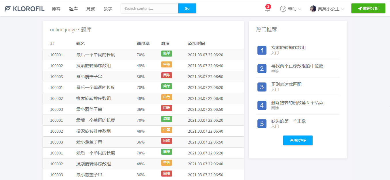 随着互联网的高速发展,长久以来的程序设计类评判方法已经无法满足教学需求,程序在线评测系统(OJ)流行于全国各大高校程序设计类教学中,许多学校正在逐步建立自己的OJ体系,以确保学校的培训质量,在此背景下,本文设计和实现了一个基于微服务的程序在线评测系统,皆在解决传统程序评测需手动评判的问题。本文系统基于Spring Cloud框架,由用户服务、题库服务、竞赛服务、教学服务和管理服务组成,明确划分了服务的不同职责,极大程度的提高了系统的性能和高可用性。用户可登录本系统提交评测源码,系统评测服务自动编译源码并运行,将运行结果比对测试用例,给出评判结果。教师可登录本系统布置教学作业,学生完成教学评测,这样能极大程度降低教师的劳动强度和评判过程中出现错误的可能性,并提高学生分析和解决问题的能力。