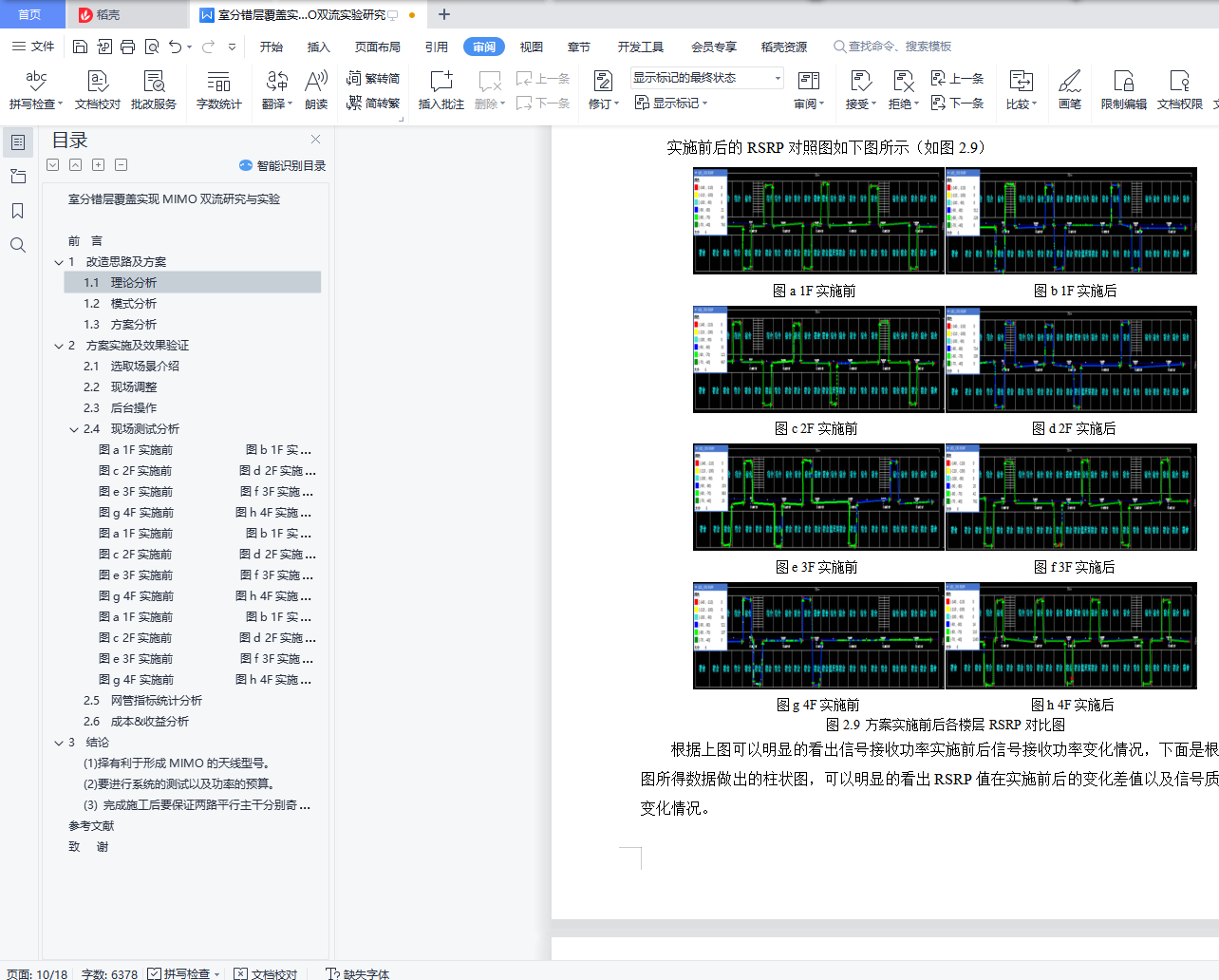 室分错层覆盖实现MIMO双流研究与实验摘 要 针对室分场景改造代价较高且实施困难的问题,结合学校、医院、商场、酒店等建筑的建筑结构规则一致、上下层点位一致、开阔无遮挡的特点,本文主要介绍MIMO(Multiple-Input Multiple-Output,多输入多输出)的原理,分析室分错层对实现MIMO性能的影响以及研究如何提高MIMO的性能发挥,采用错层MIMO的方法来实现双流提速,通过创新性室分RRU(Radio Remote Unit,无线远程模块)多端口错层覆盖技术手段,根据方案实施前后SINR、RSRP(Reference Signal Received Power, 参考信号接收电平)等数据的对比,以及同其他方案的比较,表明该方案基本实现双路室分的感知效果,且极大程度提升了用户感知,不但减少了投资成本与人力的消耗,且具有收益高,实施方便,适合推广等优点。关键词 室分改造;错层覆盖;用户感知提升;MIMO双流Research and experiment of MIMO dual-flow with staggered chamber coverageAbstract Aiming at the problem of high cost and difficult implementation of room division scene reconstruction, this paper mainly introduces the principle of MIMO (Multiple-Input Multiple-Output), analyses the influence of room division on the performance of MIMO, and studies how to improve the performance of MIMO. The performance of IMO is brought into full play by using staggered MIMO method to achieve double-flow speed-up. By means of innovative multi-port staggered coverage technology of Radio Remote Unit (RRU), the comparison of SINR and RSRP (Reference Signal Received Power) data before and after the implementation of the scheme and the comparison with other schemes show that the scheme basically realizes double-channel. The perception effect of the compartment greatly improves the user perception, which not only reduces the cost of investment and human resources consumption, but also has the advantages of high income, easy implementation and suitable for promotion.Keywords Room Revamping;Staggered Coverage;User Perception Enhancement;MIMO Dual-stream;目录室分错层覆盖实现MIMO双流研究与实验 1前 言 31 改造思路及方案 41.1 理论分析 41.2 模式分析 51.3 方案分析 62 方案实施及效果验证 72.1 选取场景介绍 72.2 现场调整 82.3 后台操作 92.4 现场测试分析 10图a 1F实施前 图b 1F实施后 10图c 2F实施前 图d 2F实施后 10图e 3F实施前 图f 3F实施后 10图g 4F实施前 图h 4F实施后 10图a 1F实施前 图b 1F实施后 11图c 2F实施前 图d 2F实施后 11图e 3F实施前 图f 3F实施后 11图g 4F实施前 图h 4F实施后 11图a 1F实施前 图b 1F实施后 12图c 2F实施前 图d 2F实施后 12图e 3F实施前 图f 3F实施后 12图g 4F实施前 图h 4F实施后 122.5 网管指标统计分析 142.6 成本&收益分析 153 结论 15(1) 择有利于形成MIMO的天线型号。 16(2) 要进行系统的测试以及功率的预算。 16(3) 完成施工后要保证两路平行主干分别奇偶交错与支路相连。 16参考文献 17致 谢 18