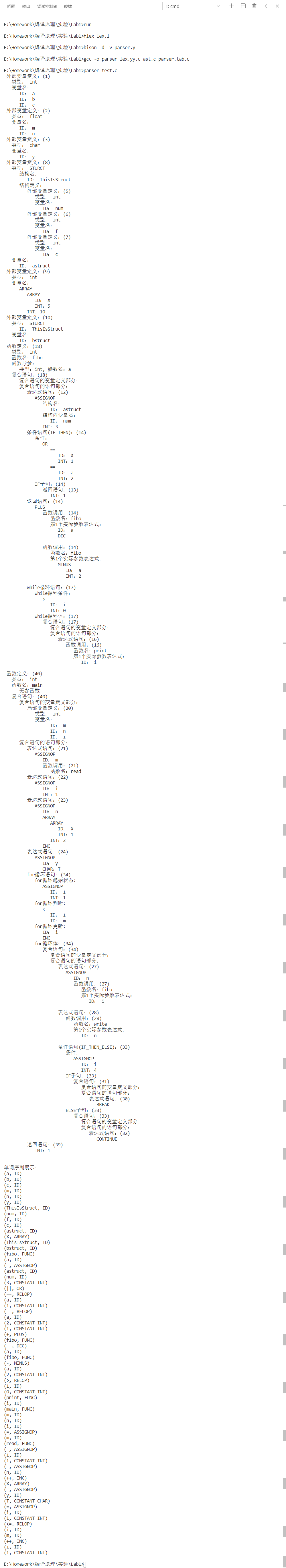 本次实验是构造一个高级语言的子集的编译器,目标代码是汇编语言。按照任务书,实现的方案可以有很多种选择。