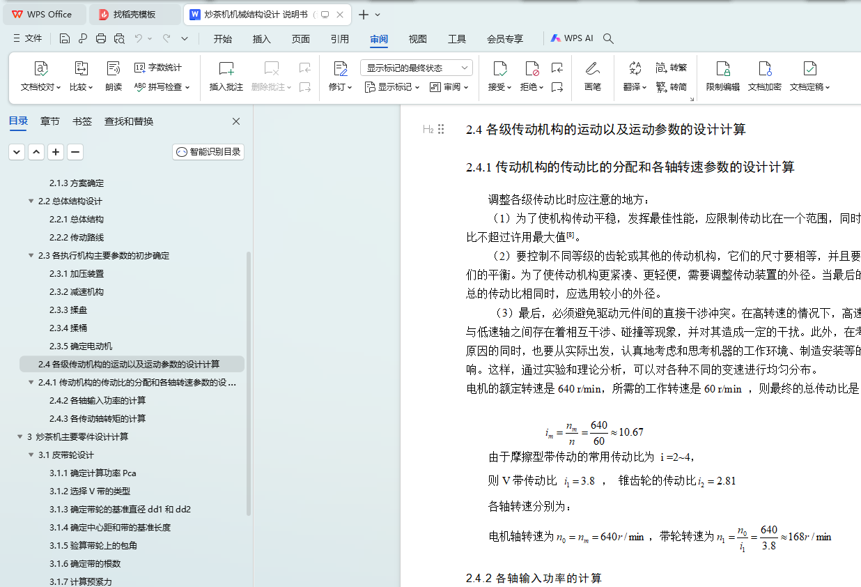 2.4各级传动机构的运动以及运动参数的设计计算 6