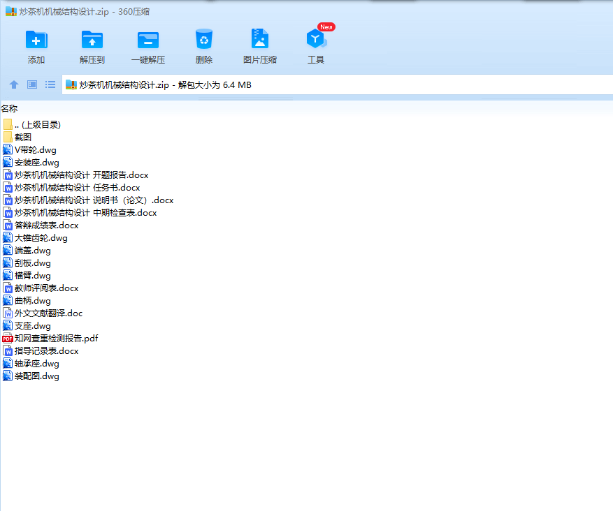茶叶揉捻是所有茶叶加工中不可或缺的一个工艺,它主要是利用手对茶叶的搓揉将茶叶搓紧成条,体积逐渐缩小,形状变成条状,同时使部分茶汁溢出,从而有利于干茶冲泡。但由于使用传统的人工炒制方式容易导致揉捻后的茶叶品质参差不齐,工人劳动强度过高,产量效益也较差,因此无法形成大规模产量,为改善这个情况,应研发一款小型茶叶揉捻机。因此,本设计着重在通用零件和执行装置层面上设计出一种新型小型茶叶揉捻机构,以降低劳动强度,促进机械化、机电一体化的现代化农业生产。设计的小型茶叶揉捻设备主要包括马达、减速器、压力机构、揉桶、揉桶盖、揉盘等部件。