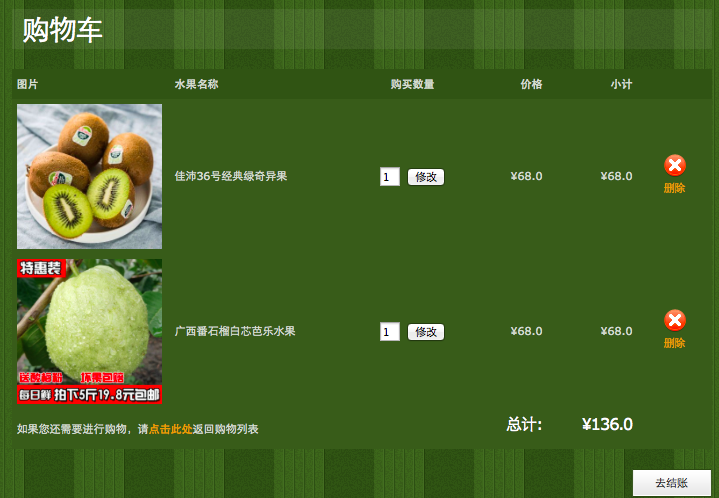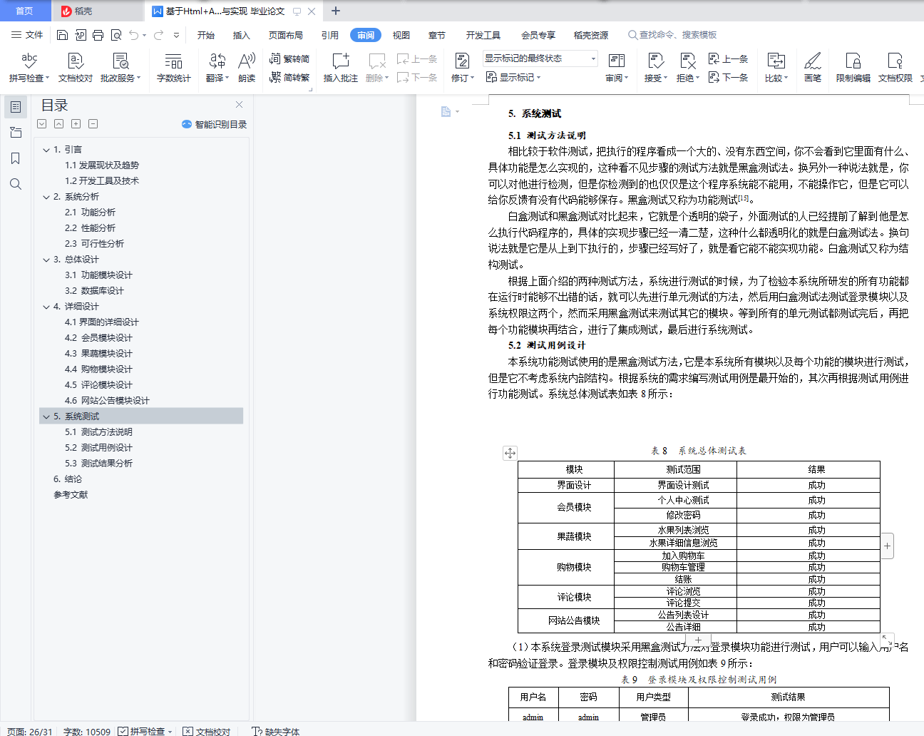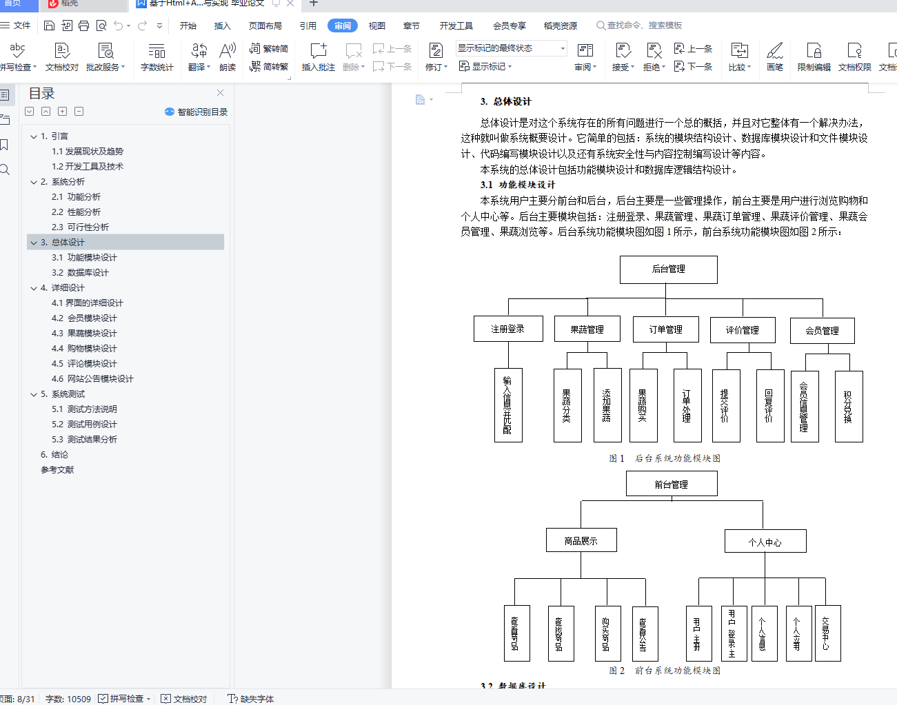 目 录1. 引言 11.1发展现状及趋势 11.2开发工具及技术 12. 系统分析 22.1 功能分析 22.2 性能分析 32.3 可行性分析 33. 总体设计 33.1 功能模块设计 43.2 数据库设计 44. 详细设计 104.1界面的详细设计 104.2 会员模块设计 144.3 果蔬模块设计 154.4 购物模块设计 164.5 评论模块设计 194.6 网站公告模块设计 205. 系统测试 215.1 测试方法说明 215.2 测试用例设计 215.3 测试结果分析 236. 结论 23参考文献 23内容摘要:真新鲜果蔬店没有完整的销售管理系统,导致果蔬销售管理需要人工记录,每日的总销售量会有偏差,难以统计。该系统既能方便店内人员对果蔬的统计和销售,又能使消费者通过合理果蔬搭配提高营养价值。本系统前台采用AngularJS框架,后台实现用的Java,主要是为了方便果蔬店的管理,这样一来不但能使果蔬实体店销售量增加,也能减少库存和其他因为果蔬腐烂而导致的损失。关键词:果蔬店 在线 系统Abstract: Real fresh fruit and vegetable stores have no complete sales management system, leading to the fruit and vegetable sales management needs manual record, the daily total sales volume will be biased, it is difficult to count.The system can not only facilitate the statistics and sales of fruits and vegetables in the store, but also enable consumers to improve the nutritional value through reasonable fruit and vegetables collocation.The system adopts AngularJS framework in the front desk and Java in the back desk, mainly to facilitate the management of fruit and vegetable stores, which can not only increase the sales volume of physical fruit and vegetable stores, but also reduce the inventory and other losses caused by rotten fruits and vegetables.Key words: fruit and vegetable shop online system