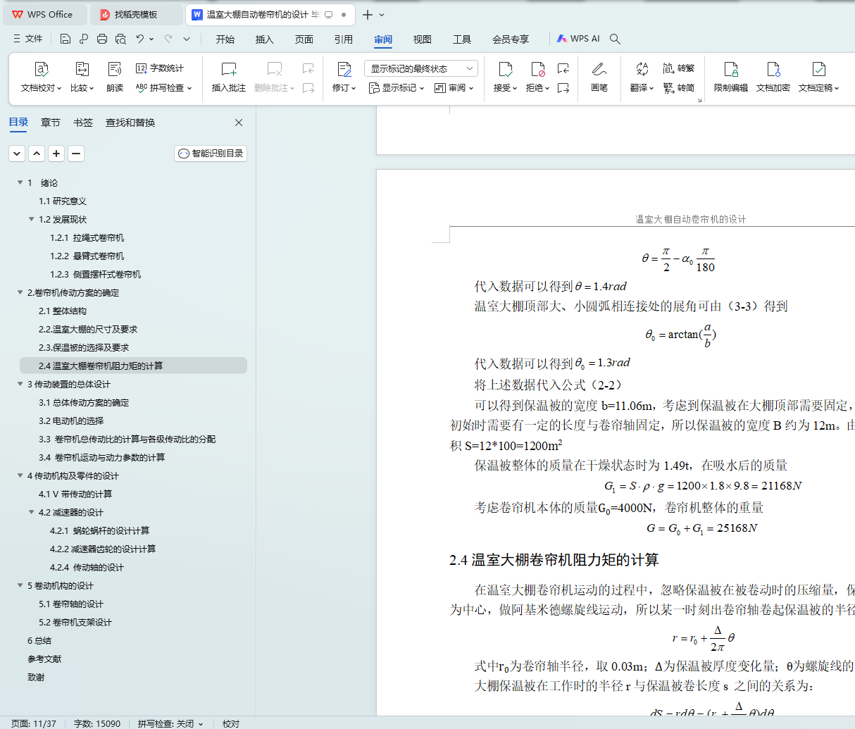 2.4温室大棚卷帘机阻力矩的计算