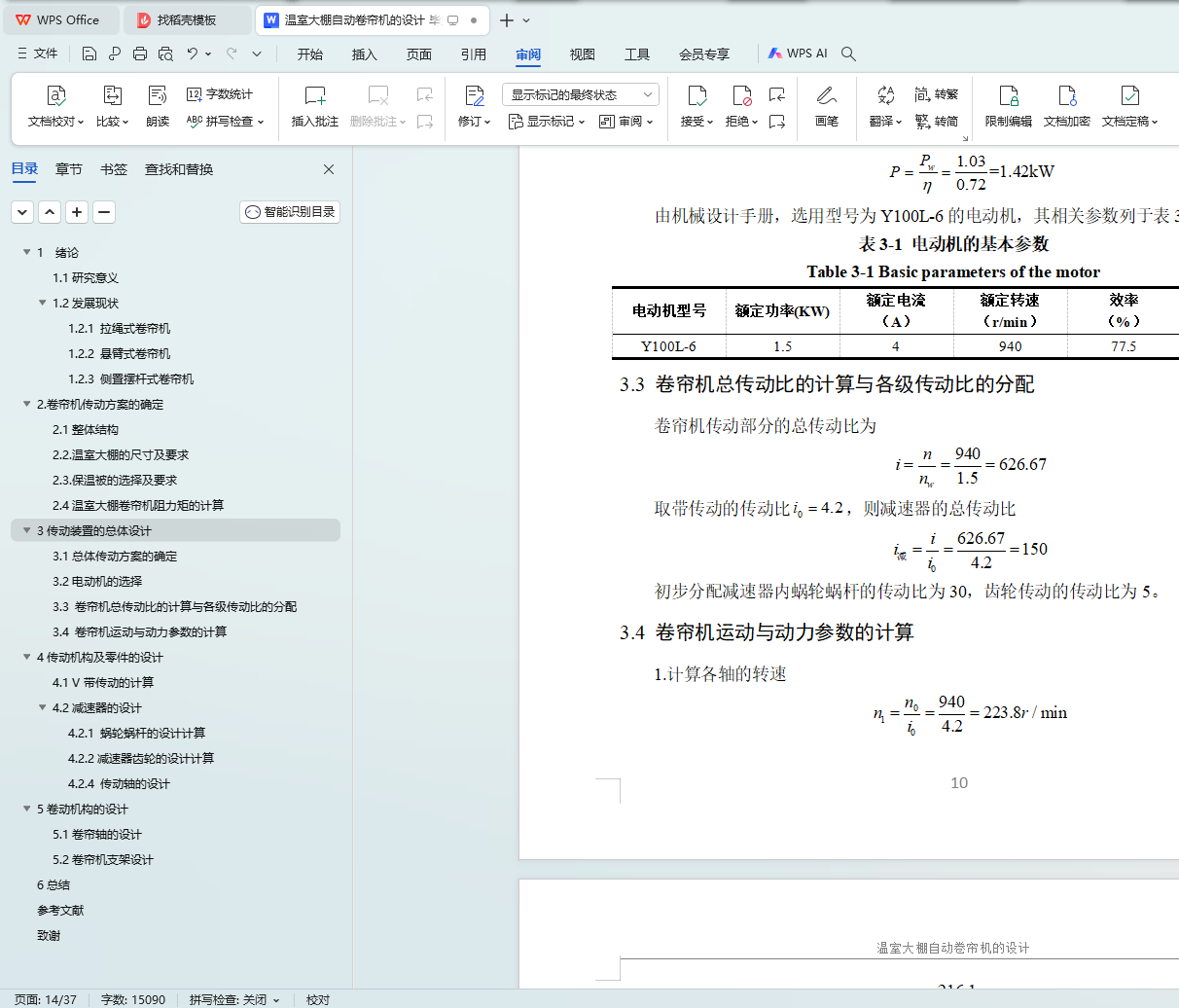 3.3 卷帘机总传动比的计算与各级传动比的分配