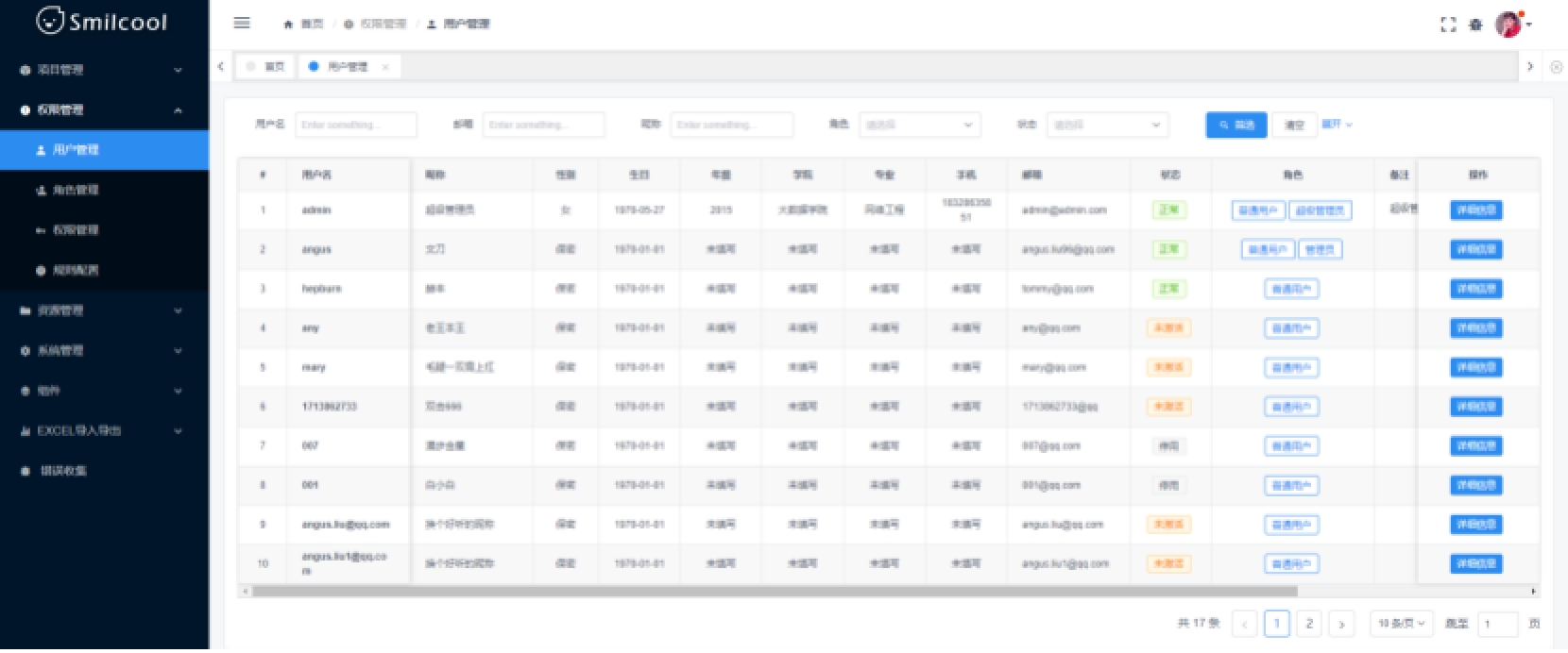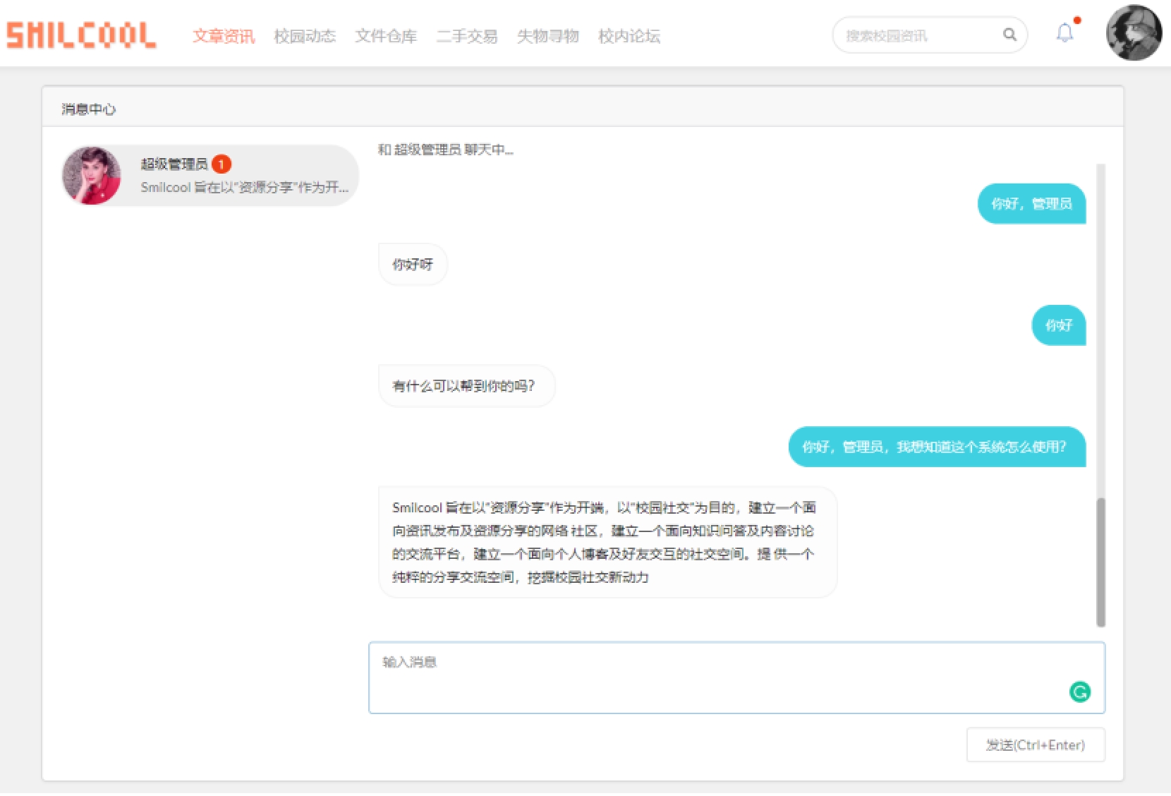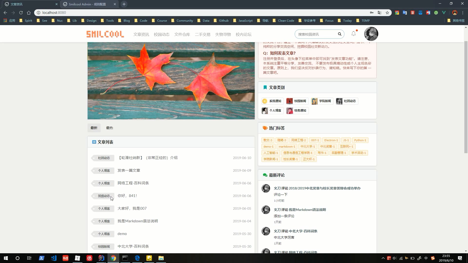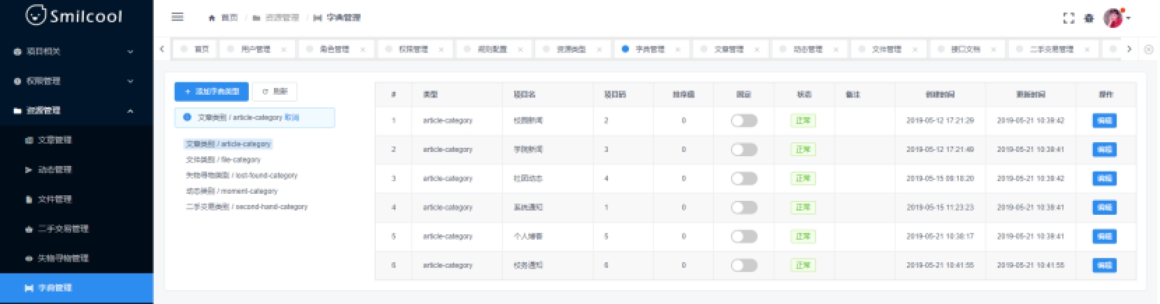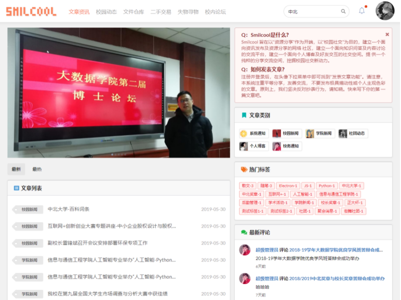 2.2系统总体要求2.2.1系统功能需求系统功能需求主要分为以下 7 条:1)权限管理:用于分配用户角色,配置角色权限,对不同角色的用户进行系统访问时加以授权和权限验证。2)资源管理:可以对用户发布的各项资源,文章、动态、文件、二手交易、失物寻物等信息进行集中管理。此外,还可以对系统设计中用到的字典数据进行集中管理,以维护系统设计中字典数据的一致性。3)系统管理:系统管理包括系统接口文档管理和 SQL 监控。4)账户管理:用于用户进行登录、注册、个人信息查看和修改功能。5)资源业务:提供文章、动态、文件、二手交易、失物寻物等模块的添加、查看、更新服务。6)全文搜索:对于文章,提供全文搜索服务,用户可以借助此模块实现对文章的全文搜索,相较简单的模糊搜索,全文搜索能获取更精确和更有用的搜索结果。即时通讯:实现 Web 端即时聊天,实现用户之间的消息交流。