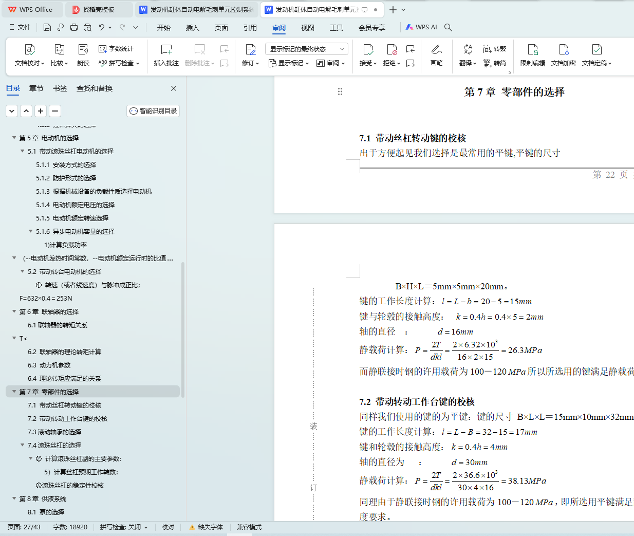 7.1 带动丝杠转动键的校核………………………………………… 23