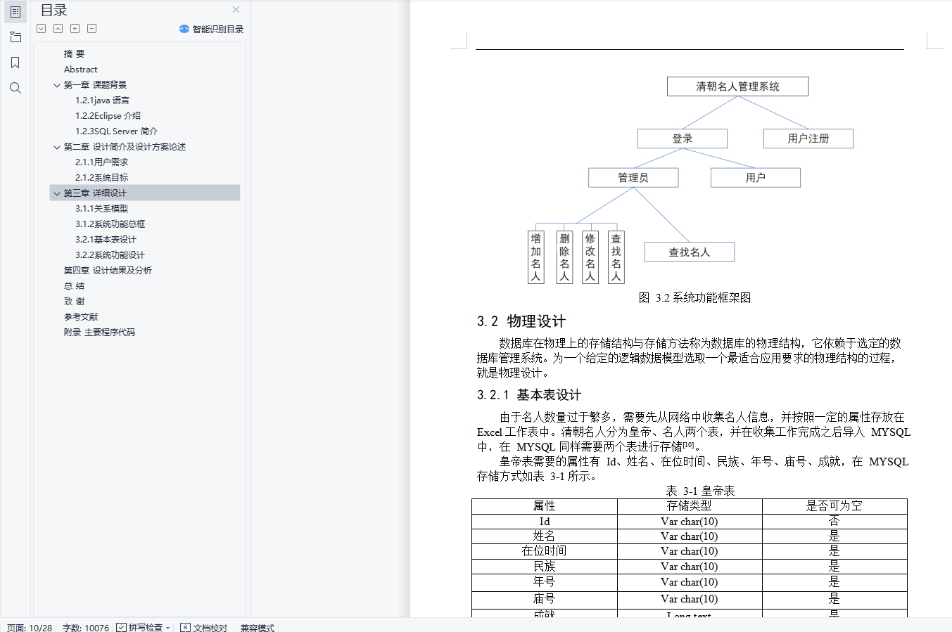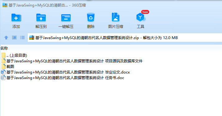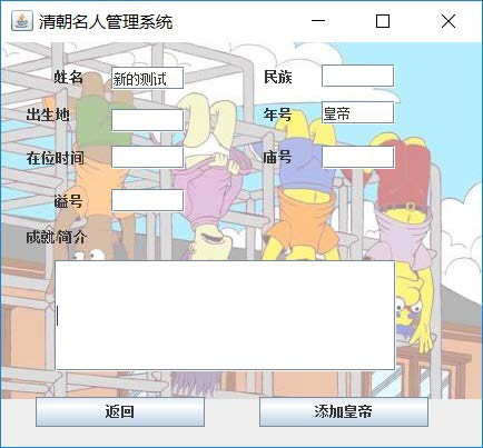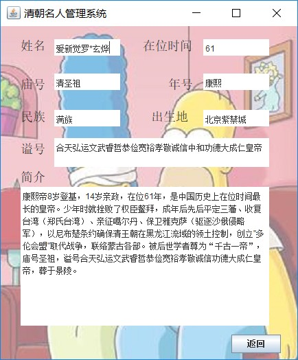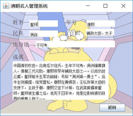 基于JavaSwing+MySQL的清朝古代名人数据管理系统设计 毕业论文+任务书+项目源码及数据库文件