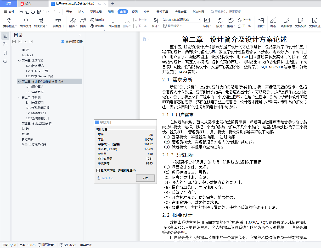 目 录摘 要 IIAbstract III第一章 课题背景 11.1课题介绍 11.2工具介绍 11.3章节安排 2第二章 设计简介及设计方案论述 32.1需求分析 32.2概要设计 3第三章 详细设计 63.1逻辑设计 63.2物理设计 7第四章 设计结果及分析 124.1功能测试 124.2结果分析 18总 结 19致 谢 20参考文献 21附录 主要程序代码 22摘 要清朝是中国历史最后一个大一统封建王朝,共传十帝,享国二百七十六年。为了能够将古代名人及各个朝代的皇帝的信息统一起来,使用数据库信息管理系统是很常见的方法。数据库与 JAVA Swing 结合起来,既可以做出一个直观、简约的界面,也可以很容易实现添加、删除、查询和修改操作。同时也可以存储相当可观的资料。首先,利用java 做出必要的界面,其中包括登录以及增删查改五个界面,其次,使用 JDBC 将已经存入名人、皇帝资料库的数据库连接起来,最后再加入指令代码,即可实现名人数据库管理系统。在名人数据库管理系统设计完成之后,它必须具备界面中所对应的功能,即可以完成登录、注册、添加、删除、查询和修改操作,并且在数据库中会得到相应的反映。名人数据库管理系统相对于之前的管理方法及途径更方便管理,易于更新,最大化的简化了管理员的管理工作,同时也让使用者更容易接受该系统。关键词:古代名人;管理系统;javaswing 开发;mysql 储存AbstractThe Qing Dynasty was the last unified feudal dynasty in Chinese history. It was handed down to ten emperors for 276 years. In order to unify the information of ancient celebrities and emperors of different dynasties, the use of database information management system is a common method. The combination of database and JAVA Swing can not only make an intuitive and concise interface, but also make it easy to add, delete, query and modify operations. At the same time, considerable data can be stored. Firstly, we use java to make the necessary interfaces, including login, add, delete and modify five interfaces. Secondly, we use JDBC to connect the databases already stored in celebrities and emperors'databases. Finally, we add instruction codes to realize the celebrity database management system. After the design of celebrity database management system is completed, it must have corresponding functions in the interface, that is, it can complete login, registration, addition, deletion, query and modification operations, and it will be reflected in the database accordingly. Celebrity database management system is easier to manage and update than the previous management methods and ways, which simplifies the management of administrators and makes users more receptive to the system.Keywords:Ancient celebrities; Management system; JavaSwing development; Mysql storage