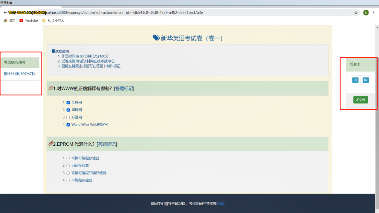 系统可以实现网络考试的一些重要功能,如:试卷的添加、删除,选择试卷、考试试卷查看、以及数据库的设计、考试计时模块维护、考试科目模块的维护等。学生网络考试系统主要是为学生网络考试提供全面、准确、科学的管理方法,方便快捷地处理线上考试;避免了信息处理错误,提高了信息管理的工作效率,便捷的网络考试,大大地节省人力和物力的开支。