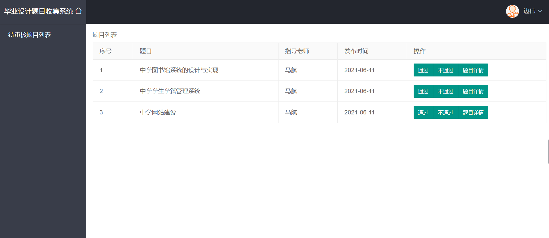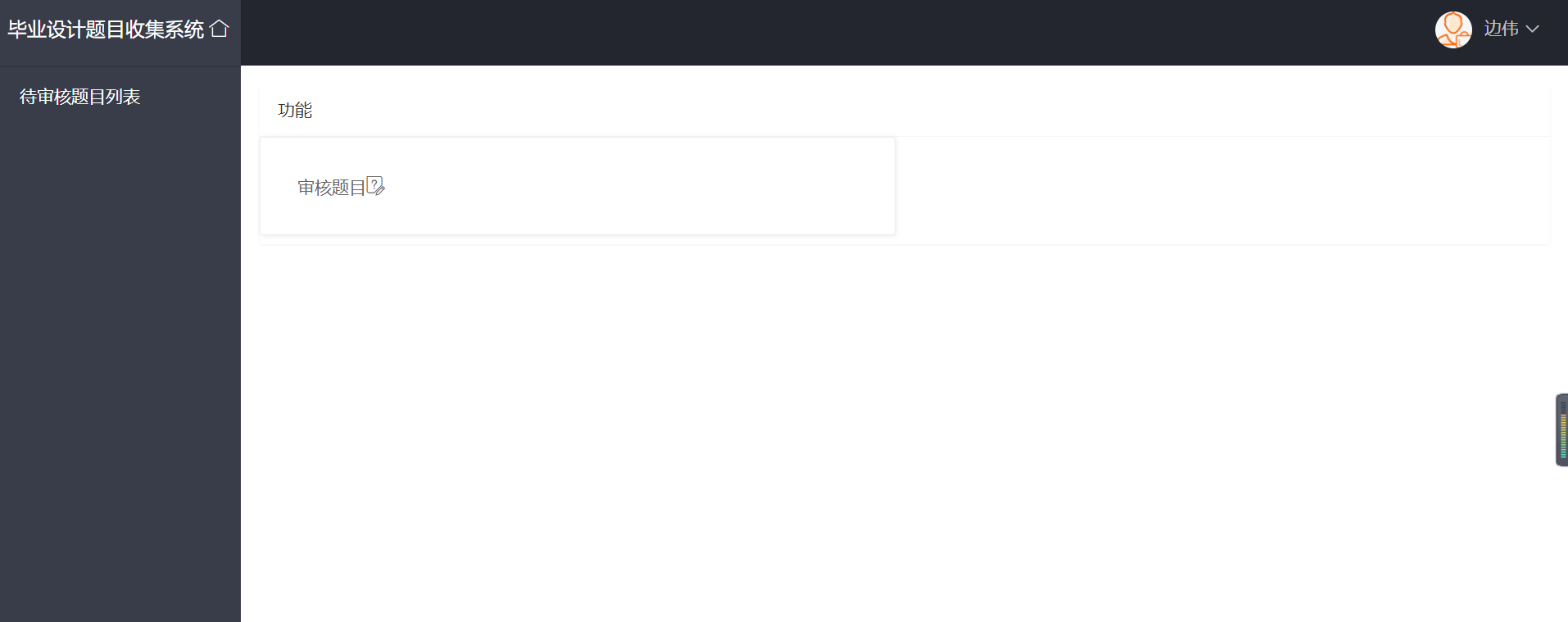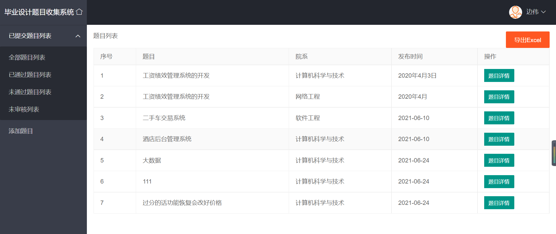 一、需求分析 11.1系统需求 11.2功能分析 11.3 性能需求 21.4 数据需求 21.5 运行需求 2二、总体设计 32.1系统开发环境 32.2 模块结构 32.3 技术路线 32.4数据库表设计 32.5 界面布局和风格 4三、详细设计 53.1 项目代码组织 53.2 核心功能实现 63.3 配置文件 14四、设计结果 144.1 登录及注册页面 144.2 管理员界面 154.3 教师界面 164.4 院系负责人界面 16五、设计总结 17一、需求分析1.1系统需求随着近些年高校的持续扩招,学生人数逐年增加。为了满足广大学生的求学要求,各高校的师资力量、硬件配置也随之加强。这样一来,日常行政部门的工作也就越来越繁重。传统的管理方式耗费大量的资源,毕业设计题目收集系统比传统的手工管理方式相比不但节约资源,而且更加方便,便于查询和修改信息。毕业设计题目收集系统应该提供管理员、系主任和教师三种用户类型。系统管理员登录系统后可以查看出题进度、各院系的出题数以及已经审核通过的题目数,还可以将某位教师设置为系主任;院系负责人(系主任)登录后的主要操作是审核自己所负责院系的题目(通过或者不通过);教师登录后的主要操作是出题,将题目提交给院系负责人进行审核,若该题目被驳回,则对其进行修改后继续提交直至审核通过,以及查看自己已提交的题目(教师还可以将自己的题目表导出为Execl)。将系统需求加以总结,得系统需求如下:系统可以运行在Windows操作系统平台上,并具有友好的用户界面;系统用户类型为:管理员、院系负责人、教师;管理员可以查看所有院系的题目信息,不能对其进行修改;院系负责人负责审核自己院系的题目;教师可以查看自己所出的题目以及审核结果,可以添加题目并提交;