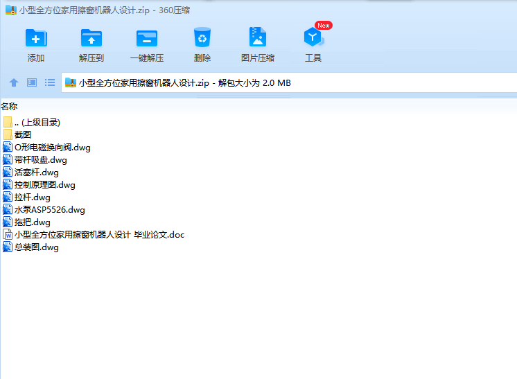 本次设计一款可以在家用安全擦窗的机器人,要求在擦洗过程中动作顺畅,机构灵活。可以说实现家用安全工作,装置简单、轻便。外形美观,方便拆卸。可实现厚度为5mm-32mm的家用擦窗的擦洗。首先对小型全方位家用擦窗机器人总体方案进行介绍,在此基础上,对小型全方位家用擦窗机器人总体结构进行设计分析。其次重点介绍小型全方位家用擦窗机器人的驱动机构,讨论小型全方位家用擦窗机器人的作业路径及运动控制规划。最后,简单介绍小型全方位家用擦窗机器人的擦洗机构。