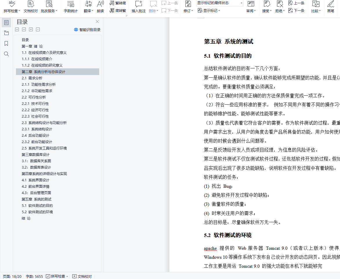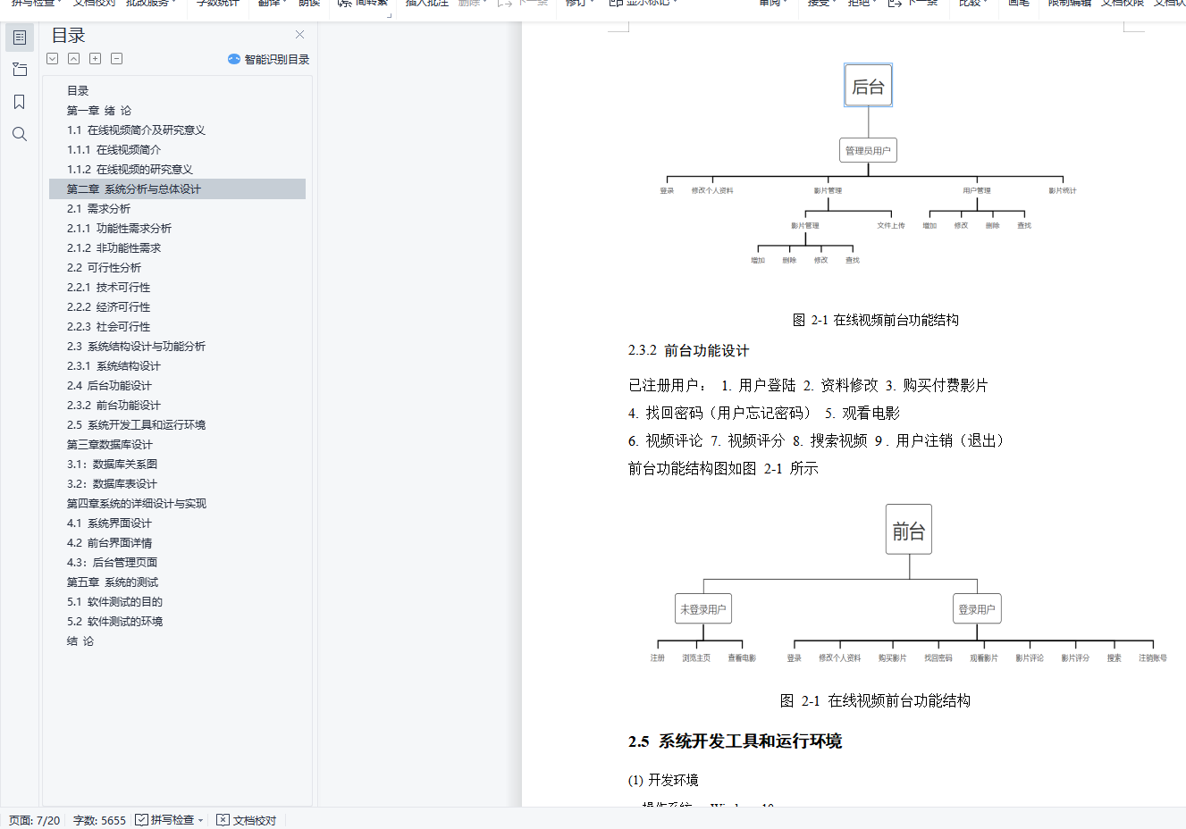 摘 要随着计算机应用技术和 网络技术的日新月异 , 宽带视频点播技术因良好的人机交互性和流媒体传输技术倍受教育、娱乐等行业青睐。这里结合平台开发实例,阐述了基于 WEB的在线视频点播网站的软件结构和设计实现。本视频点播系统实现用户信息管理、视频文件的添加、删除、修改及在线播放和搜索功能。由于本系统是一个小型系统,所以我们采用基本的 MySQL数据库,易于实现。具体实现中将 vue及 springboot完美融合,力求界面美观、操作流畅。本文主要论述服务器端视频服务平台的搭建、管理功能的具体实现,以及图形用户界面的相关设计。关键词:视频; MySQL;springboot;vue目录目录第一章 绪 论 11.1 在线视频简介及研究意义 11.1.1 在线视频简介 11.1.2 在线视频的研究意义 1第二章 系统分析与总体设计 22.1 需求分析 22.1.1 功能性需求分析 22.1.2 非功能性需求 22.2 可行性分析 32.2.1 技术可行性 32.2.2 经济可行性 32.2.3 社会可行性 42.3 系统结构设计与功能分析 42.3.1 系统结构设计 42.3.2 前台功能设计 42.4 后台功能设计 52.5 系统开发工具和运行环境 5第三章 数据库设计 73.1:数据库关系图 73.2:数据库表设计 7第四章 系统的详细设计与实现 94.1 系统界面设计 94.2 前台界面详情 104.3:后台管理页面 14第五章 系统的测试 165.1 软件测试的目的 165.2 软件测试的环境 16结 论 18
