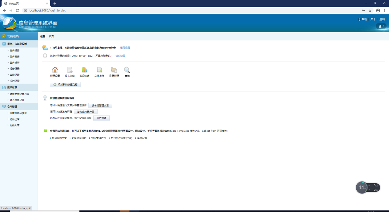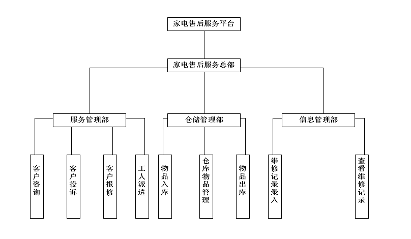 1.3 研究内容本文在互联网发展快速、便捷的节奏下对已成型的售后服务发展方向及应用状况基础上的分析,重点对家电售后的系统需求、业务流程、系统结构、数据库模型进行分析和设计。此系统运用了B/S架构设计、MVC三层架构、JavaWeb技术、HTML5+CSS3页面布局控制技术等,实现了客户咨询模块、客户投诉模块模块、客户报修模块、仓库进出货物模块、工人派遣模块、报修信息记录模块的实现与设计。此系统完成后,客户的报修、咨询、投诉、仓库库存、工人的维修进度、维修的记录几乎全部实现了可视化、可控性、及时获取和实时监控的信息化管理。将会大幅度地提高管理的效率、便捷与安全等,节约了生产运输成本同时也可以根据市场信息更好的安排生产运输以及更加贴心的售后服务。