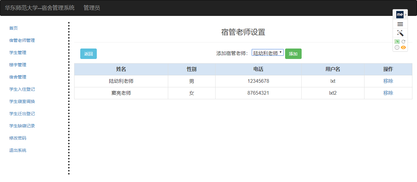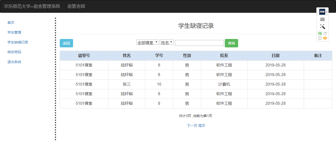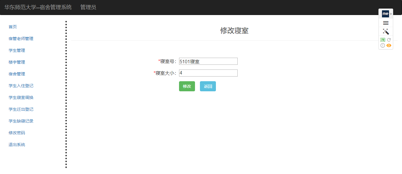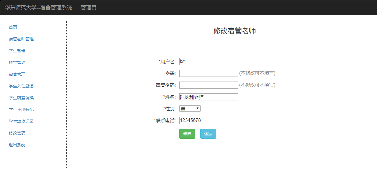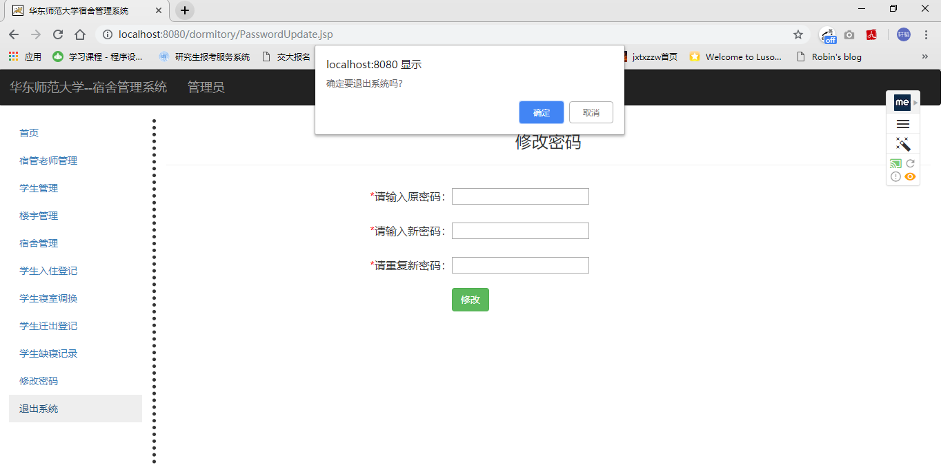 目 录一. 系统需求分析 11. 系统描述 12. 数据存储需求 13. 系统常做的查询与更新 24. 应用程序功能 2二. 数据库概念设计 41. 确定实体和属性 42. E-R图 4三. 数据库逻辑结构设计 51. 关系模式设计 52. 基本表设计 5四. 数据库物理设计和实施 101. 数据库的创建 102. 创建基本表 103. 触发器设计 134. 视图设计 13五. 应用程序设计 141. 开发及运行环境介绍 142. 主要功能设计 143. 主要界面 20六. 心得体会 38一.系统需求分析1.系统描述随着社会的发展以及教育水平的提高,当今社会在校生的数量越来越庞大,使用传统的方式对学生的信息进行管理效率非常低下。在互联网技术高度发达的今天,使用数据库技术对学生的住宿信息进行管理能够使学校对学生信息的管理更加的高效,检索迅速,查找方便,可靠性高,存储量大。此外,使用数据库技术可以使得学生信息出错的可能性大大降低,还可以使学生住宿信息长时间稳定地保存,不易丢失。可见,开发出这样的一个数据库具有很强的显示意义。2.数据存储需求宿舍管理系统数据库需要存储如下信息:系统管理员的用户名,密码,真实姓名,性别,电话;宿管老师的的用户名,密码,真实姓名,性别,电话;学生的学号,用户名,密码,真实姓名,院系信息,性别,电话;宿舍楼的名称,类型;寝室的名称,大小,现居人数;学生缺寝的日期,原因,登记老师是谁;学生的当前状态(入住还是迁出),以及相应的登记时间。各种数据之间的关系:寝室与学生是一对多的关系,一个寝室下可有多名学生;宿舍楼与寝室是一对多的关系,一栋宿舍楼下可有多个寝室;宿管老师与宿舍楼是多对多的关系,一个宿管老师可以负责多个宿舍楼,一个宿舍楼也可以由多个宿管老师负责;宿管老师与学生是多对多的关系,一个宿管老师可以负责多个学生的缺寝情况,一个学生也可以由多个宿管老师负责登记缺寝信息;系统管理员可以获取所有的数据信息,拥有最高的权限。
