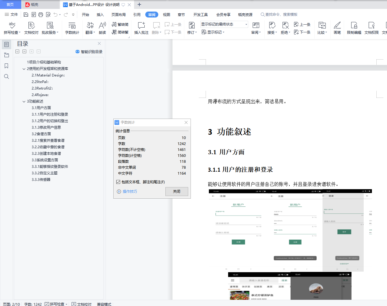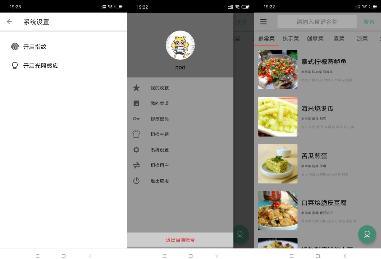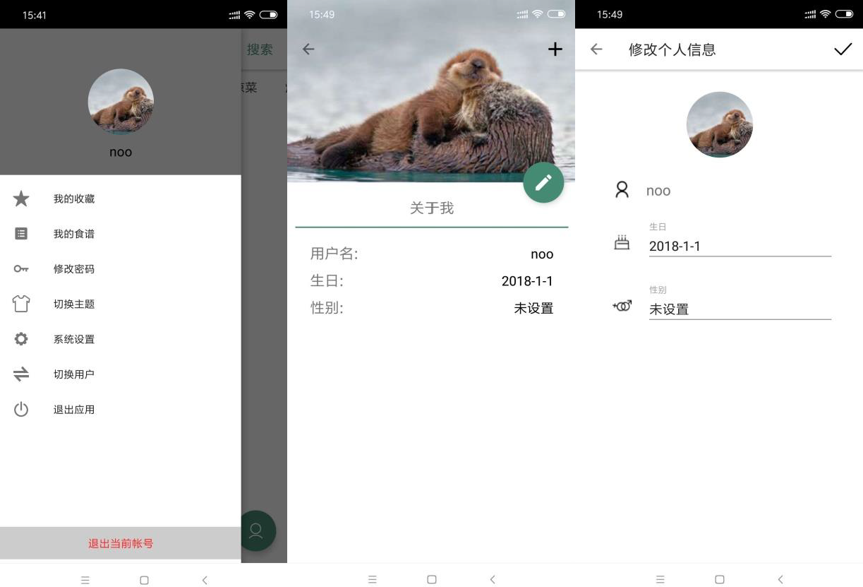 目录移动应用开发――食斋 11项目介绍和基础架构 32使用的开发框架和资源库 32.1Material Design: 32.2litePal: 32.3Retrofit2: 32.4Rxjava 33功能叙述 43.1用户方面 43.1.1用户的注册和登录 43.1.2用户的切换和登出 53.1.3修改用户信息 53.2食谱方面 63.2.1搜索并查看食谱 63.2.2收藏中意的食谱 83.2.3创建本地食谱 93.3系统设置方面 103.3.1能够指纹登录软件 103.3.2自定义主题 103.3.3传感器 111项目介绍和基础架构在现代生活中,越来越多的都市居民也开始崇尚居家做菜的理念。为了更好的服务这部分的群体,因此我们决定制作简洁方便的食谱应用为快节奏的都市工作者提供方便快捷的食谱汇总,能够更轻松的完成自己想要的菜品。并通过获取网络上的食谱资源来满足用户对选择范围的需求。用户可以通过应用来获取自己想要的食谱并进行收藏。项目采用了 MVP 的架构。presenter 通过 view 和 model 接口的引用,来调用具体实现类实现的方法,这么做的好处是,业务结构清晰,且将来更换实现类更为方便。