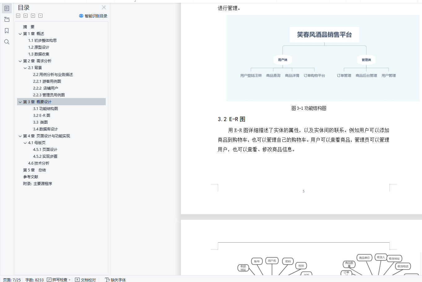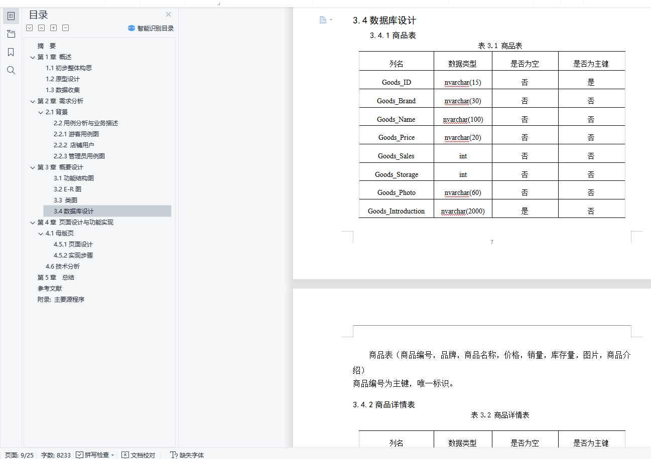 摘 要随着互联网的不断发展,物流业的发达,网购逐渐成为零售业的主阵地。在当下,人们的经济水平提高,对物质的需求丰富多样,人们对于购物的追求越来越高。酒不仅是传统的逢年过节、走亲访友、红白喜事必需品之一,而且也是大多数年轻人娱乐聚会、商务宴席的必需品。酒的需求有很大的市场前景,但受地域的限制和市场监管的不规范,酒的种类有限和真假难辨。因此我们网上销售平台,不仅可以让顾客更加方便地挑选到物美价廉的商品,满足用户的多样化需求,也可以帮助商家在线经营,销售商品。既达到节约商家经营成本,增加利润,又可以方便顾客的生活。在这次Web项目中,确定选题后,我选定店名,并使用ps制作了店铺logo。我先对网上商品销售平台进行分析后,用Xmind做了功能模块的思维导图,标明了不同功能之间的关系,写出不同功能所涉及的数据信息。从而在网上收集商品信息,设计数据表,录入部分商品信息。然后设计前端页面,在项目中统一风格使用了母版页。为了页面美观学习了前端javascript、css,完成了含有商品分类和个人中心的主菜单和推广宣传作用轮播图的制作。使用Datalist控件,编辑模板绑定数据源完成带有商品图片、名称、价格和销量的商品展示;使用商品ID传值的方法,完成了顾客熟悉的以点击商品图片和商品名称进入以表格形式显示的左商品图片,右商品信息和购买、加入购物车功能按钮,以及下方以选项卡可切换菜单形式切换更多商品信息和商品评论页;点击购买跳转到微信和支付宝二维码支付页面,点击完成付款会跳转到欢送语页面;以及对自己喜欢的商品可选择数量加入购物车表,可在我的购物车进行付款和删除操作。Web项目的基本功能已实现。用户可浏览商品,查找商品,对商品购买和加入购物车。用户还可以在个人中心修改自己的部分信息,删除已有订单。管理员可在可在商品管理页查找商品,浏览商品信息,更新商品信息以及上下架操作。关键词:需求分析;界面设计;功能流程;asp.net;sqlserver;目录第1章 概述 11.1初步整体构思 11.2原型设计 21.3数据收集 2第2章 需求分析 32.1背景 32.2用例分析与业务描述 32.2.1游客用例图 32.2.2 店铺用户 42.2.3管理员用例图 4第3章 概要设计 53.1功能结构图 53.2 E-R图 63.3 类图 73.4数据库设计 73.4.1商品表 73.4.2商品详情表 83.4.3购物车表 83.4.4用户表 9第4章 页面设计与功能实现 104.1母版页 104.1.1页面设计 104.1.2页面实现步骤 104.1.3功能实现思路步骤 114.1.4功能实现步骤 114.2主页 124.2.1页面设计 124.2.2页面实现步骤 124.3商品详情页 134.3.1页面设计 134.3.2页面实现步骤 144.4商品分类显示页面 154.4.1页面设计 154.4.2页面实现步骤 154.4.3功能实现思路步骤 154.5商品搜索显示页面 164.5.1页面设计 164.5.2实现步骤 164.6技术分析 17第5章 总结 18参考文献 19指导教师评语 20附录: 主要源程序 21