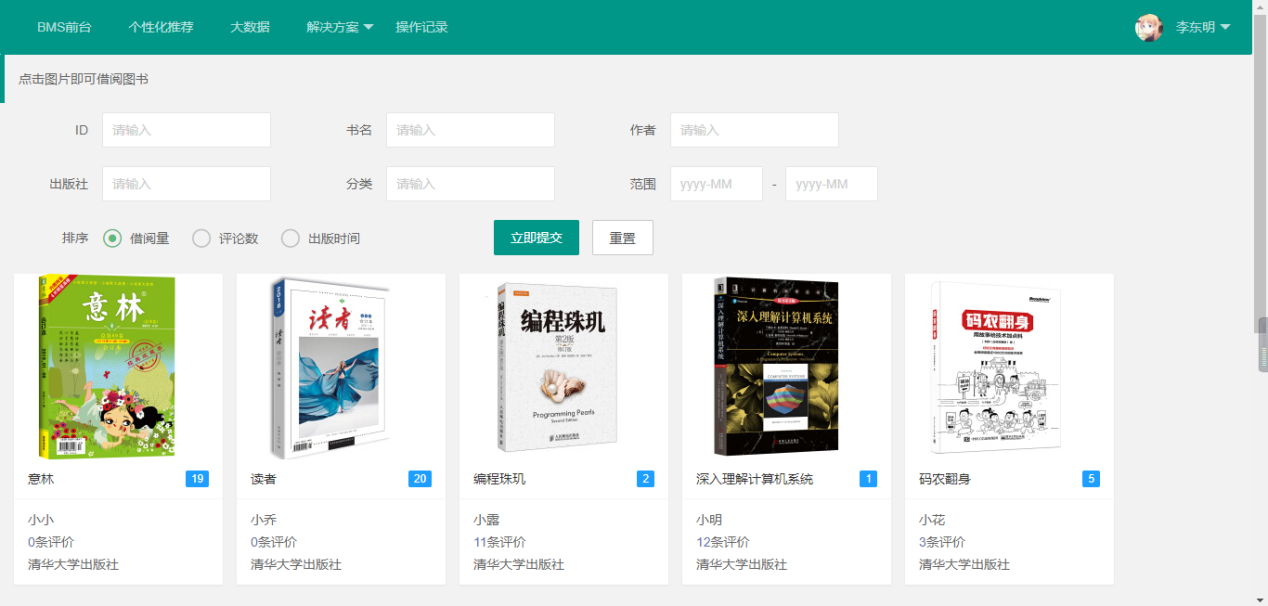 基于SpringBoot的个性化推荐的图书借阅管理系统前后台设计 毕业论文+项目源码及数据库文件