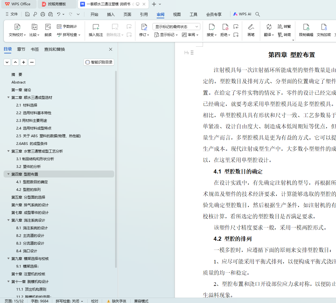 4.1 型腔数目的确定
