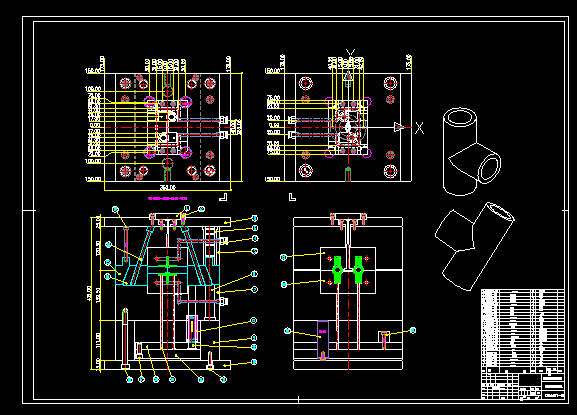 关键词:顺水三通;注塑模具;分模面;型腔构成;浇注系统;冷却系统;Pro/E三维图