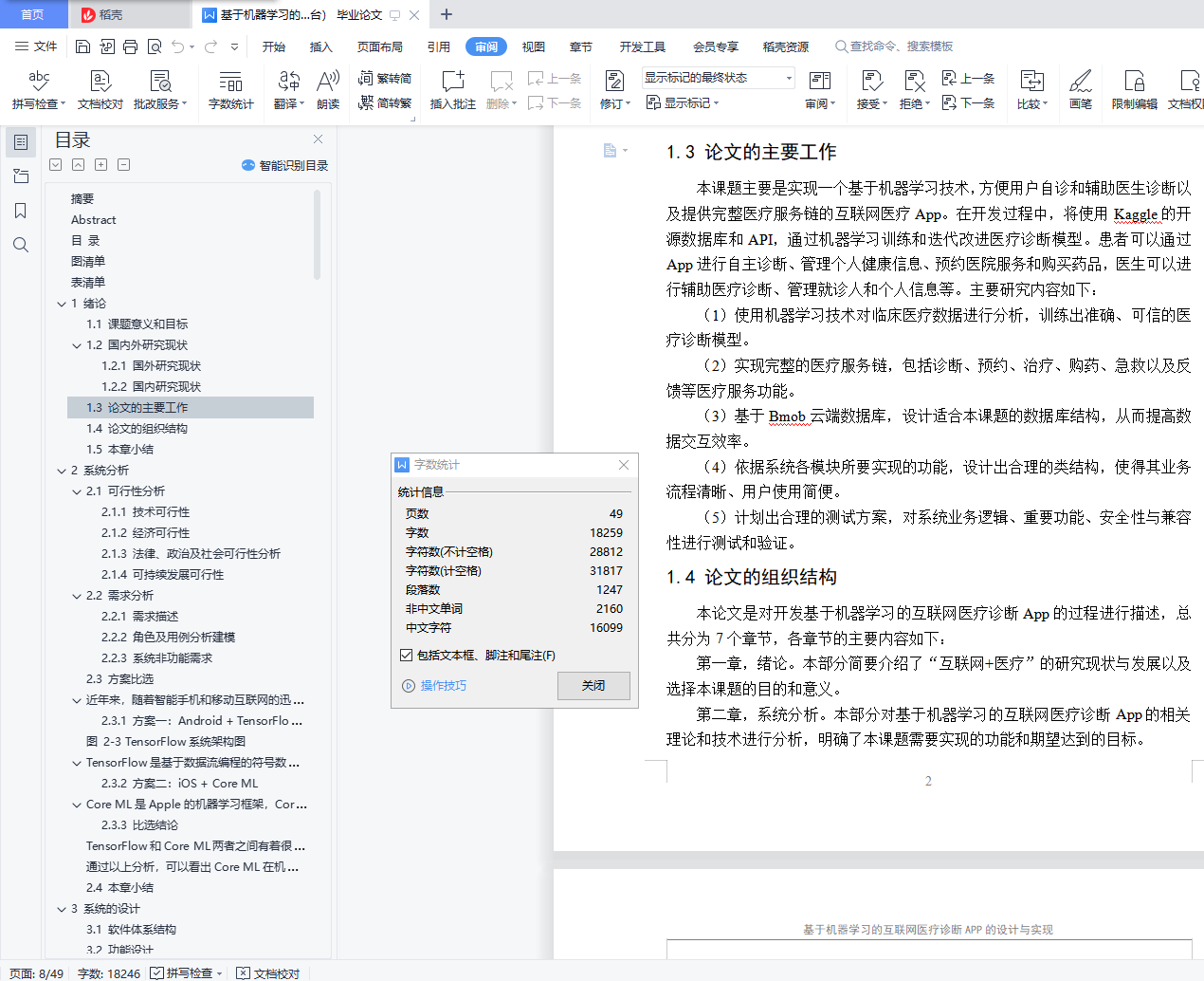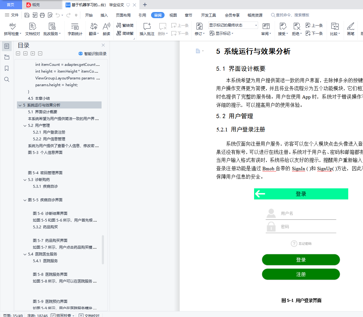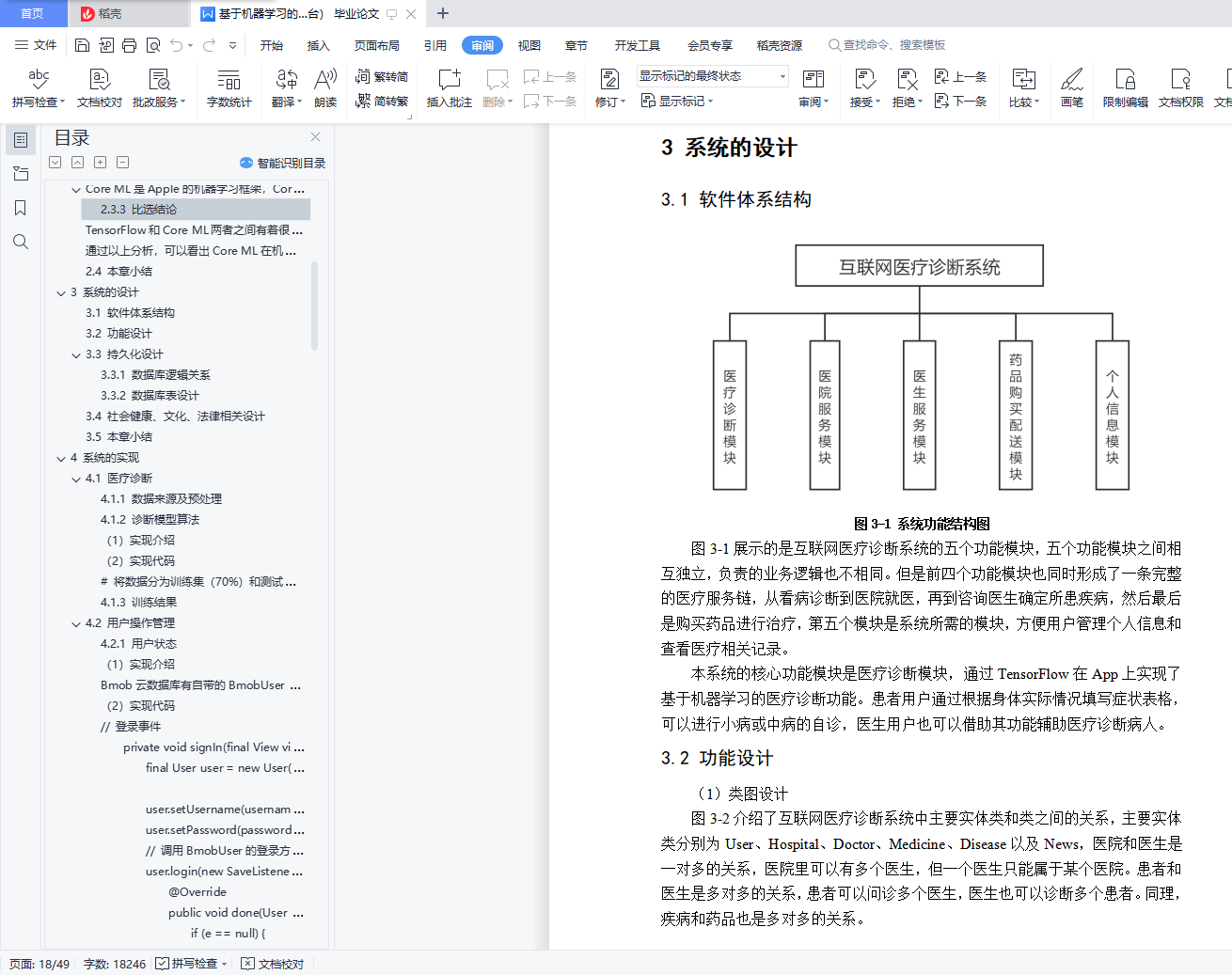 摘要如今随着科技、经济水平的不断发展,人们对健康的需求指数也越来越高。但目前,病患主要的问诊形式依旧是以前往目标医院进行咨询的传统模式为主。这种形式将极大的浪费患者的时间,同时,也正是这种医疗模式使得很多人小病不医致使最终酿成大病。目前普通医疗体系不能永远保持精确又快速的诊断,通过机器学习辅助医疗不仅能大幅削减成本, 其诊断结果几乎能实时获取。越来越多的情况下,通过机器学习进行的诊断能够比老练的医生提供更准确的诊断。开发一款基于机器学习的医疗APP,初衷在于解决看病难,看病浪费时间大的问题。无论在何地,通过APP就能进行医疗诊断,为患者提供相应的治疗方案、注意事项与健康生活习惯计划,为用户的小病进行定制化治疗,帮助用户早日恢复健康。若诊断判定病症较严重,将提醒患者尽早到医院就医,以保证安全性。本文采用基于TensorFlow的机器学习模型实现在线诊断,并且向用户提供完整的医疗服务链,包括预约、诊断、咨询、购药等功能。系统可以分为App端和Bmob管理后台,App端使用Android原生的Bottom Navigation Activity模板进行编写,后台采用Bmob云数据库对系统各表数据和用户权限进行管理。本系统实现了用户登录注册、管理预约就诊信息、购买药品及查看订单、医患交流、医院预约挂号、医院导航、浏览健康资讯、查询疾病、医院、药品等信息以及在线诊断等功能,大大提高了患者就诊效率,达到了系统设计的预期。关键词:互联网医疗 机器学习 自主诊断 服务链AbstractNowadays, with the continuous development of science and technology and economic level, people's demand index for health is getting higher and higher. But at present, the main form of patient consultation is still based on the traditional mode of consulting at the target hospital. This form will greatly waste the patient's time. At the same time, it is this medical model that makes many people suffer from minor illnesses and eventually become serious illnesses. At present, the general medical system cannot always maintain accurate and rapid diagnosis. The aid of medical learning through machine learning can not only significantly reduce costs, but also obtain the diagnosis results in real time.In more and more cases, diagnosis through machine learning can provide a more accurate diagnosis than experienced doctors. Develop a medical APP based on machine learning, the original intention is to solve the problem of difficulty in seeing a doctor and wasting time in seeing a doctor. No matter where you are, you can make medical diagnosis through APP, provide patients with corresponding treatment plans, precautions and healthy lifestyle plans, and customize treatment for users' minor illnesses to help users recover health as soon as possible. If the diagnosis determines that the condition is serious, the patient will be reminded to go to the hospital as soon as possible to ensure safety.This article uses a TensorFlow-based machine learning model to achieve online diagnosis and provide users with a complete medical service chain, including appointment, diagnosis, consultation, drug purchase and other functions. The system can be divided into App side and Bmob management background. App side uses Android's native Bottom Navigation Activity template to write. The background uses Bmob cloud database to manage the system table data and user permissions.This system realizes functions such as user login and registration, management of appointment information, purchase of medicines and order viewing, doctor-patient communication, hospital appointment registration, hospital navigation, browsing health information, querying diseases, hospitals, drugs and other information, and online diagnosis This improves the efficiency of patient visits and meets the expectations of system design.Key Words:Internet Medical Machine Learning Self-diagnosis Service Chain目 录摘要 IAbstract II目 录 III图清单 V表清单 VI1 绪论 11.1 课题意义和目标 11.2 国内外研究现状 11.3 论文的主要工作 21.4 论文的组织结构 21.5 本章小结 32 系统分析 42.1 可行性分析 42.2 需求分析 52.3 方案比选 102.3.1 方案一 102.3.2 方案二 112.4 本章小结 113 系统的设计 123.1 软件体系结构 123.2 功能设计 123.3 持久化设计 143.4 社会健康、文化、法律相关设计 173.5 本章小结 184 系统的实现 194.1 医疗诊断 194.2 用户操作管理 224.3 医院服务 244.4 医疗信息显示和查询 264.5 本章小结 285 系统运行与效果分析 295.1 界面设计概要 295.2 用户管理 295.3 诊断购药 305.4 医院医生服务 335.5 医疗信息管理 355.6 Bmob管理后台 375.7 本章小结 376 系统测试 376.1 测试方法 386.2 测试方案及计划 386.3 测试过程及结果分析 396.4 本章小结 397 总结与展望 417.1 总结 417.2 展望 41参考文献 42致谢 43