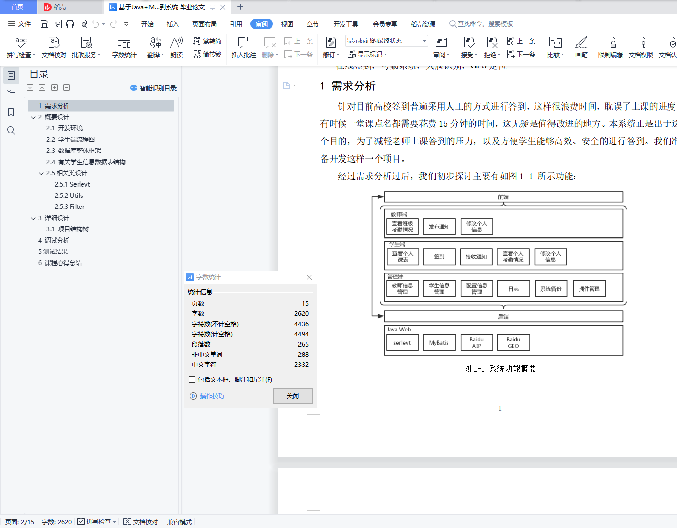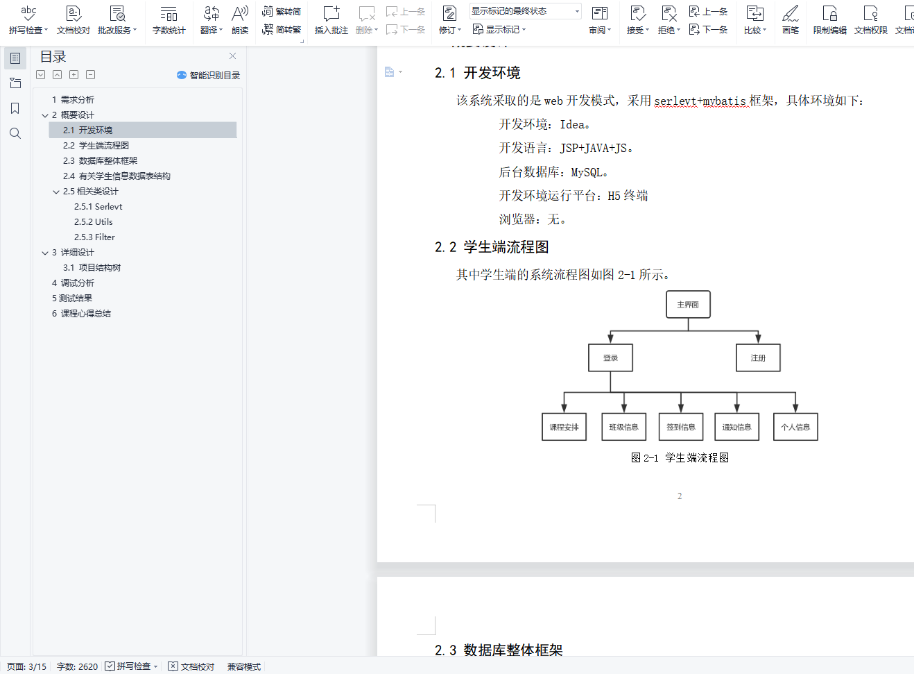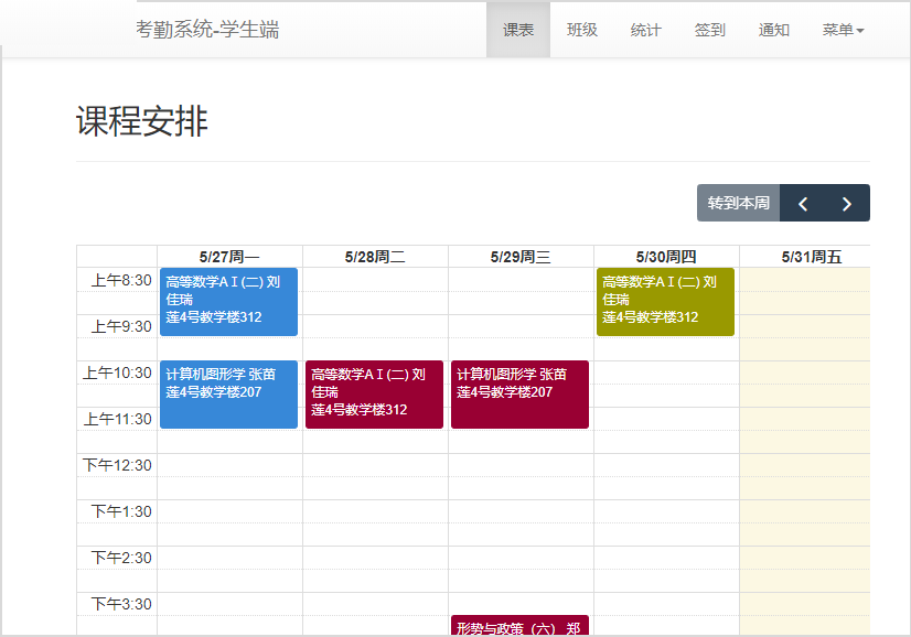 目录1 需求分析 12 概要设计 22.1 开发环境 22.2 学生端流程图 22.3 数据库整体框架 32.4 有关学生信息数据表结构 32.5相关类设计 43 详细设计 53.1 项目结构树 54 调试分析 65测试结果 7摘要本系统为了满足教师签到答到的需求而设计出这个系统。该系统主要通过GPS定位+人脸识别进行签到。签到过程使用websocket进行通信,并且实时保存在云端。此外还可通过wifi信号进行签到,需要在录入附近wifi Mac地址的前提下。在此之外,学生信息基于正方教务系统。使用此系统的用户可直接部署本系统,这让系统部署更加方便。本系统还实现了前后端分离,让系统运行更加高效流畅。因为bootstrap的响应式布局,这让系统在手机端也有较好显示效果。系统将从三个方面进行开发,它们分别是学生端、教师端、管理端,它们之间主要以JSON文本进行数据交换。在这个基础上,定义了一些数据格式,可以更方便的进行消息传递。人脸识别功能采用了百度的人脸识别系统,识别准确度非常高且免费。关键字在线签到,考勤系统,人脸识别,GPS定位