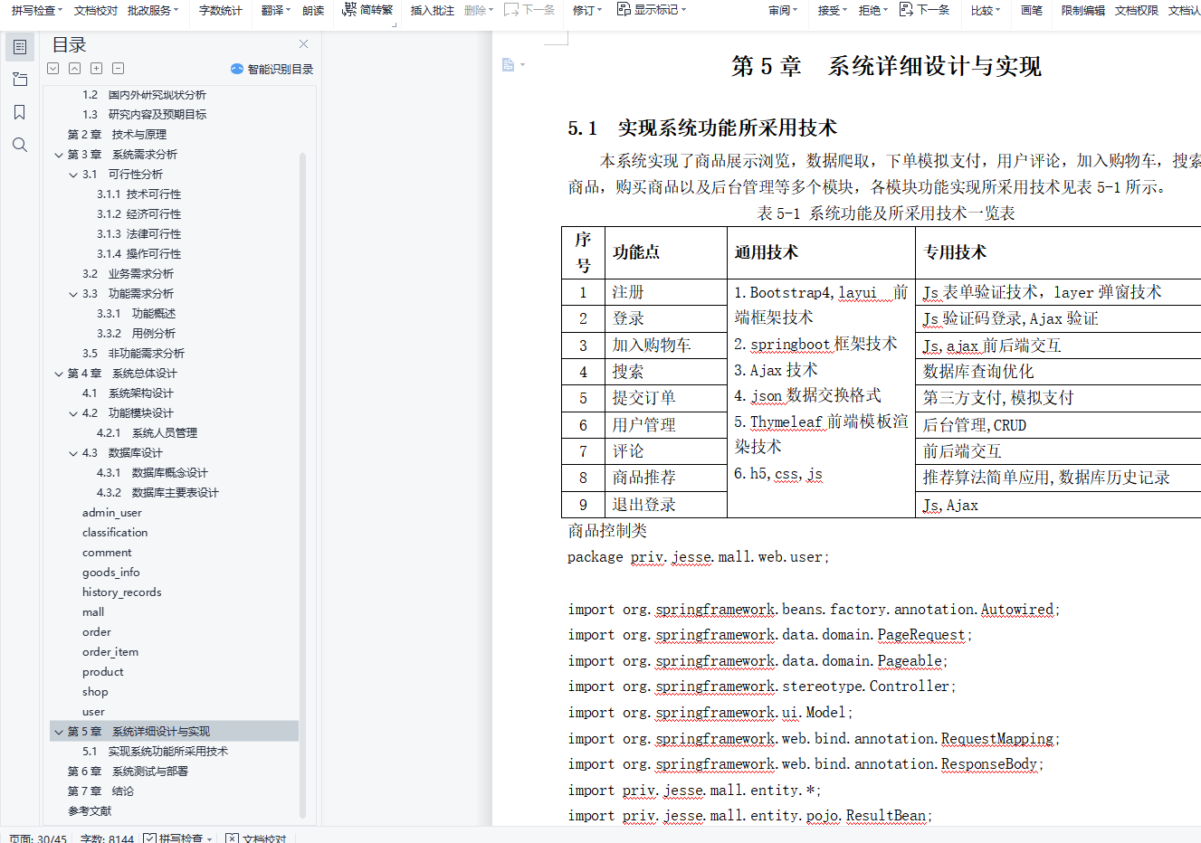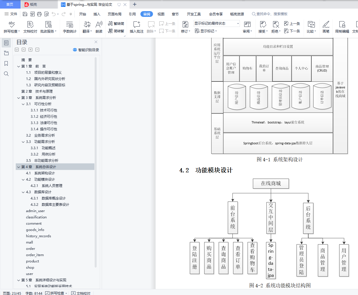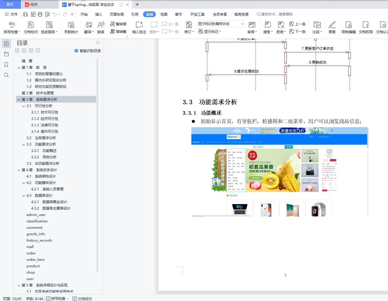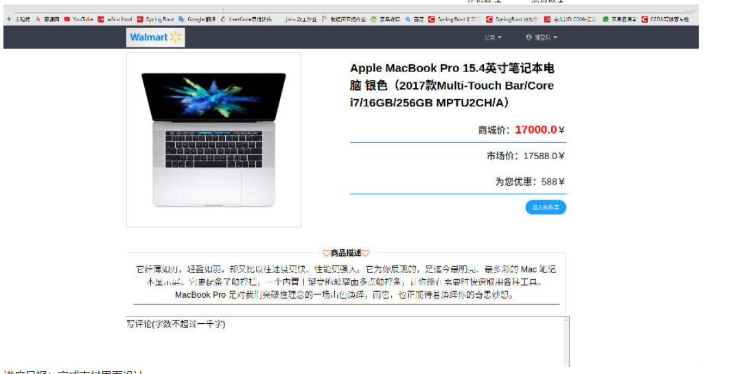 目 录摘 要 1Abstract 2第1章 前 言 31.1 项目的背景和意义 31.2 研究现状 31.3 研究内容及预期目标 3第2章 技术与原理 7第3章 系统需求分析 83.1 可行性分析 83.2 业务需求分析 83.3 功能需求分析 93.4 对象模型分析 113.5 非功能需求分析 11第4章 系统总体设计 134.1 系统架构设计 134.2 功能模块设计 134.3 数据库设计 154. 4 类设计 . . . . . . . . . . . . . . . . . . . . . . . . . . . . . . . . . . . . . . . . . . . . . . . . . . . . . . . . . . . . . . 15第5章 系统详细设计与实现 175.1 实现系统功能所采用技术 17第6章 系统测试与部署 21第7章 结论 22参考文献 23摘 要随着人们生活水平的提高,对物质要求也越来越高。人们网购的消费也逐年增长,所以电子商务发展十分迅速,网上商城应运而生,为人们的网上购物提供了好的平台。从长远来看,企业对消费者的电子商务将最终在电子商务领域占据重要地位。但是由于各种因素的制约,目前以及比较长的一段时间内,这个层次的业务还只能占比较小的比重。它是以互联网为主要服务提供手段,实现公众消费和提供服务,并保证与其相关的付款方式的电子化。它是随着万维网(WWW)的出现而迅速发展的,可以将其看作是一种电子化的零售。目前,在互联网网上遍布各种类型的商业中心,提供从鲜花、书籍到计算机、汽车等各种消费商品和服务。这种购物过程彻底改变了传统的面对面交易和一手交钱一手交货及面谈等购物方式,这是一种新的,很有效的电子购物方式。当然,要想放心大胆地进行电子购物活动,还需要非常有效的电子商务保密系统。本文运用建模工具(Enterprise Architect)进行了系统的需求分析和建模,并在此基础上,对系统架构、数据库、模块功能和系统界面进行了设计,基于Javaweb设计并实现了系统。系统使用MySql作为后台的数据管理系统,后端框架采用最新的springboot,而在前端使用JDBC技术实现数据访问,并且通过Themeleaf模板渲染页面。根据消费者网上购物实际情况,系统设计了包括商品展示浏览,数据爬取,下单模拟支付,用户评论,加入购物车,搜索商品,购买商品以及后台管理等多个模块,并对模块的大部分功能进行了实现。此系统试运行时取得了很好的效果,具有比较高的应用价值。关键词:电子商城;Javaweb;MySql;JDBC;Thymeleaf;springboot.AbstractWith the improvement of people's living standards, the material requirements are getting higher and higher. The consumption of online shopping has also increased year by year, so the development of e-commerce is very rapid, and online shopping malls have emerged as the times require, providing a good platform for people to shop online. In the long run, enterprise-to-consumer e-commerce will eventually occupy an important position in the field of e-commerce. However, due to various factors, at this and for a long period of time, this level of business can only account for a relatively small proportion. It provides the means of providing the Internet as the main service, realizing public consumption and providing services, and guaranteeing the electronic payment methods associated with it. It has grown rapidly with the advent of the World Wide Web (WWW) and can be seen as an electronic retail. At present, there are various types of commercial centers on the Internet, providing everything from flowers and books to computers and automobiles. This kind of shopping process has completely changed the traditional face-to-face transaction and the one-handed delivery and face-to-face shopping methods, which is a new and effective way of e-shopping. Of course, in order to be confident in e-shopping activities, you need a very effective e-commerce security system. In this paper, the modeling analysis tool (Enterprise Architect) is used to analyze and model the system requirements. Based on this, the system architecture, database, module functions and system interface are designed. The system is designed and implemented based on Javaweb. The system uses MySql as the back-end data management system. The back-end framework uses the latest springboot, and uses JDBC technology to implement data access in the front-end, and renders the page through the Themeleaf template. According to the actual situation of consumers' online shopping, the system has designed multiple modules including product display browsing, data crawling, order simulation payment, user review, adding shopping cart, searching for goods, purchasing goods and background management, and the module is large. Some features have been implemented.This system has achieved good results during trial operation and has a relatively high application value.Key words: Electronic Mall; Javaweb;MySql;JDBC;Thymeleaf;springboot;DataBase.