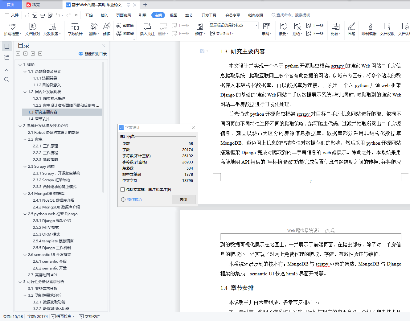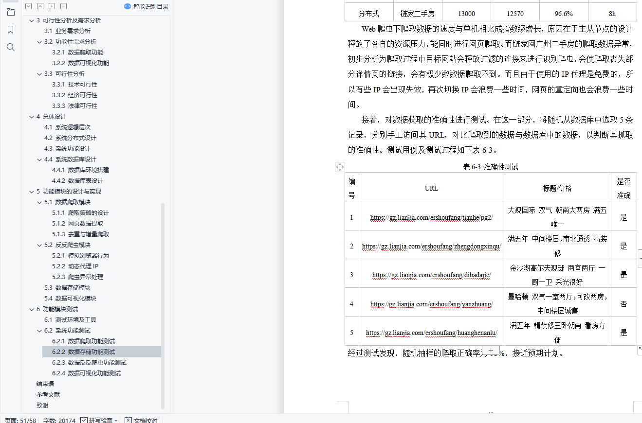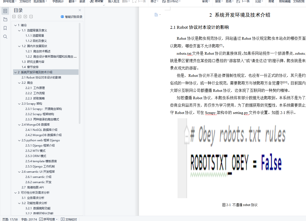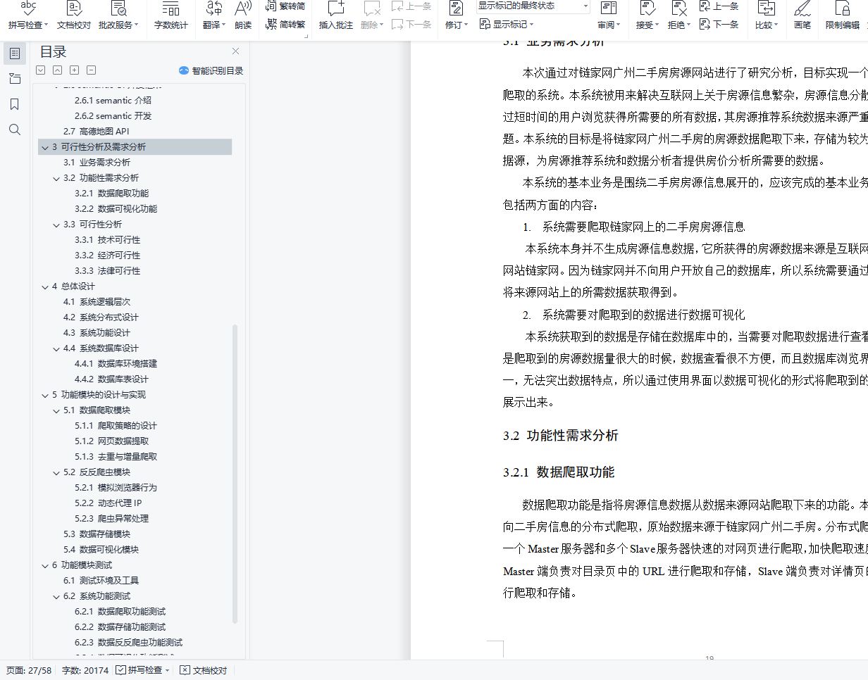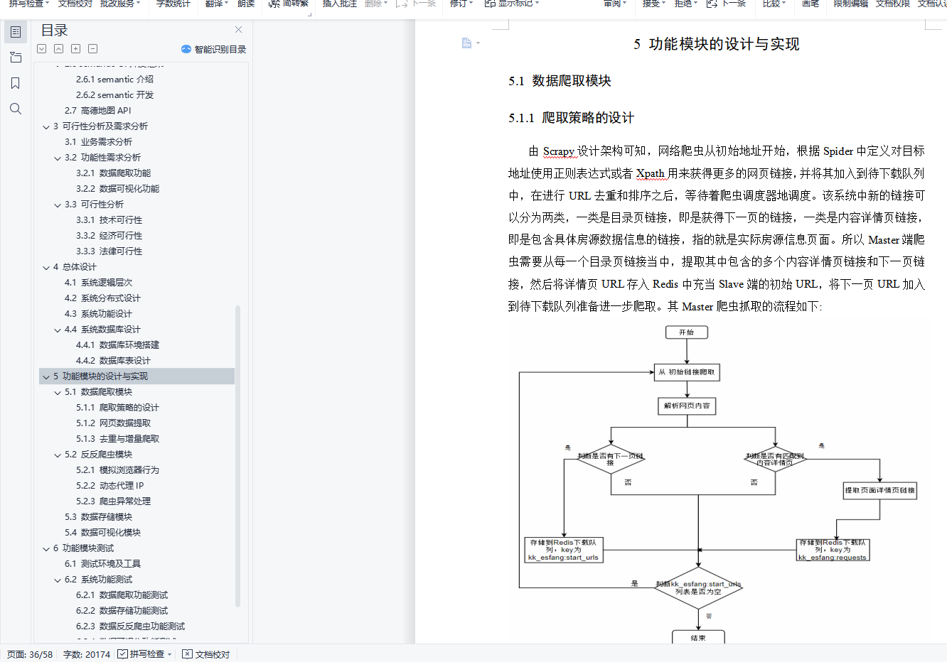 摘 要时代在进步,科技在进步,互联网改变了世界,在互联网时代,各行各业的人们都在寻求增长点,人们的日常生活越来越离不开互联网。以二手房为例,线下二手房行业持续挣扎,越来越多的年轻人在网上选择房屋。然而,在互联网信息和海量数据源混合的情况下,如何提升二手房的用户体验是一个值得探讨的问题。我国二手房的庞大人口使得在互联网上寻找合适的二手房成为人们不得不面对的问题。互联网上有很多提供二手房信息的网站,用户在找房子的时候,往往会因为习惯等原因在一个平台上找到。笔者认为,一个在生活中具有实际意义的软件系统才算是一个好的系统,本系统结合以上背景,实现了一个基于网络爬虫技术的链家网站二手房价爬取分析系统。首先,它使用Python开源爬虫框架scrapy对链家网站的二手房价格信息网站进行爬取,根据不同网页的不同特点选择不同的爬取策略,编写爬虫代码,进行必要的过滤和提取二手房信息,是一个建设时的住房信息数据库。数据库部分采用非结构化数据库MongoDB,避免网上信息的非结构化特性对数据存储的影响。然后使用Python开源网站搭建Django框架,完成爬取的二手房列表的网页端展示。关键词:二手房;Web爬虫;Python;Scrapy;可视化AbstractThe Times are progressing, science and technology is progressing, and the Internet has changed the world. In the Internet era, people from all walks of life are seeking growth points, and people's daily life is becoming more and more inseparable from the Internet.Take second-hand housing as an example, the offline second-hand housing industry continues to struggle, and more and more young people choose houses on the Internet.However, in the case of mixed Internet information and massive data sources, how to improve the user experience of second-hand housing is a problem worth discussing.The huge population of second-hand housing in China makes the Internet to find the right second-hand housing people have to face.There are many websites providing second-hand housing information on the Internet. When users are looking for a house, they often find it on a platform because of habits and other reasons.The author believes that a software system with practical significance in life is a good system. This system combined with the above background, and the realization of a second-hand housing price climbing analysis system of HOME LINK website based on network crawler technology.First, it uses Python open source crawler framework scrapy to climb the HOME hand housing price information website of HOME LINK website, choose different crawling strategies according to the different characteristics of different web pages, write crawler code, carry out necessary filtering and extract second-hand housing information, is a housing information database at the time of construction.The database part uses unstructured database MongoDB, to avoid the impact of unstructured characteristics of online information on data storage.Then use the Python open source website to build the Django framework, and complete the web-end display of the crawled second-hand housing list.Keywords: second-hand house; Web reptile; Python;Scrapy; visualization目 录1 绪论 11.1 选题背景及意义 11.1.1选题背景 11.1.2目的及意义 11.2 国内外发展现状 21.2.1 爬虫技术概述 21.2.2 爬虫设计者所面临问题和反爬虫技术的现状 41.3 研究主要内容 71.4 章节安排 82 系统开发环境及技术介绍 92.1 Robot协议对本设计的影响 92.2 爬虫 102.2.1 工作原理 102.2.2 工作流程 102.2.3 抓取策略 102.3 Scrapy架构 112.3.1 Scrapy:开源爬虫架构 112.3.2 Scrapy框架结构 112.3.3 两种继承的爬虫模式 132.4 MongoDB数据库 142.4.1 NoSQL数据库介绍 142.4.2 MongoDB数据库介绍 152.5 python web框架Django 152.5.1 Django框架介绍 152.5.2 MTV模式 152.5.3 ORM模式 152.5.4 template模板语言 162.5.5 Django工作机制 162.6 semantic UI开发框架 172.6.1 semantic介绍 172.6.2 semantic开发 172.7 高德地图API 173 可行性分析及需求分析 193.1 业务需求分析 193.2 功能性需求分析 193.2.1 数据爬取功能 193.2.2 数据可视化功能 203.3 可行性分析 213.3.1 技术可行性 213.3.2 经济可行性 213.3.3 法律可行性 224 总体设计 234.1 系统逻辑层次 234.2 系统分布式设计 244.3 系统功能设计 254.4 系统数据库设计 264.4.1 数据库环境搭建 264.4.2 数据库表设计 275 功能模块的设计与实现 285.1 数据爬取模块 285.1.1 爬取策略的设计 285.1.2 网页数据提取 305.1.3 去重与增量爬取 325.2 反反爬虫模块 335.2.1 模拟浏览器行为 335.2.2 动态代理IP 355.2.3 爬虫异常处理 365.3 数据存储模块 375.4 数据可视化模块 386 功能模块测试 426.1 测试环境及工具 426.2 系统功能测试 426.2.1 数据爬取功能测试 426.2.2 数据存储功能测试 446.2.3 数据反反爬虫功能测试 466.2.4 数据可视化功能测试 47结束语 48参考文献 49致谢 50