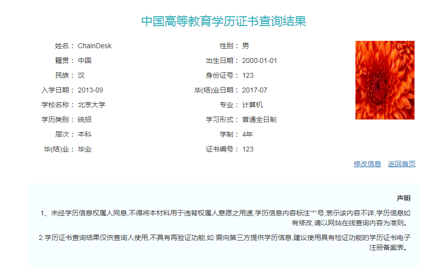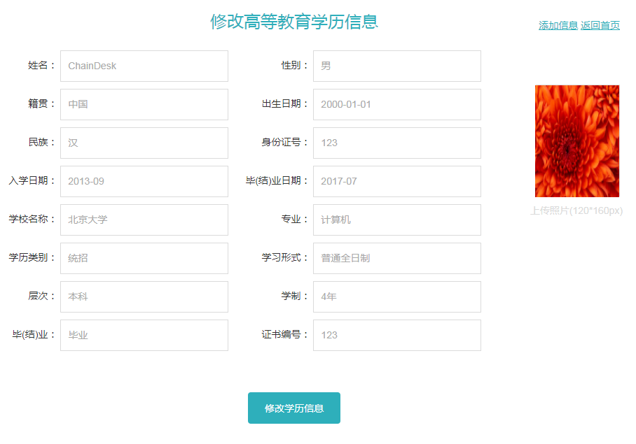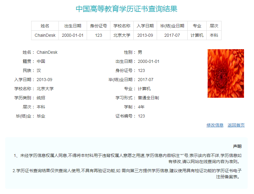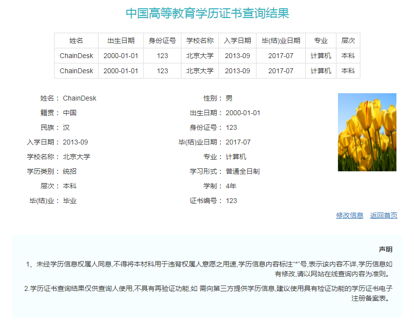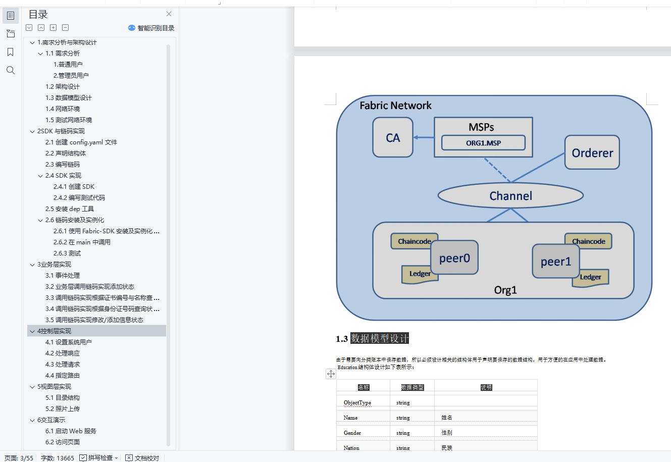 目录1. 需求分析与架构设计 11.1 需求分析 11. 普通用户 22. 管理员用户 21.2 架构设计 21.3 数据模型设计 41.4 网络环境 51.5 测试网络环境 82 SDK与链码实现 102.1 创建 config.yaml 文件 102.2 声明结构体 152.3 编写链码 162.4 SDK实现 212.4.1 创建SDK 212.4.2 编写测试代码 222.5 安装dep工具 232.6 链码安装及实例化 272.6.1 使用Fabric-SDK安装及实例化链码 272.6.2 在main中调用 282.6.3 测试 283 业务层实现 293.1 事件处理 293.2 业务层调用链码实现添加状态 303.3 调用链码实现根据证书编号与名称查询状态 333.4 调用链码实现根据身份证号码查询状态 343.5 调用链码实现修改/添加信息状态 354 控制层实现 394.1 设置系统用户 394.2 处理响应 404.3 处理请求 404.4 指定路由 445 视图层实现 455.1 目录结构 455.2 照片上传 466 交互演示 486.1 启动Web服务 486.2 访问页面 491.需求分析与架构设计我们要基于 原生Fabric-SDK-Go 实现一个简单的学历征信系统(web项目),状态数据库使用 CouchDB 来实现。1.1 需求分析现在是一个信息化的高科技时代,许许多多的企业必须紧跟时代步伐,不断创新,才能发展壮大;而企业的发展必然离不开人才队伍的建设,也可以说创新是企业发展的动力,而人才却是企业发展的根本,所以现在各企业对于人才队伍建设十分看重,而对于人才的素质及受教育情况的要求更是重中之重。对学历信息的查询,要么成本较高,要么比较麻烦,甚至还有一些假冒网站让人防不胜防;传统应用是将数据保存在数据库中来实现,但是现在出现的数据库由于故障或者被删、被黑造成的数据丢失的情况更是屡见不鲜,所以传统数据库并不能真正意义上确保数据的完整性及安全性。基于这些情况,我们设计并开发了一个 基于区块链技术的实现的学历信息征信系统 ,实现了在线对学历信息的查询功能,由于区块链技术本身的特点,无须考虑数据被破坏的问题,而且杜绝了对于信息造假的情况,保证了学历信息的真实性。由于篇幅原因,我们对学历信息征信系统的应用场景进行修改及简化,实现的业务逻辑包括添加信息、修改信息、查询信息、查询详情信息等操作,实际情况下的的业务逻辑需要根据实际需求场景做出相应的调整。由于系统需要保证人才受教育情况真实性,所以对于系统的用户而言,不可能由用户自己添加相应的学历信息,而是由具有一定权限的用户来完成添加或修改的功能。但普通用户可以通过系统溯源功能来确定信息的真伪。所以我们将系统用户的使用角色分为两种:1.普通用户2.管理员用户普通用户具有对数据的查询功能 ,但实现查询之前必须经过登录认证:用户登录:系统只针对合法用户进行授权使用,所以用户必须先进行登录才能完成相应的功能。查询实现:查询分为两种方式实现根据证书编号与姓名查询:根据用户输入的证书编号与姓名进行查询。根据身份证号码查询:根据用户输入指定的身份证号码进行查询,此功能可以实现溯源。管理员用户除具有普通用户的功能之外,额外添加了两个功能:添加信息:可以向系统中添加新的学历信息。修改信息:针对已存在的学历信息进行修改。