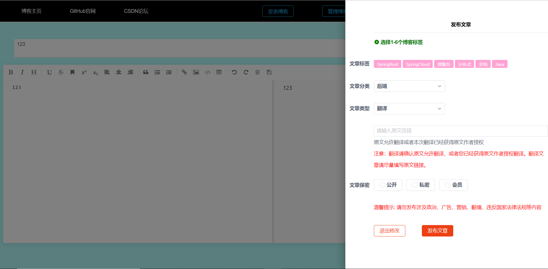 基于Vue和微服务框架博客网站系统设计与实现 项目源码及数据库文件+毕业论文