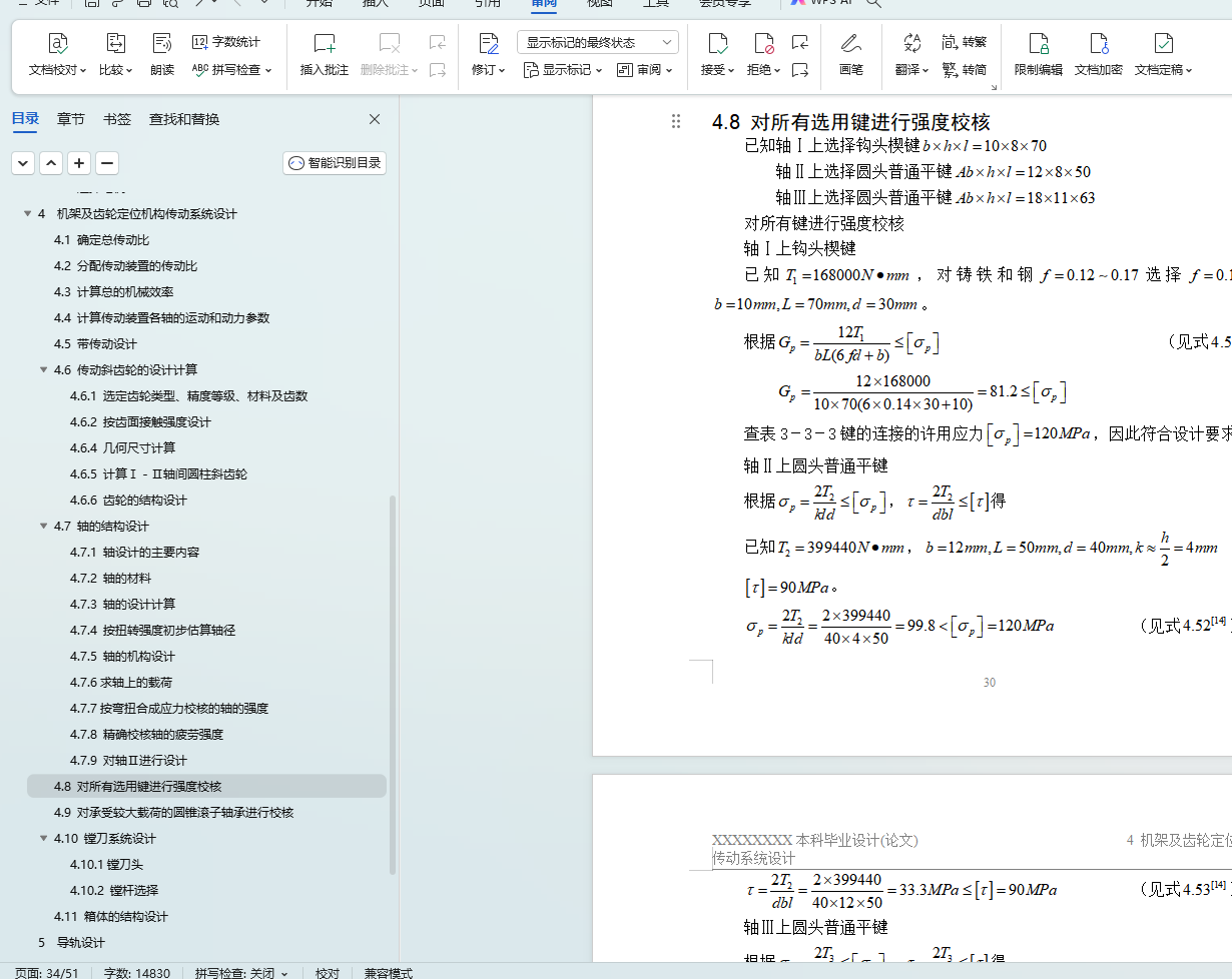 4.8 对所有选用键进行强度校核