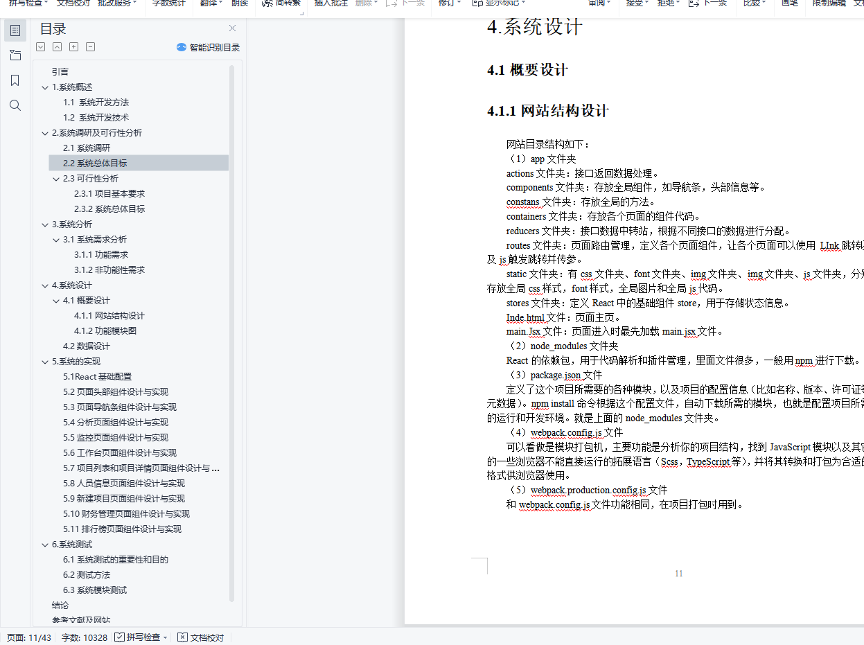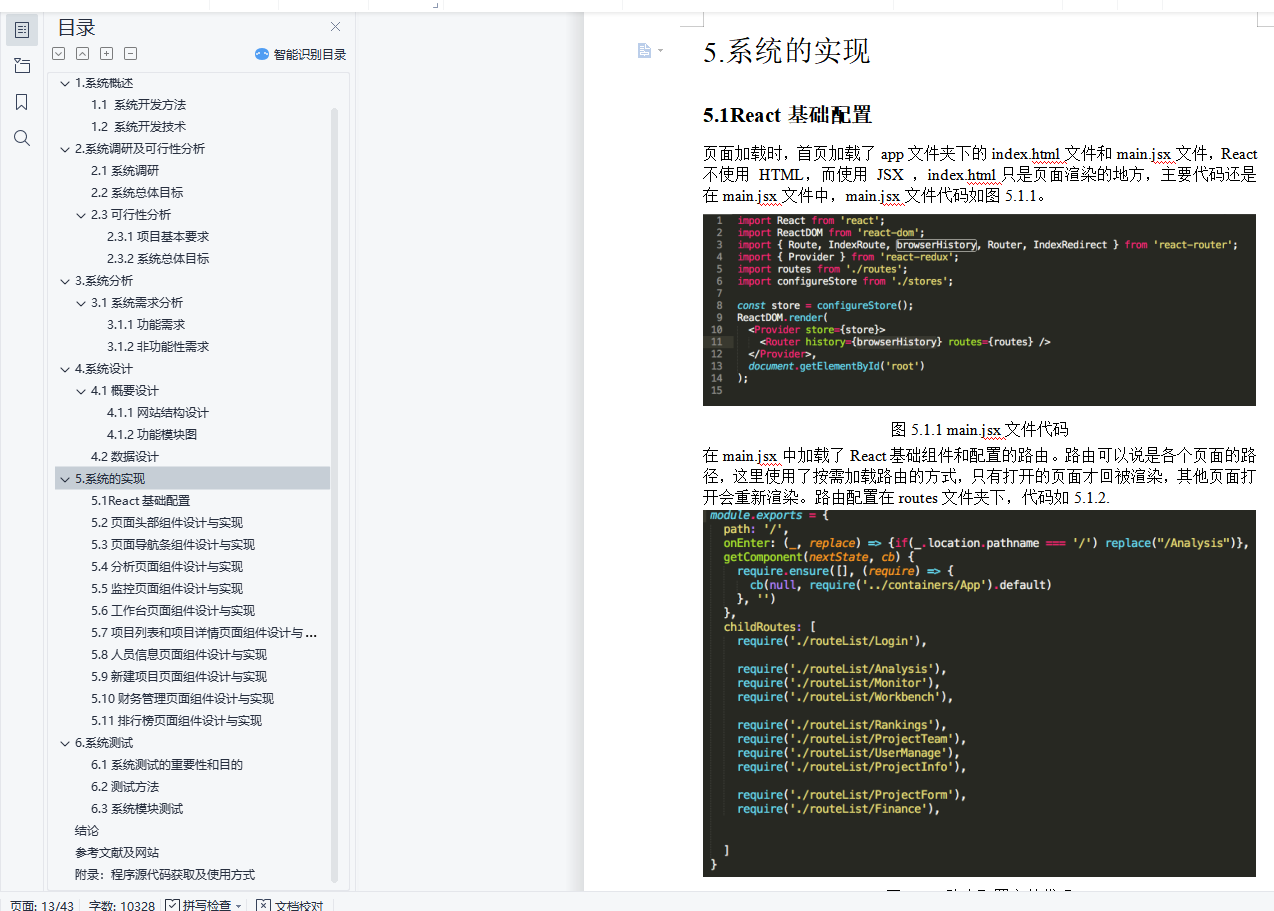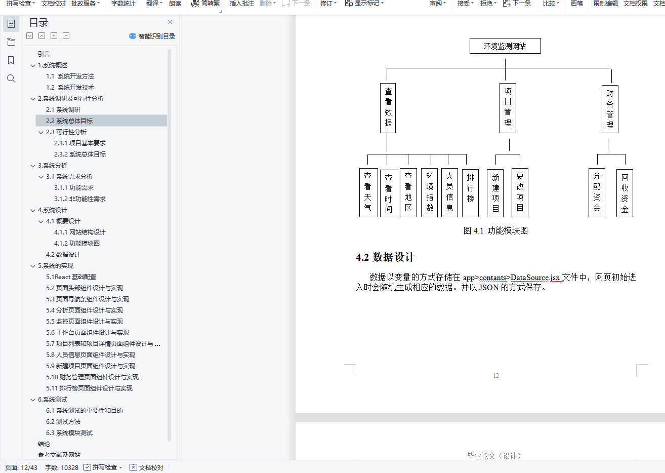 摘 要: 生态环境是人类生存的物质基础,也是经济系统运行的基础,生态环境问题是由于人类长期的生产和生活等社会经济行为所引起的生态环境破坏而反作用于人类社会经济生活的不良影响,其实质是经济发展与环境保护、人与自然关系的失调。目前,环境问题已成为全球社会性的问题。如何解决好这一问题,关系到人类社会的生存。因此,采取有效的治理措施,对促进社会经济持续、健康发展具有十分重要的意义。所以,本网站的作用就是致力于监控生态环境并处理污染,主要针对空气、水质、土质和污染四个方面,并根据这四个方面来改善周围环境。本文主要阐述的是利用React+antd框架来搭建一个环境监测管理网站,包括网页制作,数据联调和功能说明等。关键词:React;antd;管理网站; B/S结构;环境;目录引言 41.系统概述 51.1 系统开发方法 51.2 系统开发技术 52.系统调研及可行性分析 82.1系统调研 82.2系统总体目标 92.3可行性分析 102.3.1项目基本要求 102.3.2系统总体目标 103.系统分析 113.1系统需求分析 113.1.1功能需求 113.1.2非功能性需求 114.系统设计 124.1概要设计 124.1.1网站结构设计 124.1.2功能模块图 134.2数据设计 135.系统的实现 145.1React基础配置 145.2页面头部组件设计与实现 175.3页面导航条组件设计与实现 185.4分析页面组件设计与实现 225.5监控页面组件设计与实现 255.6工作台页面组件设计与实现 285.7项目列表和项目详情页面组件设计与实现 305.8人员信息页面组件设计与实现 335.9新建项目页面组件设计与实现 335.10财务管理页面组件设计与实现 375.11排行榜页面组件设计与实现 386.系统测试 406.1系统测试的重要性和目的 406.2测试方法 406.3系统模块测试 41结论 42参考文献及网站 43附录:程序源代码获取及使用方式 44