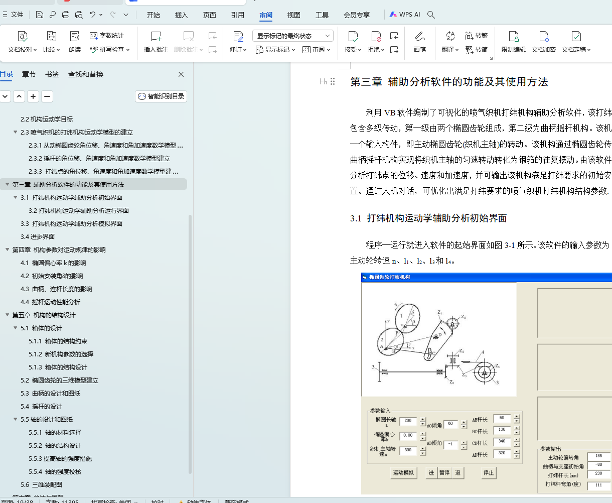 本文综述了国内外织机发展的现状与打纬机构的研究概况,并创新性提出了一种喷气织机打纬机构,以改进织机的打纬性能。为深入探究该机构的运动特性,本文建立了其运动学数学模型,并详细列出了位移、速度和加速度方程。借助Visual Basic 6.0软件,编制了辅助分析程序,从而绘制出打纬机构的运动学特性曲线。此外,本文还探讨了机构参数对运动规律的影响,通过设定机构运动目标,并结合实际设计时的结构限制,利用VB6.0编写的可视化软件进行了人机交互对话优化,最终得到了一组最佳参数。基于这些参数,本文还利用Pro/E软件进行了打纬机构的三维建模与仿真,并借助CAD绘制了零件图和装配图,为实际生产提供了有力支持。