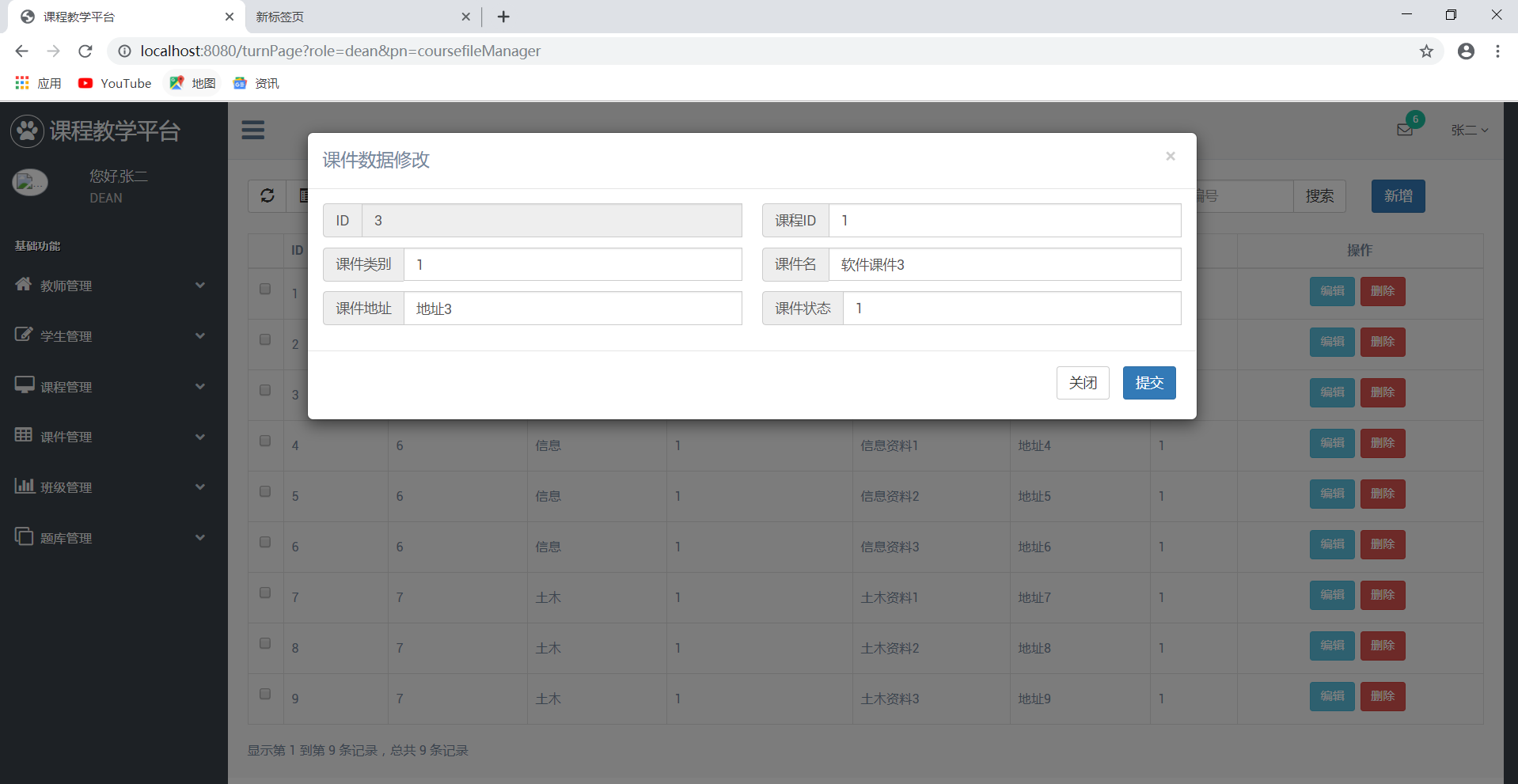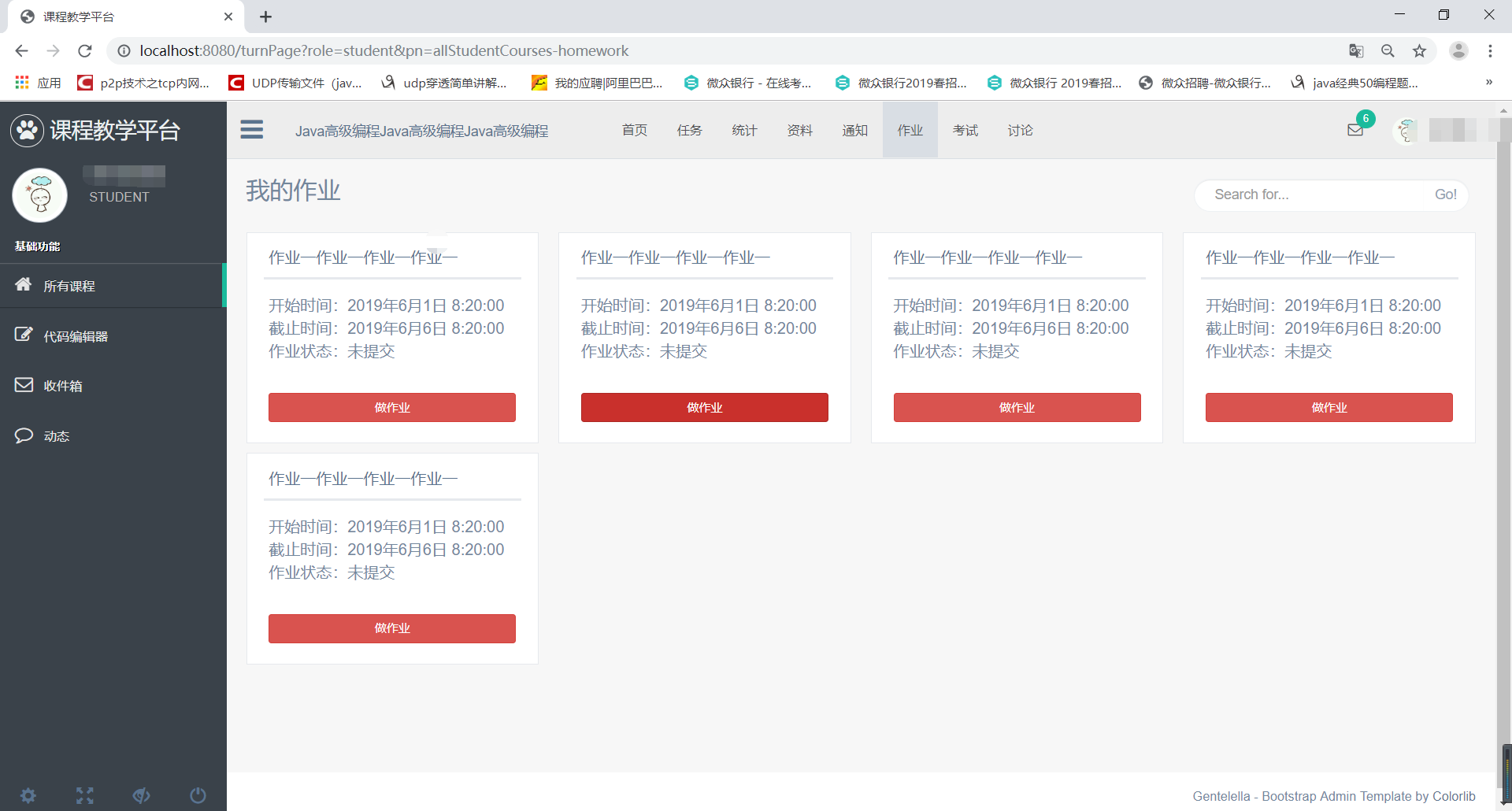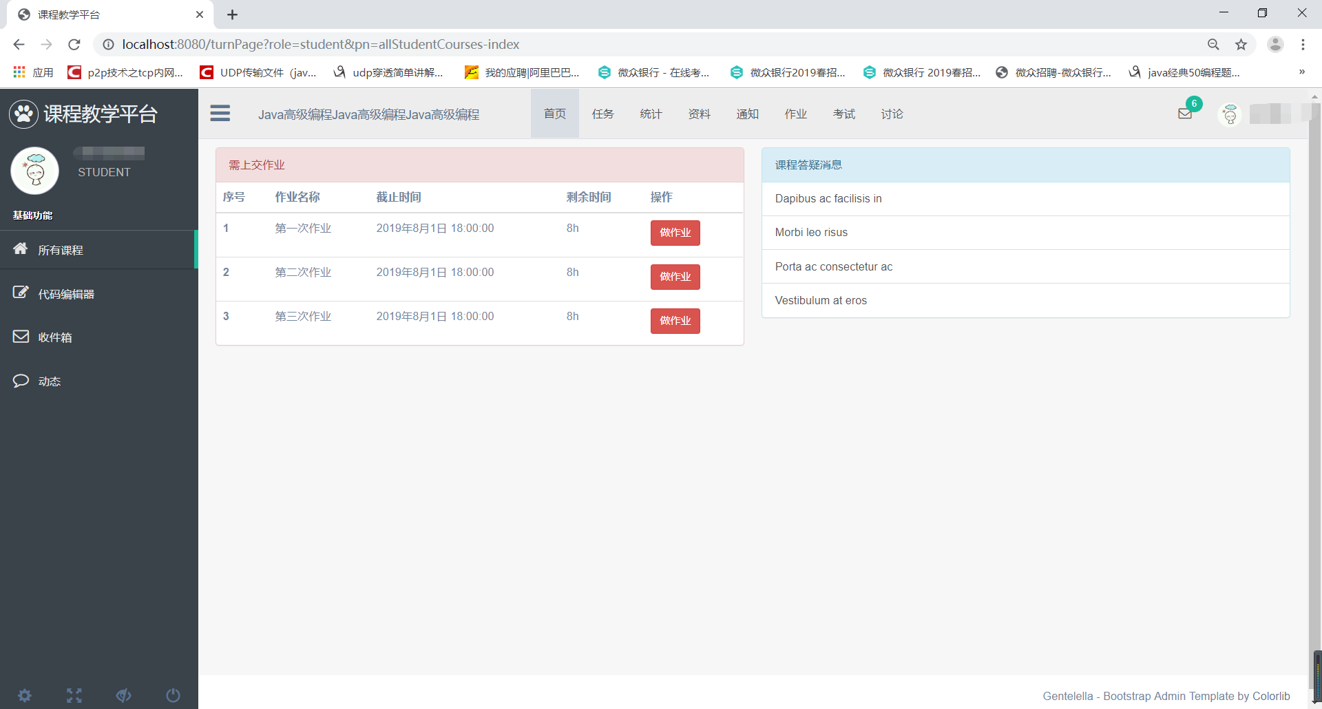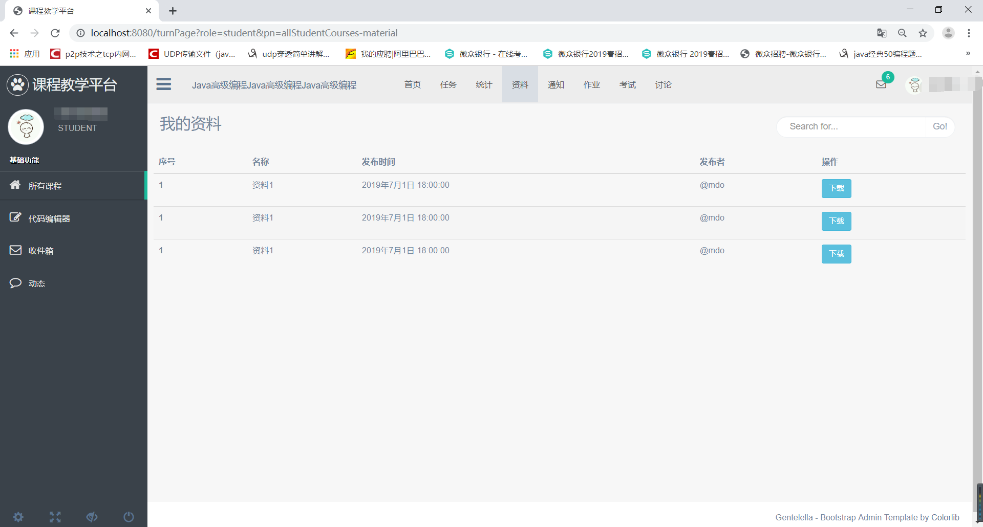 目录1 系统分析 11.1 需求概述 11.2 用例分析与描述 11.2.1 用例分析 11.2.2 用例描述 52 系统设计 82.1 多层结构设计 92.2 问题域设计 102.2.1 域模型设计 102.2.2 Service接口设计 102.3 持久化设计 252.3.1 数据库设计 252.3.2 数据访问设计 312.4 界面设计 322.4.1 页面链接关系 322.4.2 页面设计 381 系统分析1.1 需求概述设计此系统的目的在于为教师和学生提供一个交互的平台,相对于传统的教学方式,该系统为师生提供线上的教学演示,同时可以发布作业,练习,资料等。传统的教学方式需要学生教师面对面教学,而该平台可以提供师生线上点对点进行教学,不限任何时间,任何地点。同时传统的教学方式批改作业时需要手动批改,该平台提供自动评分机制,对:选择题,填空题,判断题,编程题自动评分,而对于简答题还是需要自己手动评分。这极大节约了教师的时间,除此之外,还提供数据分析,学生成绩统计,平均分,知识点掌握程度雷达图等。该系统还可以上传各种教学资料,如实验资料,课程PPT,教学资料等。系统提供师生答疑功能,学生可以在线咨询学习中遇到的各种问题,也可以在课程讨论组中进行交流。同时系统保证数据的安全性。1.2 用例分析与描述1.2.1 用例分析本系统主要有学生,教师,管理员,系主任这四个角色。学生登陆教学平台修改个人介绍修改密码找回密码注册账号注销自己的账号选择自己所学的课程提交老师发布的作业查看老师批改的情况下载老师发布的资料下载学习课件查看通知通过上述分析,可得到学生的用例图如下: