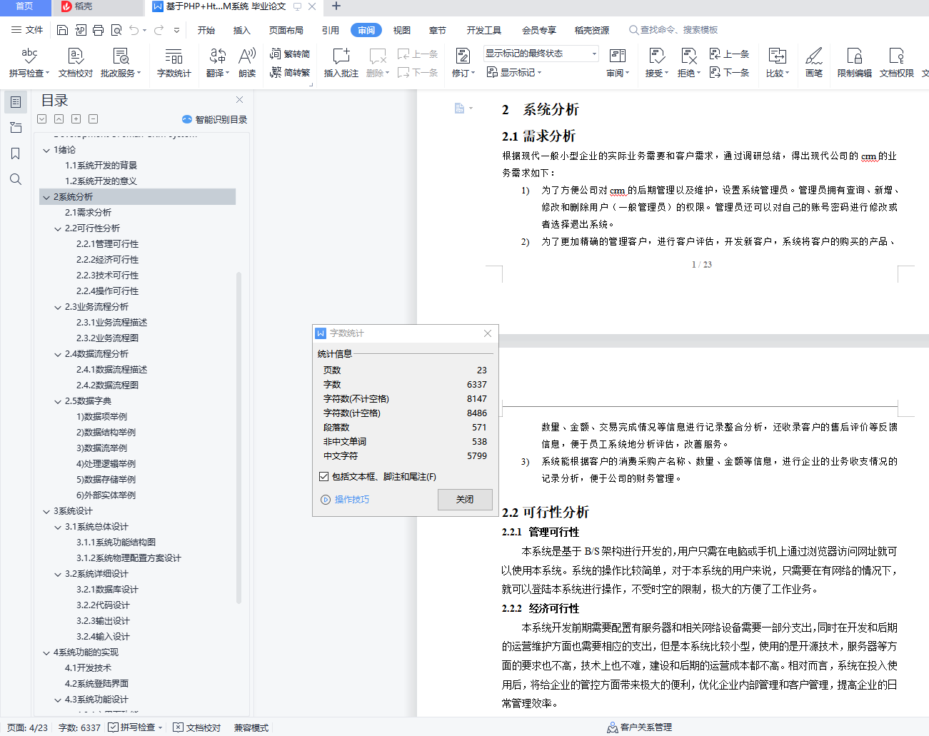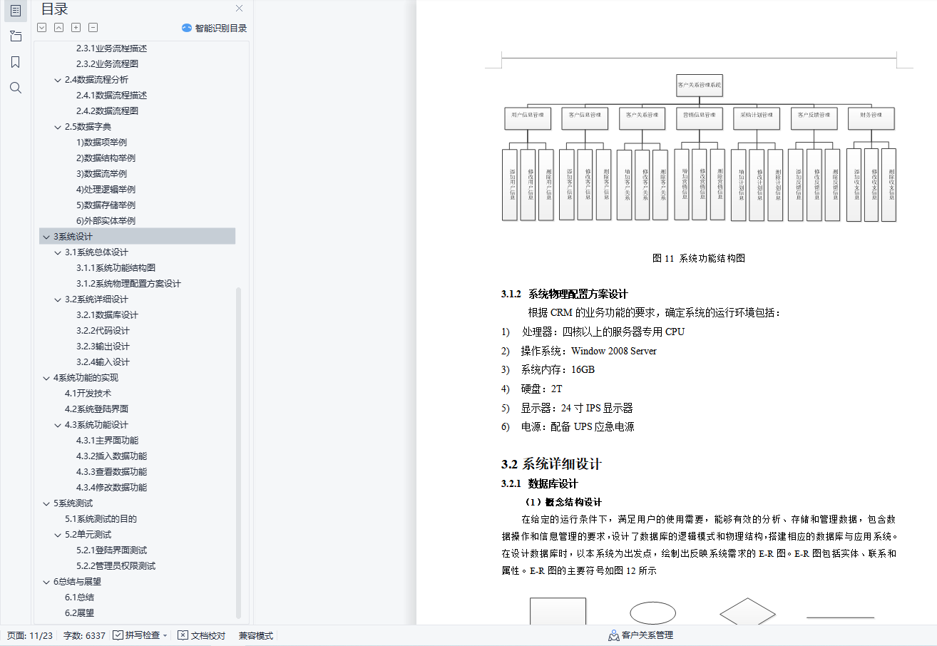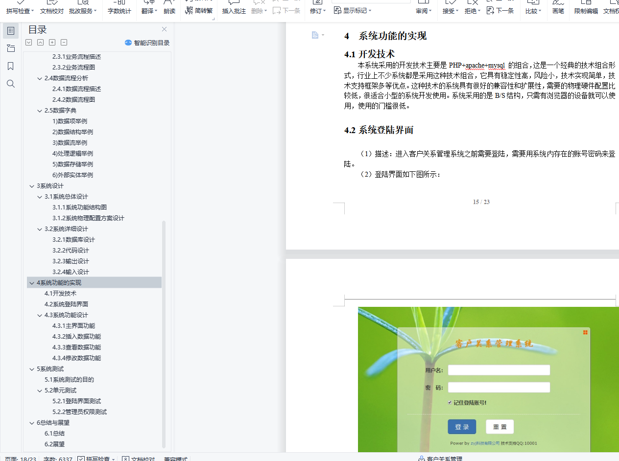 目 录1 绪论 11.1系统开发的背景 11.2系统开发的意义 12 系统分析 12.1需求分析 12.2 可行性分析 22.2.1 管理可行性 22.2.2 经济可行性 22.2.3 技术可行性 22.2.3 操作可行性 22.3 业务流程分析 22.3.1 业务流程描述 22.3.2 业务流程图 32.4 数据流程分析 42.4.1 数据流程描述 42.4.2 数据流程图 52.5 数据字典 63 系统设计 93.1 系统总体设计 93.1.1 系统功能结构图 93.1.2 系统物理配置方案设计 93.2 系统详细设计 93.2.1 数据库设计 93.2.2 代码设计 153.2.3 输出设计 163.2.4 输入设计 164 系统功能实现 164.1 开发技术 164.2 系统登陆界面 174.3 系统功能设计 174.3.1 主界面设计 174.3.2 插入数据功能 184.3.3 查看数据功能 184.3.4 修改数据功能 185 系统测试 195.1 系统测试的目的 195.2 单元测试 205.2.1 登陆界面设计 205.2.2 管理员权限测试 206 总结与展望 216.1 总结 215.1 展望 21小型CRM系统的开发摘要:客户资源是企业的重要资源,而对于客户资源的合理管理,关乎着企业的生存与发展。客户关系管理系统引入,就是改善这一问题的重要措施。作为管理企业和客户关系的主要管理平台,不仅可以对客户的关系进行管理,还可以记录企业同客户之间的业务活动。该系统用PHP和MySQL技术实现了客户信息的管理、统计、分析、查询以及管理员对系统维护等功能。客户管理系统有着很好的应用前景,随着计算机技术和网络技术的发展,它的功能将会得到不断的发展和完善。本系统可以根据实际应用的具体情况,适当加以修改,以便更好应用。本系统操作简单,灵活性好,系统安全性高,运行稳定。本文详细介绍了客户关系管理系统开发和设计的全过程。关键词:客户关系管理系统PHP MySQLDevelopment of small CRM systemAbstract: Customer resources are important resources of enterprises, and the reasonable management of customer resources is related to the survival and development of enterprises. The introduction of customer relationship management system is an important measure to improve this problem. As the main management platform for managing the relationship between enterprises and customers, it can not only manage the relationship between customers, but also record the business activities between the enterprise and the customer. The system uses PHP and MySQL technology to realize the functions of customer information management, statistics, analysis, query and administrators' maintenance to the system. Customer management system has a very good application prospect. With the development of computer technology and network technology, its functions will be continuously developed and improved. The system can be modified according to the specific circumstances of practical application for better application. The system has simple operation, good flexibility, high security and stable operation. This paper introduces the whole process of the development and design of CRM system in detail.Key words: CRM system; PHP; MySQL