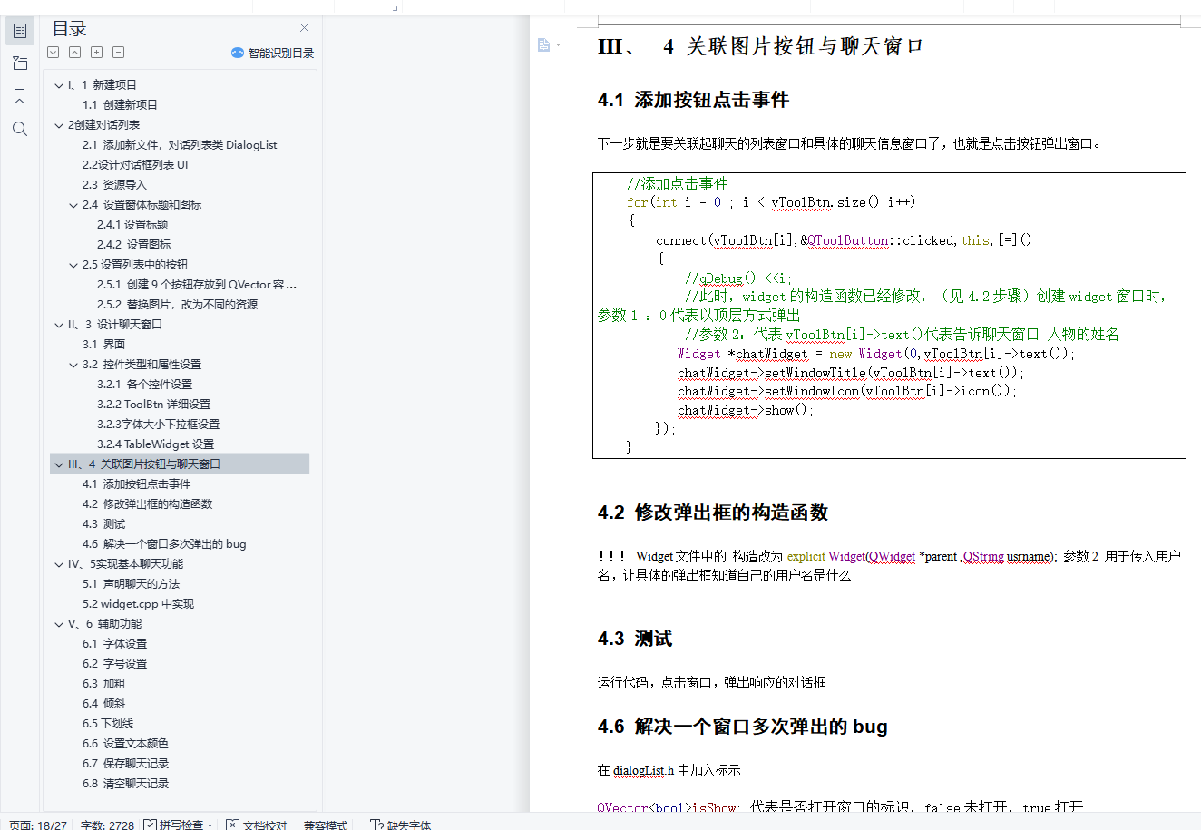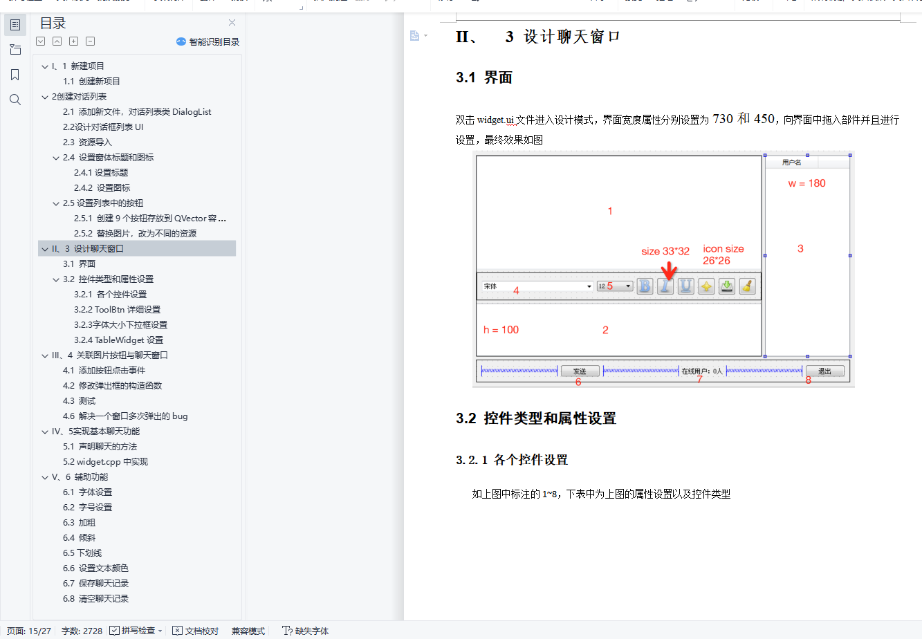 ФПТМIЁЂ 1 аТНЈЯюФП 11.1 ДДНЈаТЯюФП 12 ДДНЈЖдЛАСаБэ 32.1 ЬэМгаТЮФМўЃЌЖдЛАСаБэРрDialogList 32.2 ЩшМЦЖдЛАПђСаБэUI 62.3 зЪдДЕМШы 92.4 ЩшжУДАЬхБъЬтКЭЭМБъ 112.4.1ЩшжУБъЬт 112.4.2 ЩшжУЭМБъ 112.5ЩшжУСаБэжаЕФАДХЅ 122.5.1 ДДНЈ9ИіАДХЅДцЗХЕНQVectorШнЦїжа 122.5.2 ЬцЛЛЭМЦЌЃЌИФЮЊВЛЭЌЕФзЪдД 12IIЁЂ 3 ЩшМЦСФЬьДАПк 153.1 НчУц 153.2 ПиМўРраЭКЭЪєадЩшжУ 153.2.1 ИїИіПиМўЩшжУ 153.2.2 ToolBtnЯъЯИЩшжУ 163.2.3 зжЬхДѓаЁЯТРПђЩшжУ 163.2.4 TableWidgetЩшжУ 17IIIЁЂ 4 ЙиСЊЭМЦЌАДХЅгыСФЬьДАПк 184.1 ЬэМгАДХЅЕуЛїЪТМў 184.2 аоИФЕЏГіПђЕФЙЙдьКЏЪ§ 184.3 ВтЪд 184.6 НтОівЛИіДАПкЖрДЮЕЏГіЕФbug 18IVЁЂ 5ЪЕЯжЛљБОСФЬьЙІФм 205.1 ЩљУїСФЬьЕФЗНЗЈ 205.2 widget.cppжаЪЕЯж 20VЁЂ 6 ИЈжњЙІФм 246.1 зжЬхЩшжУ 246.2 зжКХЩшжУ 246.3 МгДж 246.4 ЧуаБ 256.5ЯТЛЎЯп 256.6 ЩшжУЮФБОбеЩЋ 256.7 БЃДцСФЬьМЧТМ 256.8 ЧхПеСФЬьМЧТМ 26IЁЂ1 аТНЈЯюФП1.1 ДДНЈаТЯюФПЕквЛВНДђПЊQt CreatorЃЌЕуЛїаТНЈNewProjectApplication ЈC> Qt Widgets Application -> chooseДДНЈЯюФПУћГЦР§ШчЃК MyselfQQЃЌТЗОЖздМКбЁдёЃЌзЂвтВЛвЊгаПеИёКЭжаЮФ