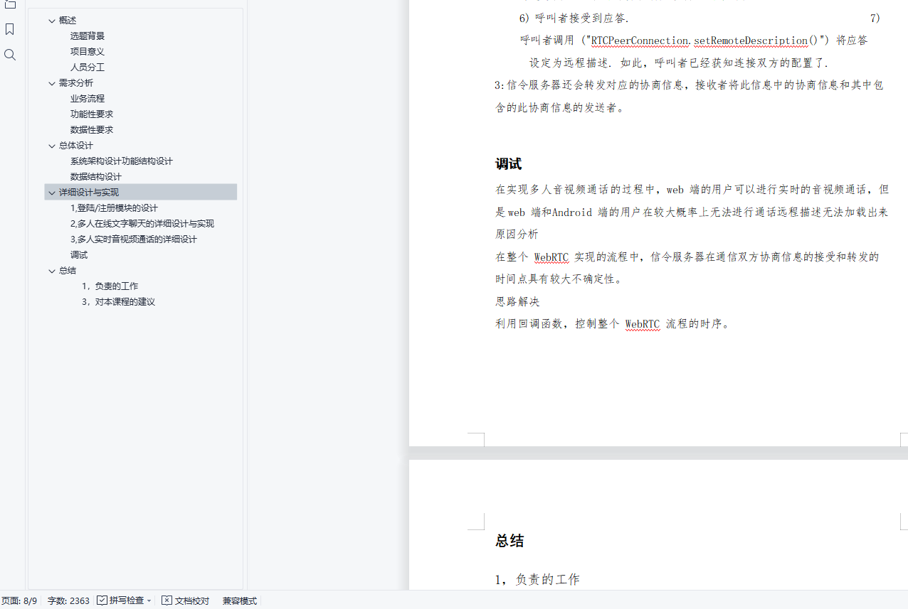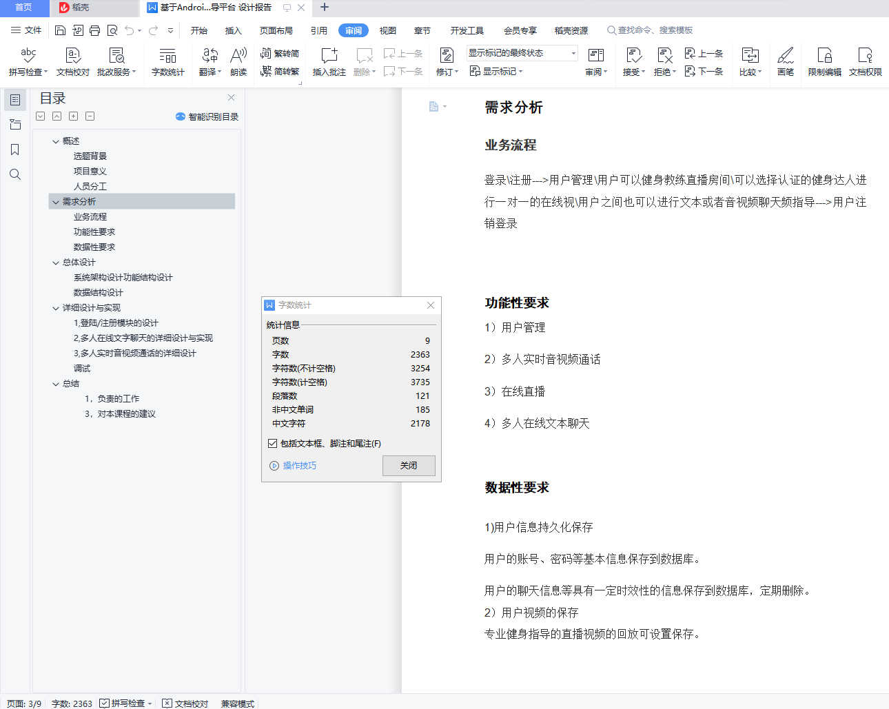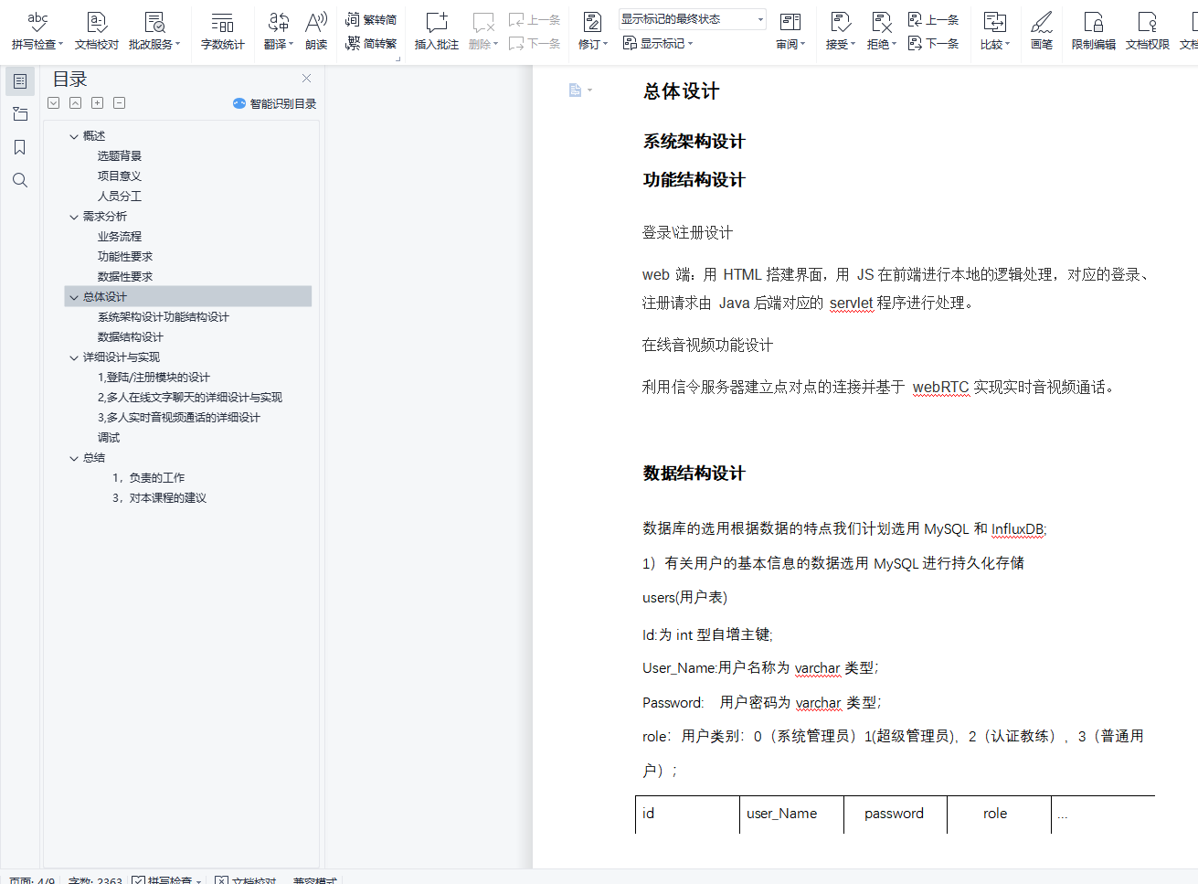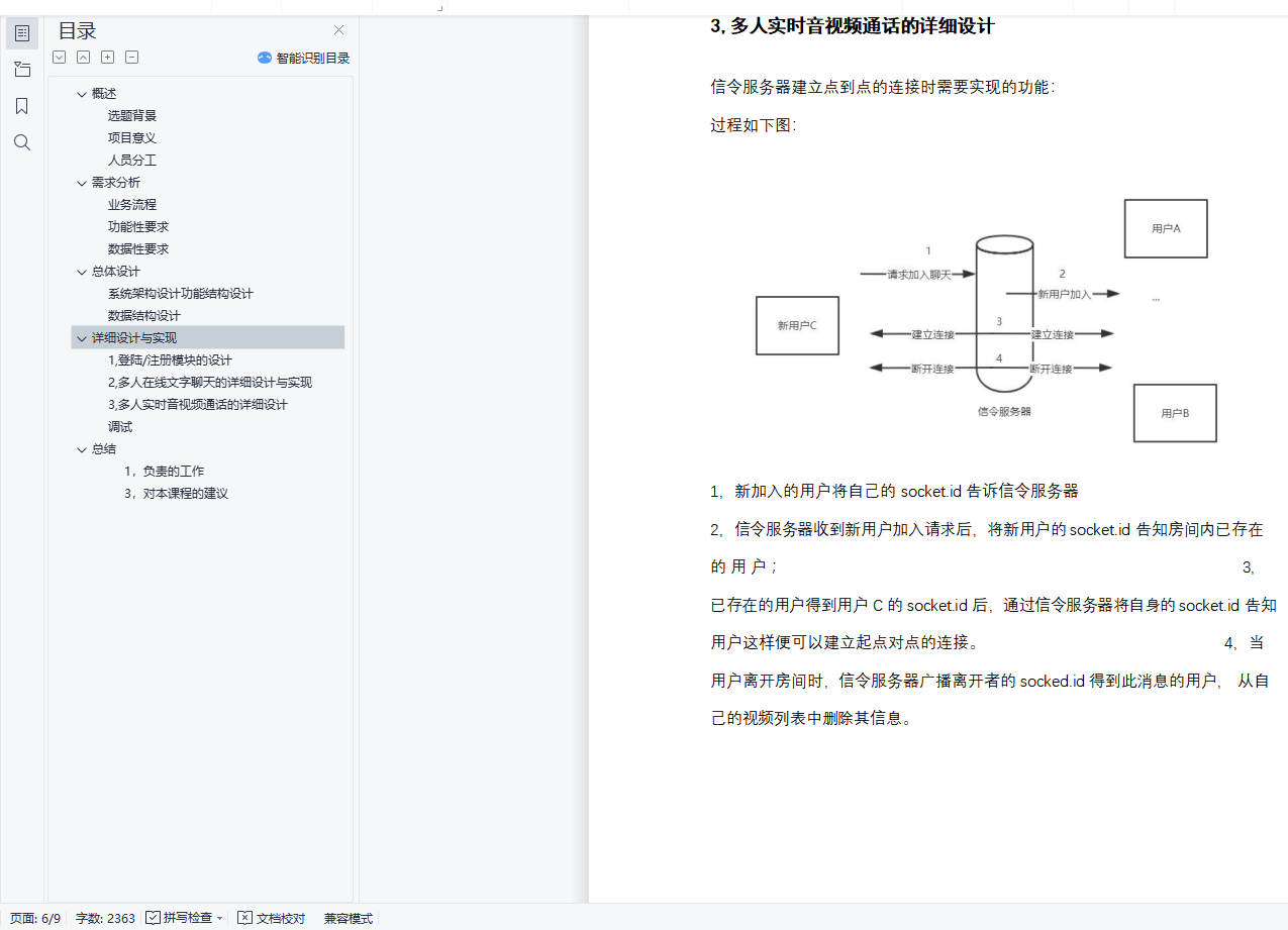 目录概述 1选题背景 1项目意义 1人员分工 1需求分析 3业务流程 3功能性要求 3数据性要求 3总体设计 4系统架构设计功能结构设计 4数据结构设计 4详细设计与实现 51,登陆/注册模块的设计 52,多人在线文字聊天的详细设计与实现 53,多人实时音视频通话的详细设计 6调试 9总结 10概述选题背景1,随着生活水平的逐渐提高。人们对身体的健康愈加重视,全名健身已然成为一种趋势,越来越多的人们开始出入健身房,因为健身房有专业的健身教练,可以获取有效的指导。但由于各种原因,很多人不愿意去健身房,又期望获得专业人士的健身指导,对于网上杂乱的健身知识无从选择,不会科学地安排健身计划, 也没有同伴的相互鼓励,健身计划也因此搁置。2,传统健身行业原地踏步,已逐渐无法满足年轻人的需求。跑步和健身类 APP的出现极大程度上满足了年轻用户:项目意义用户可以低成本进入在线健身指导 APP,可以让广大的用户足不出户,就可以获得专业人士的健身指导,进行科学的锻炼。这样一款 APP 将很好的满足健身爱好者的工具性需求,推动全名健身。