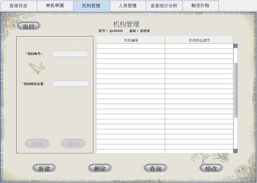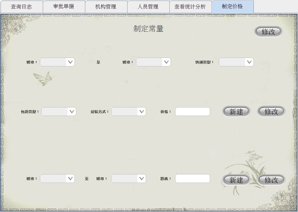 物流企业管理系统是为某民营物流企业开发的业务系统,开发的目标是帮助该企业处理日常的重点业务,包括寄送快递、中转调度、库存管理、成本管理和机构管理。