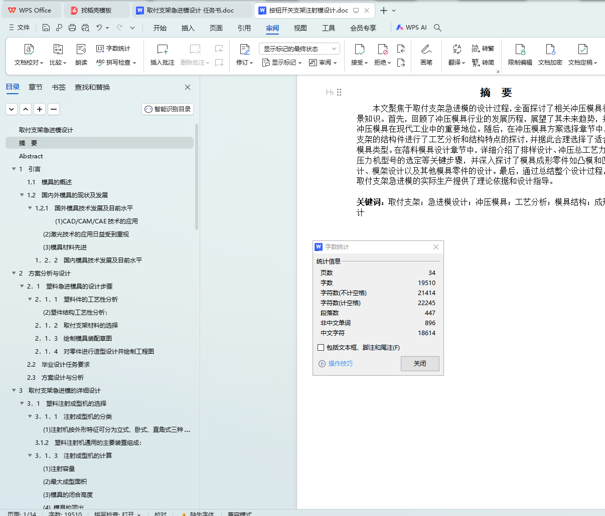 本文聚焦于取付支架急进模的设计过程,全面探讨了相关冲压模具行业的背景知识。首先,回顾了冲压模具行业的发展历程,展望了其未来趋势,并强调了冲压模具在现代工业中的重要地位。随后,在冲压模具方案选择章节中,对取付支架的结构件进行了工艺分析和结构特点的探讨,并据此合理选择了适合的冲压模具类型。在落料模具设计章节中,详细介绍了排样设计、冲压总工艺力的计算、压力机型号的选定等关键步骤,并深入探讨了模具成形零件如凸模和凹模的设计、模架设计以及其他模具零件的设计。最后,通过总结整个设计过程,本文为取付支架急进模的实际生产提供了理论依据和设计指导。