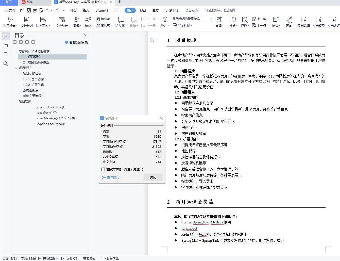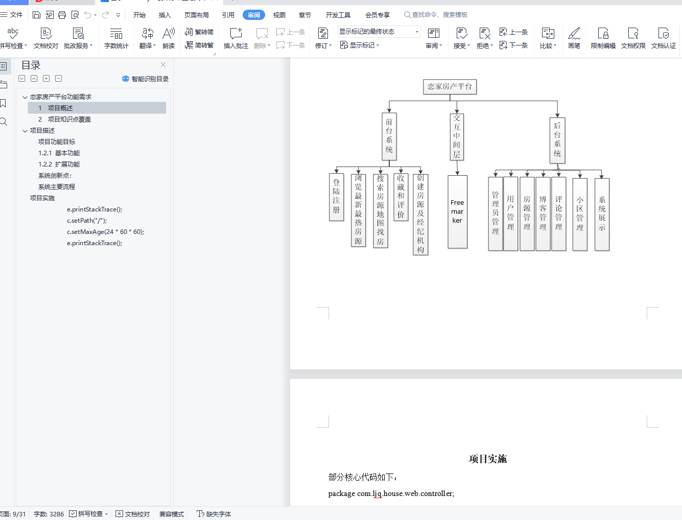 目录恋家房产平台功能需求 11 项目概述 12 项目知识点覆盖 2项目描述 2项目功能目标 31.2.1 基本功能 31.2.2 扩展功能 3系统创新点: 3系统主要流程 8项目实施 9e.printStackTrace(); 17c.setPath("/"); 29c.setMaxAge(24 * 60 * 60); 29e.printStackTrace(); 29恋家房产平台功能需求1 项目概述在房地产行业持续火热的当今环境下,房地产行业和互联网行业协同发展,互相促进融合已经成为一种趋势和潮流。本项目实现了在线房产平台的功能,多种技术的灵活运用使得项目具备很好的用户体验感。1.1项目描述恋家房产平台是一个在线推荐房源、包括租房、售房、评价打分、地图找房等在内的一系列操作的系统。系统包括前台和后台,采用前后端分离的开发方式。项目的功能点运用众多,且项目使用流畅,具备很好的应用价值。1.2 项目需求1.2.1 基本功能网易邮箱注册及登录前台展示房源信息,用户可以浏览最新、最热房源,并查看详情信息。搜索房产信息经纪人以及经纪机构的创建和展示房产百科房产创建及收藏1.2.2 扩展功能根据用户点击量推荐最热房源地图找房房屋详情信息及评价打分房源评论及展示后台对数据增删查改,六大管理功能统计房源热度及房价等,多种图表展示报表统计,导入导出实时统计系统在线人数并展示