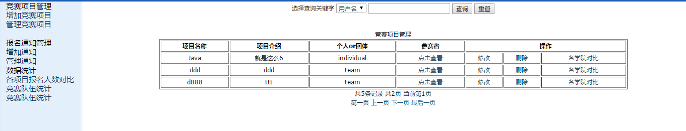 (3).实现竞赛项目的增删改查管理等。