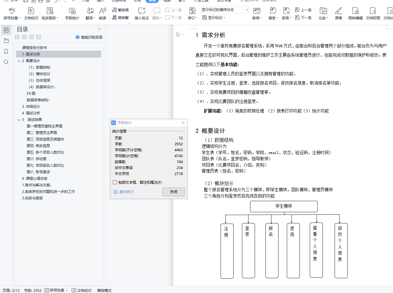 (3)实现过程 要求学生养成良好的编码习惯、完成各个模块并进行测试,最终完成系统整体测试;