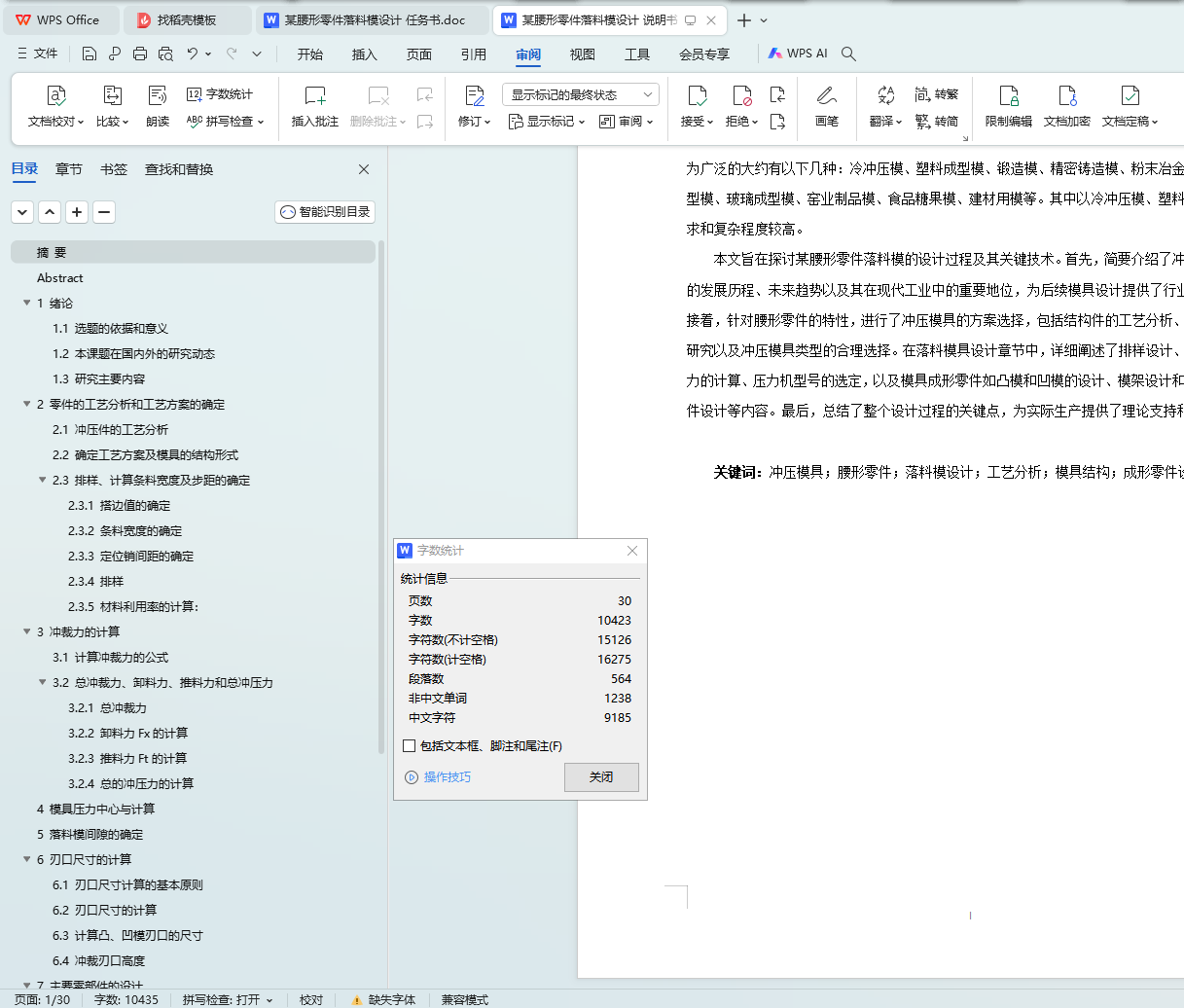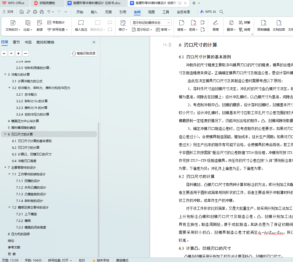 本文旨在探讨某腰形零件落料模的设计过程及其关键技术。首先,简要介绍了冲压模具行业的发展历程、未来趋势以及其在现代工业中的重要地位,为后续模具设计提供了行业背景知识。接着,针对腰形零件的特性,进行了冲压模具的方案选择,包括结构件的工艺分析、结构特点的研究以及冲压模具类型的合理选择。在落料模具设计章节中,详细阐述了排样设计、冲压总工艺力的计算、压力机型号的选定,以及模具成形零件如凸模和凹模的设计、模架设计和其他模具零件设计等内容。最后,总结了整个设计过程的关键点,为实际生产提供了理论支持和设计参考。